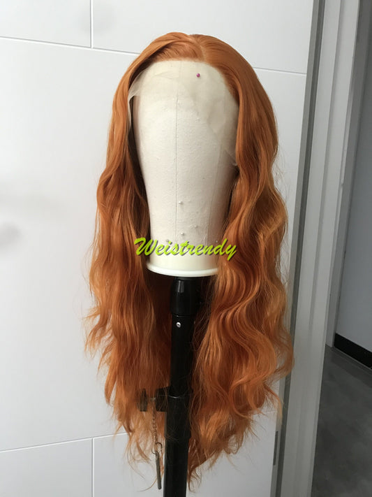 Ginger Orange Long Wavy Hair Premium Synthetic Soft Swiss Lace Front Wig Multi Part
