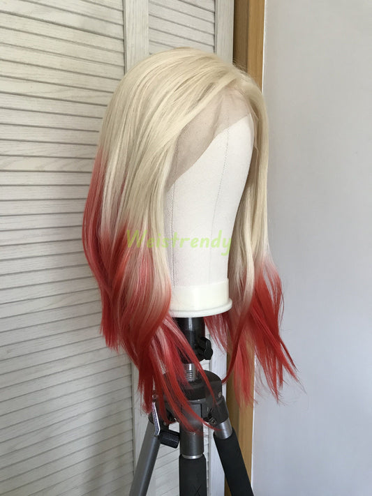 Dip-Dyed 613 Blonde to Bright Orange synthetic Bob Wig Heat Safe