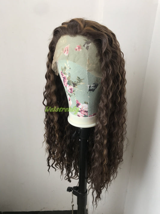 Mixed Brown Light Brown Highlights Long waves Hair Premium Synthetic Fibre Heat Safe Lace Frontal Wig