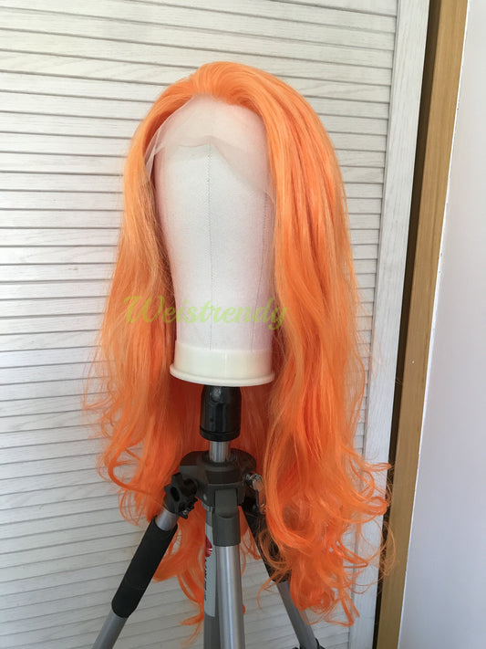Orange Juice Bright Orange Ombre Long Wavy Hair Premium Synthetic Lace Frontal Wig Heat Safe