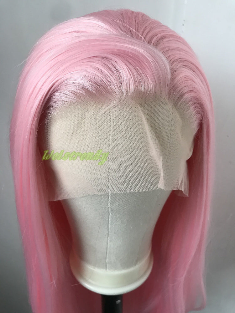 Pastel Pink | Ice Pink Long Straight Hair Premium Synthetic Lace Front Wig Realistic Heat Friendly