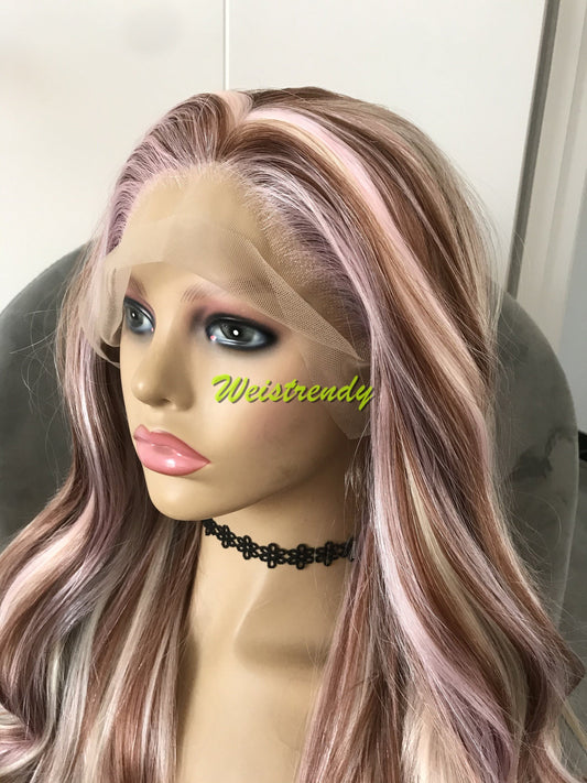 Inspired by Shale - Pink Blonde Brown Mixed Colors Body Wave Lace Frontal Multi Part Wig Realistic
