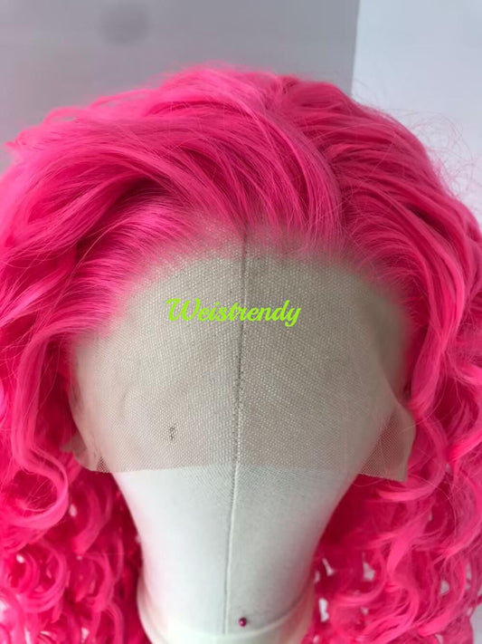 Neon Pink Long Ring Curls Wigs Premium Synthetic Fibre Heat Safe Glueless Lace Frontal Wig