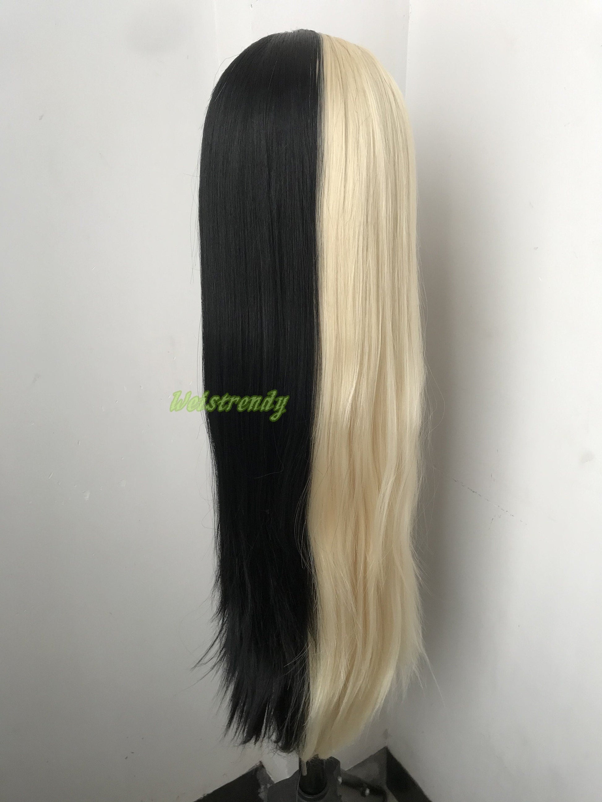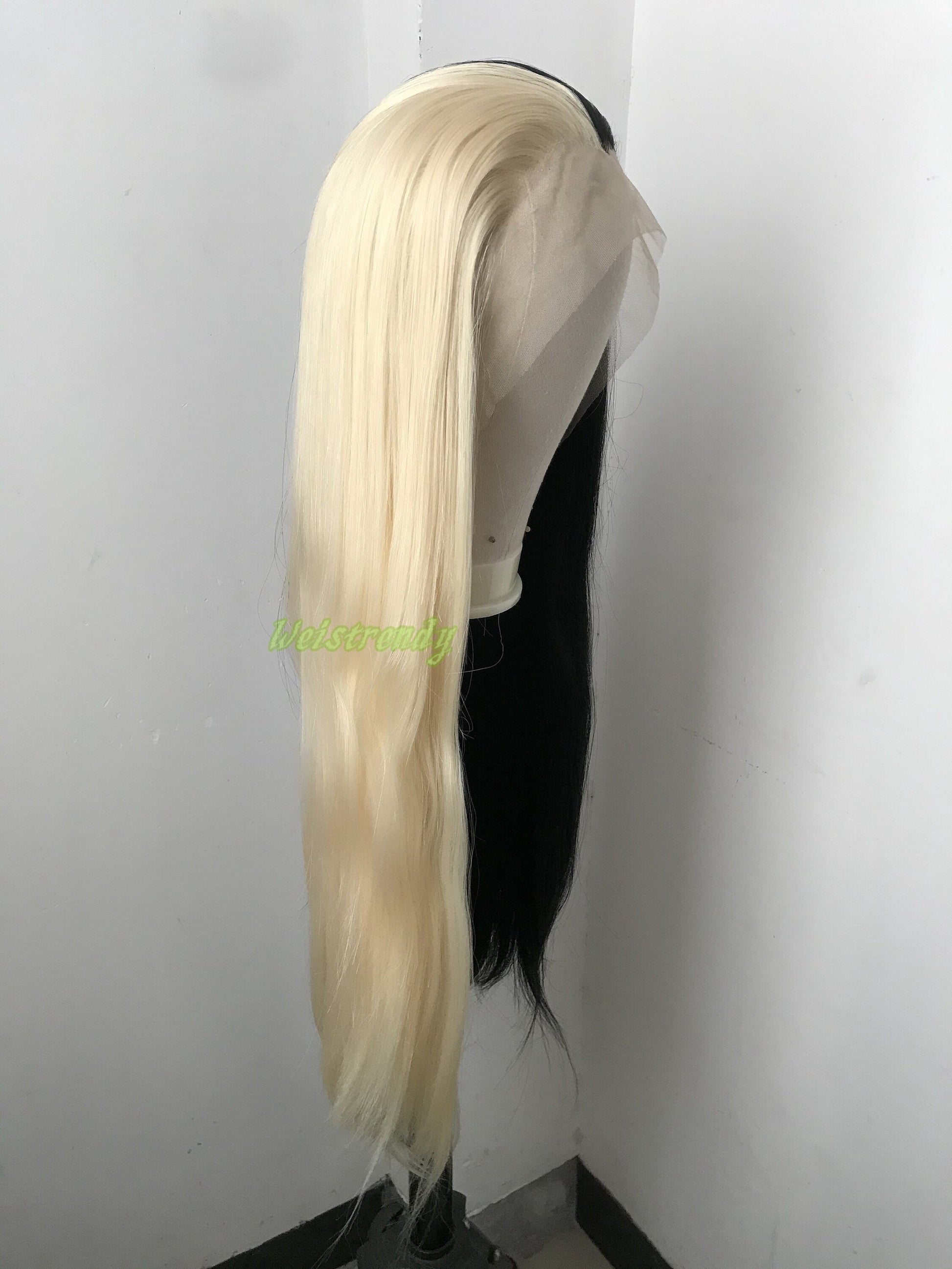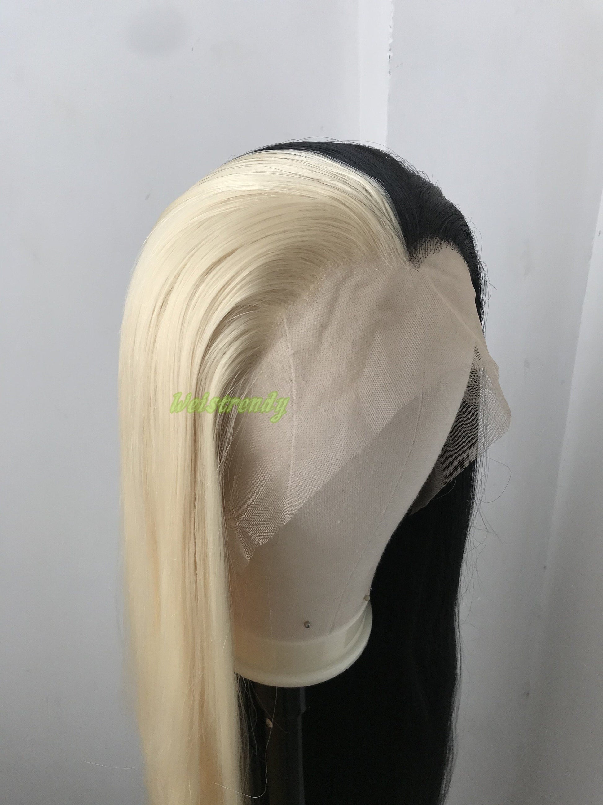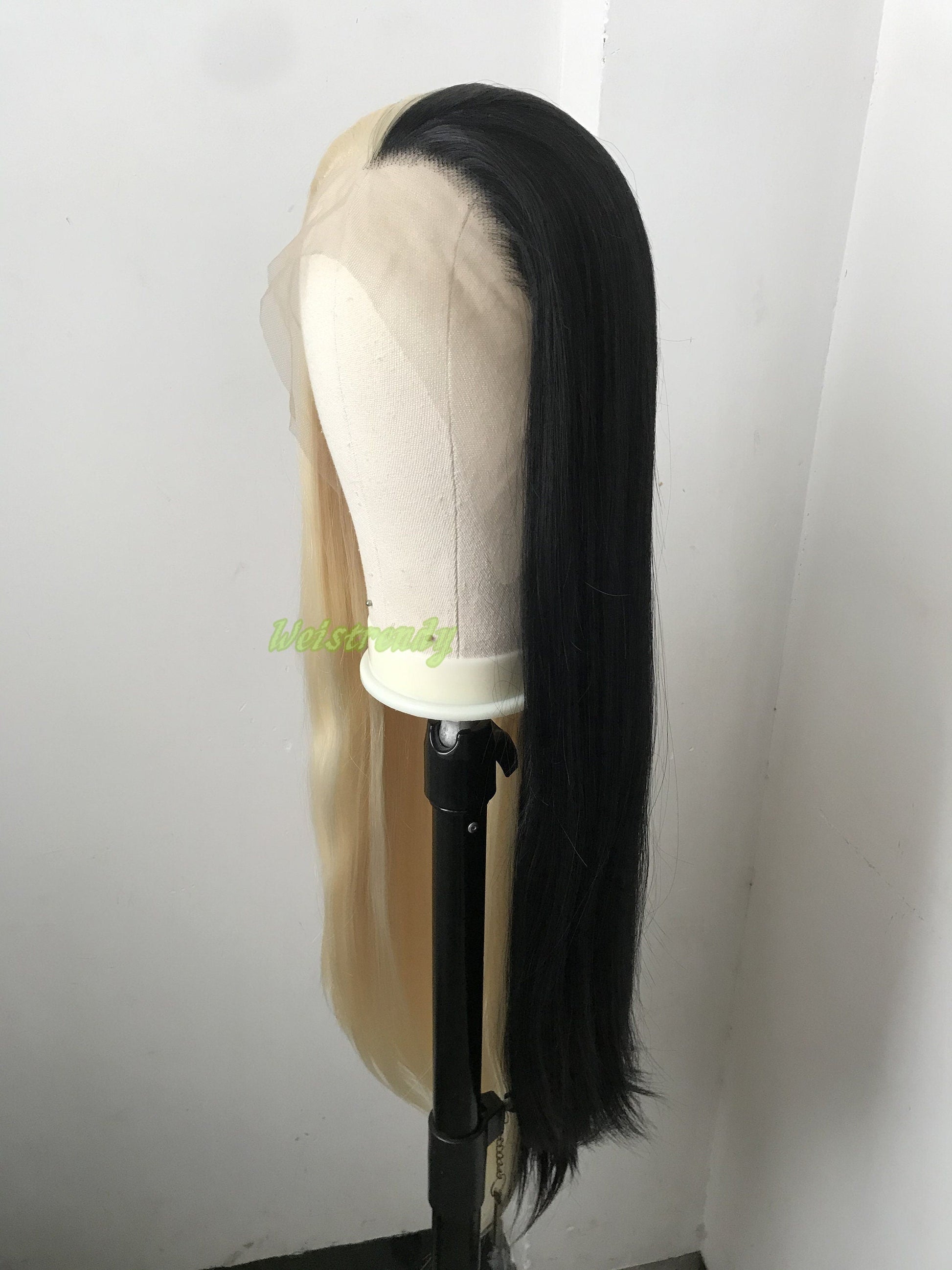 32in Half and Half Black 613 Blonde Long Straight Hair Synthetic Lace frontal Wig with Natural Hairline