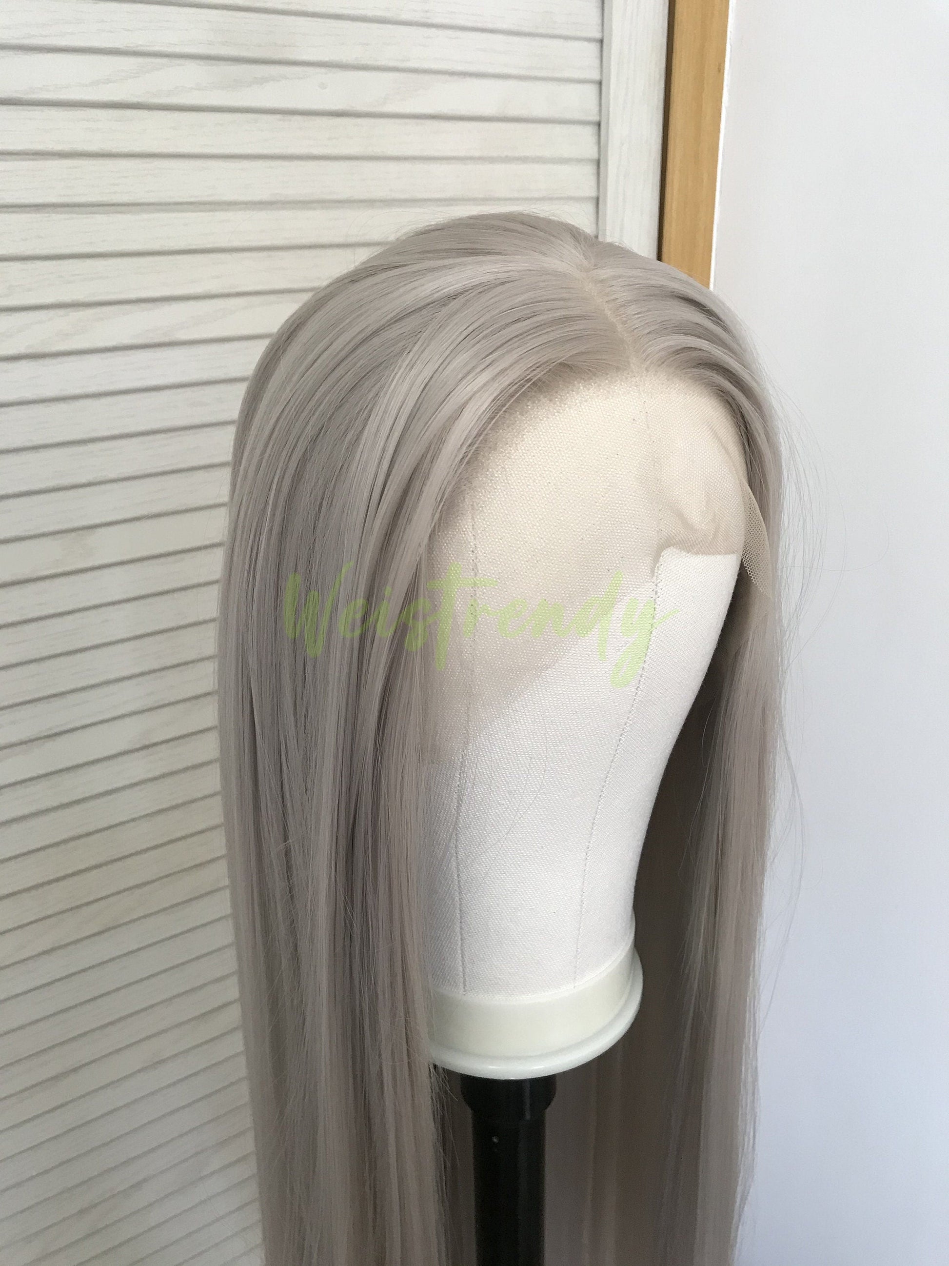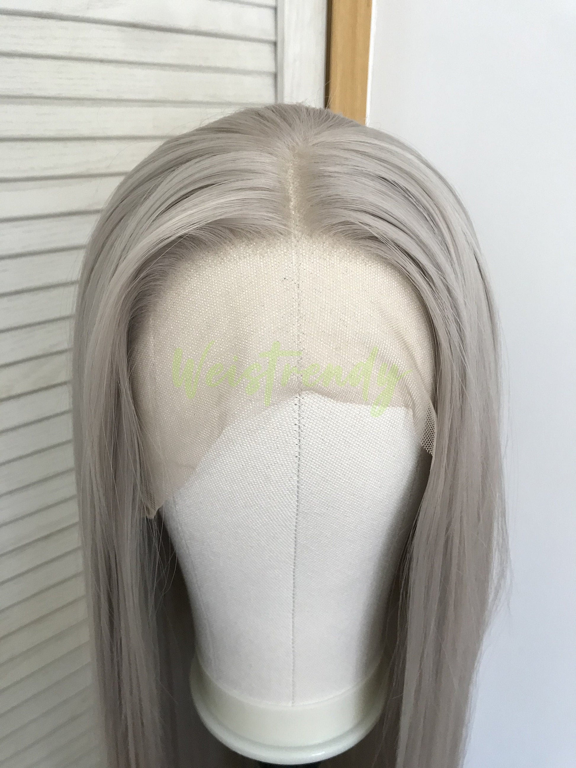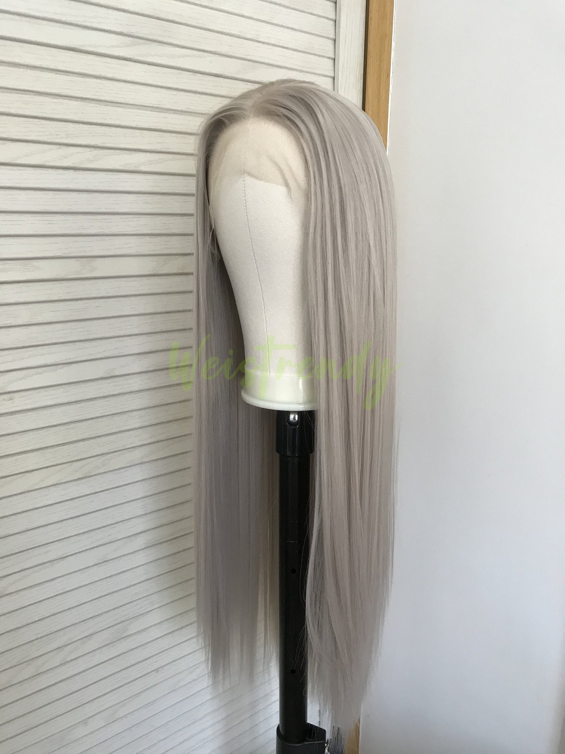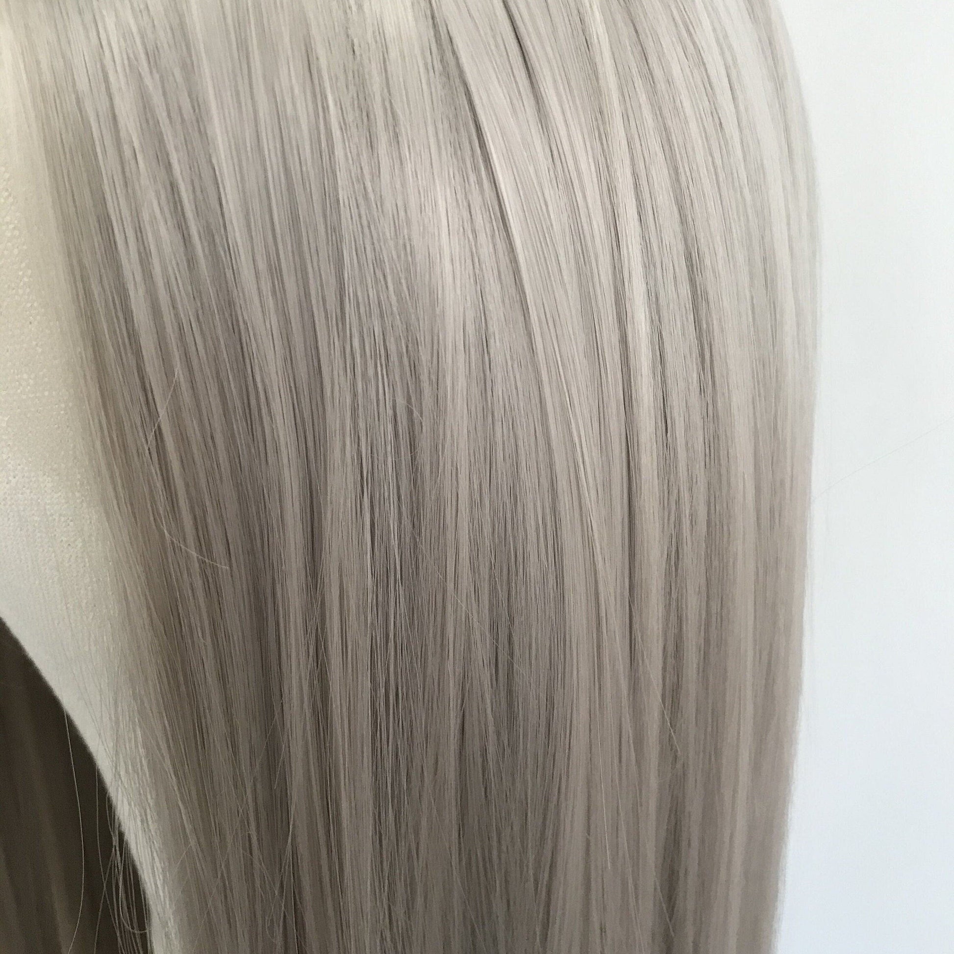 Ash Blonde | Grey Long Straight Hair Synthetic Soft Swiss Lace Front Wig Heat Safe Free Parting