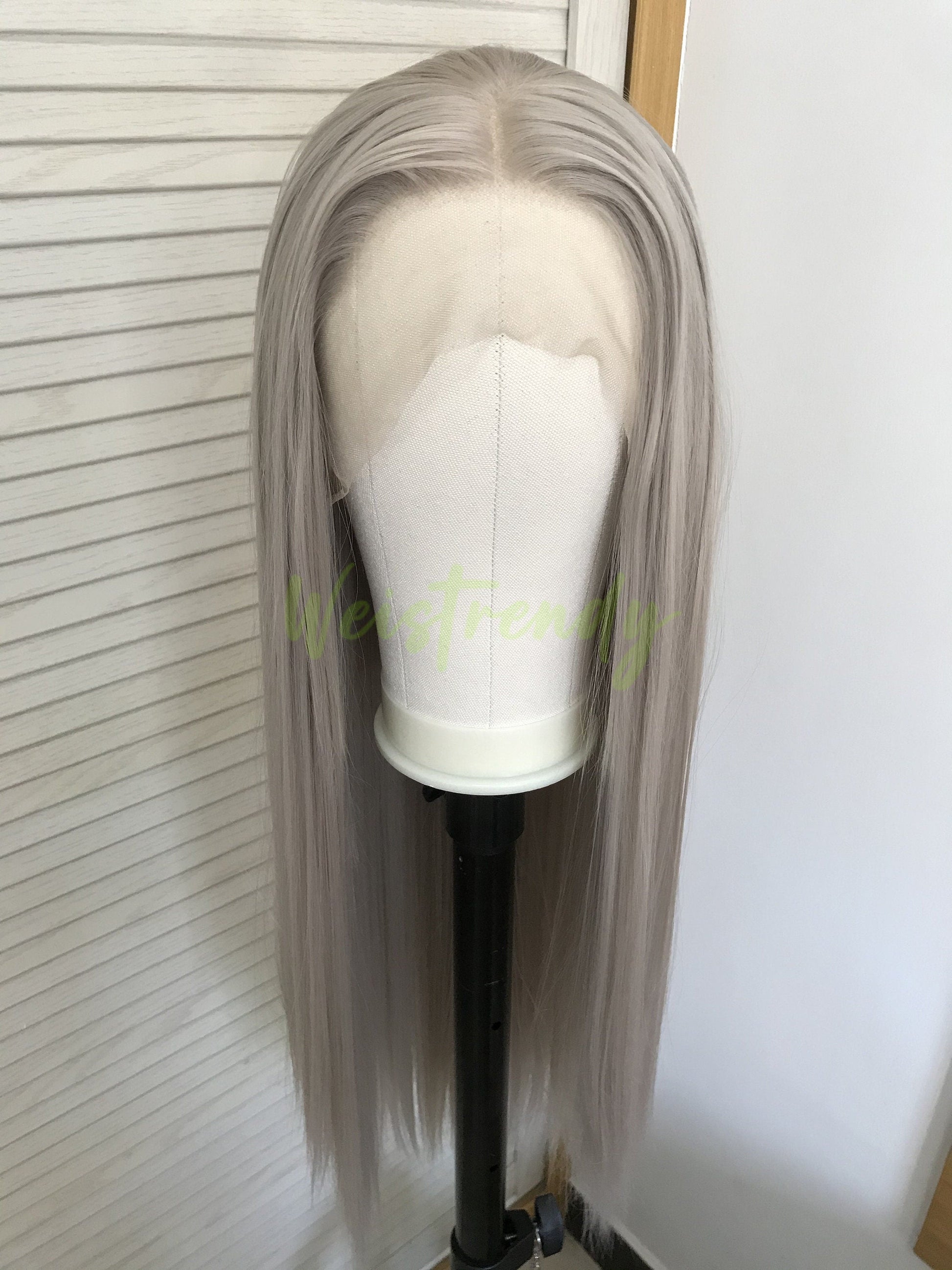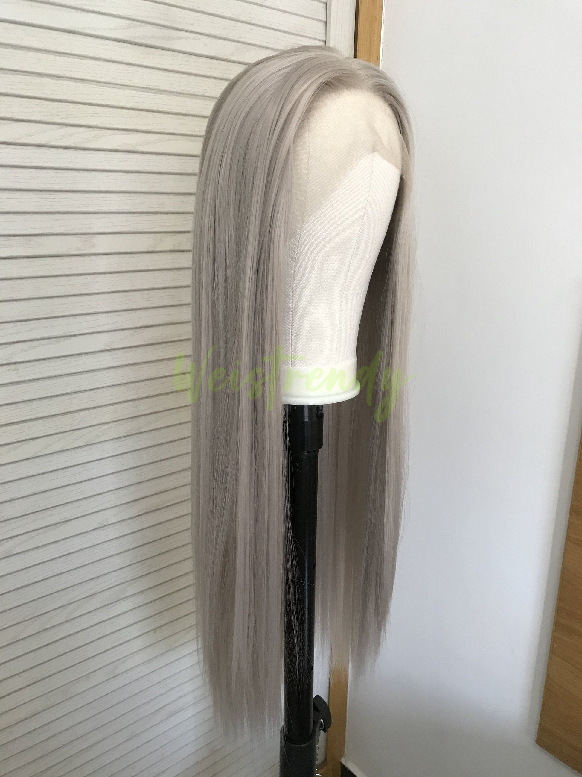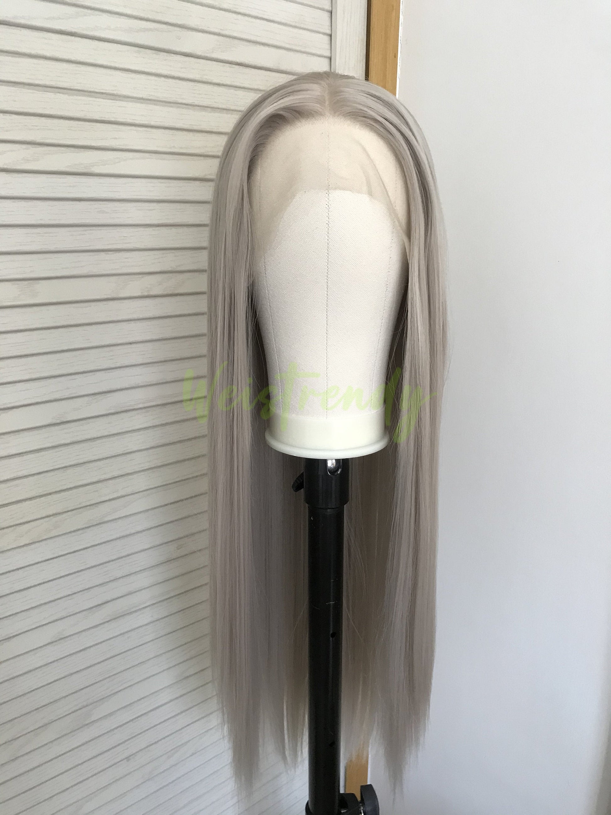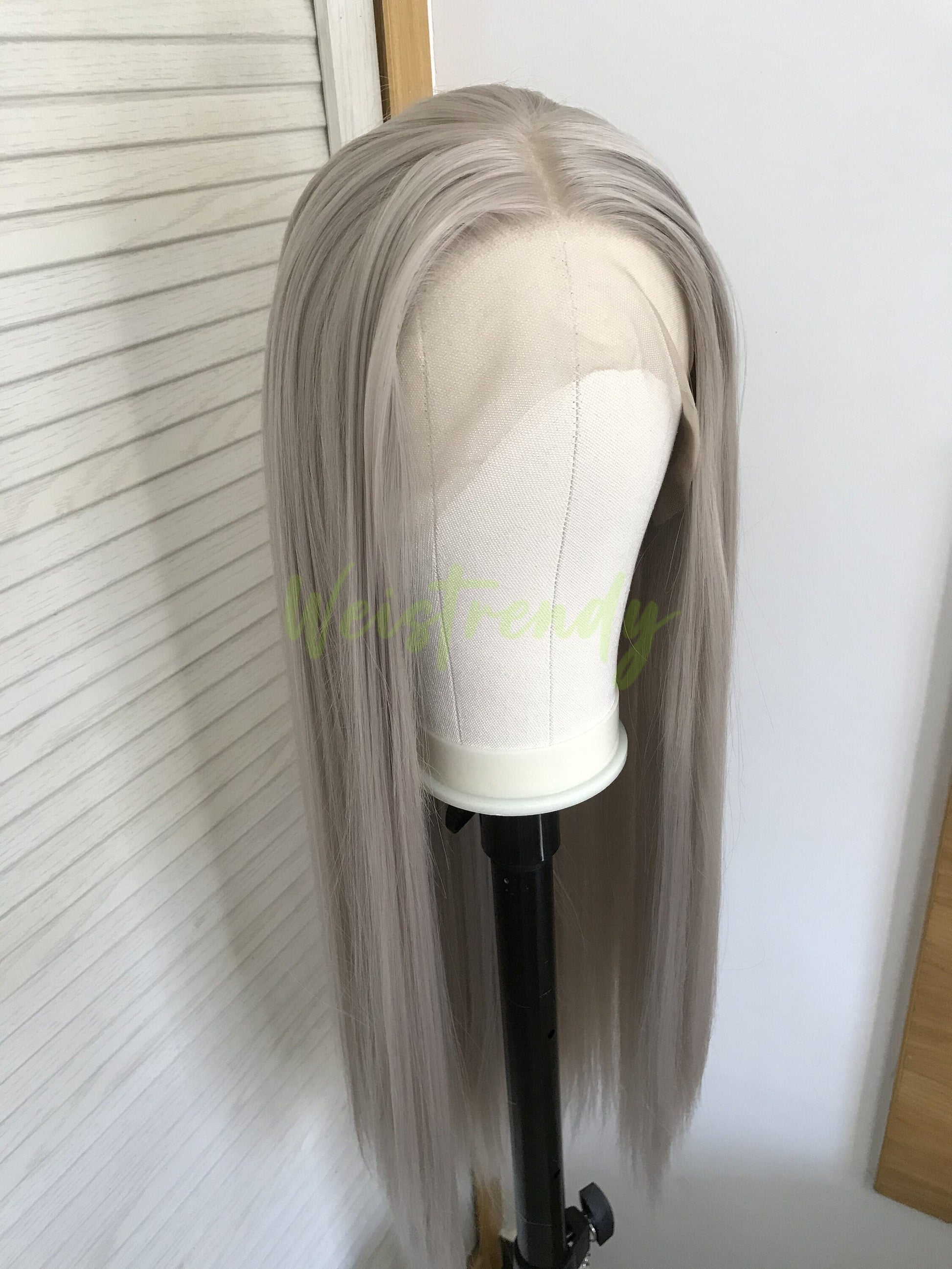 Ash Blonde | Grey Long Straight Hair Synthetic Soft Swiss Lace Front Wig Heat Safe Free Parting