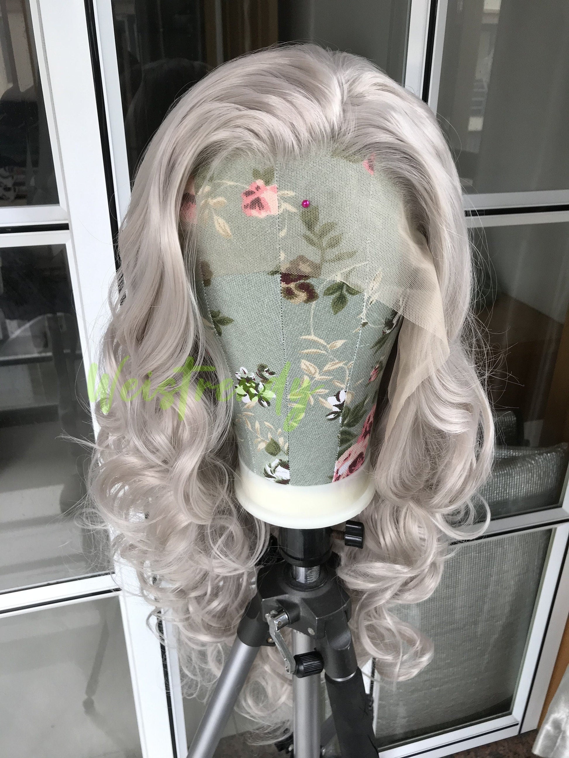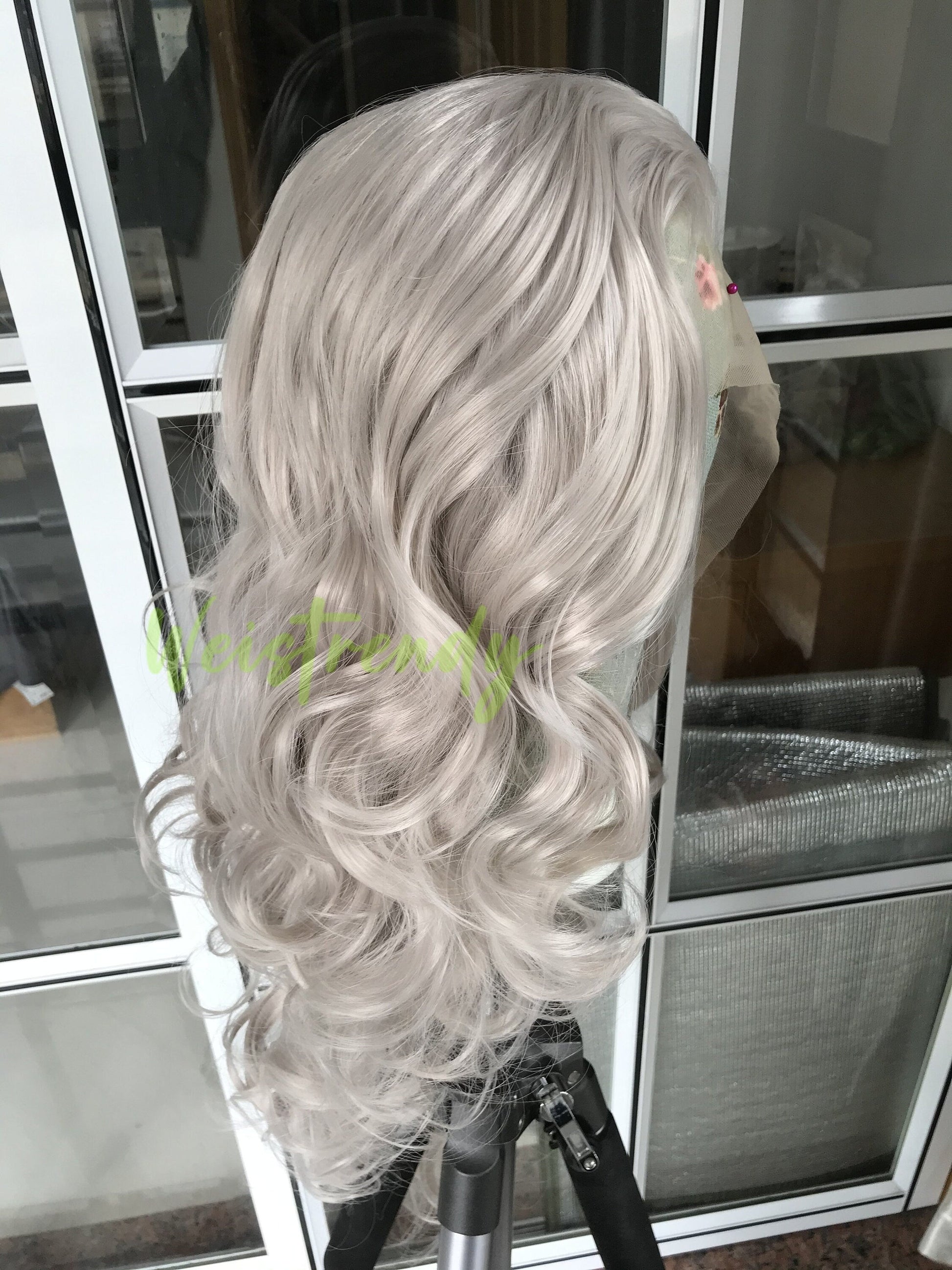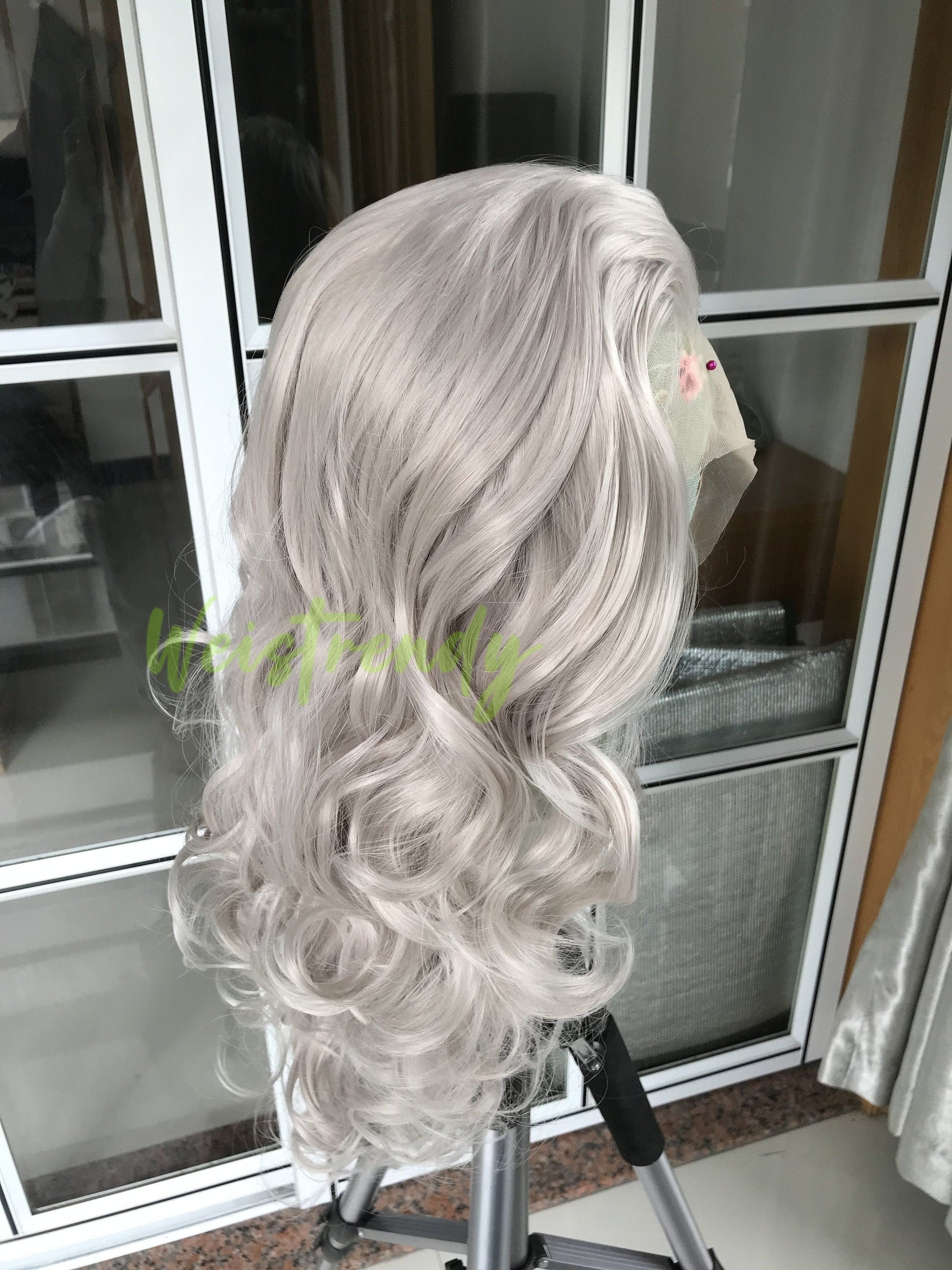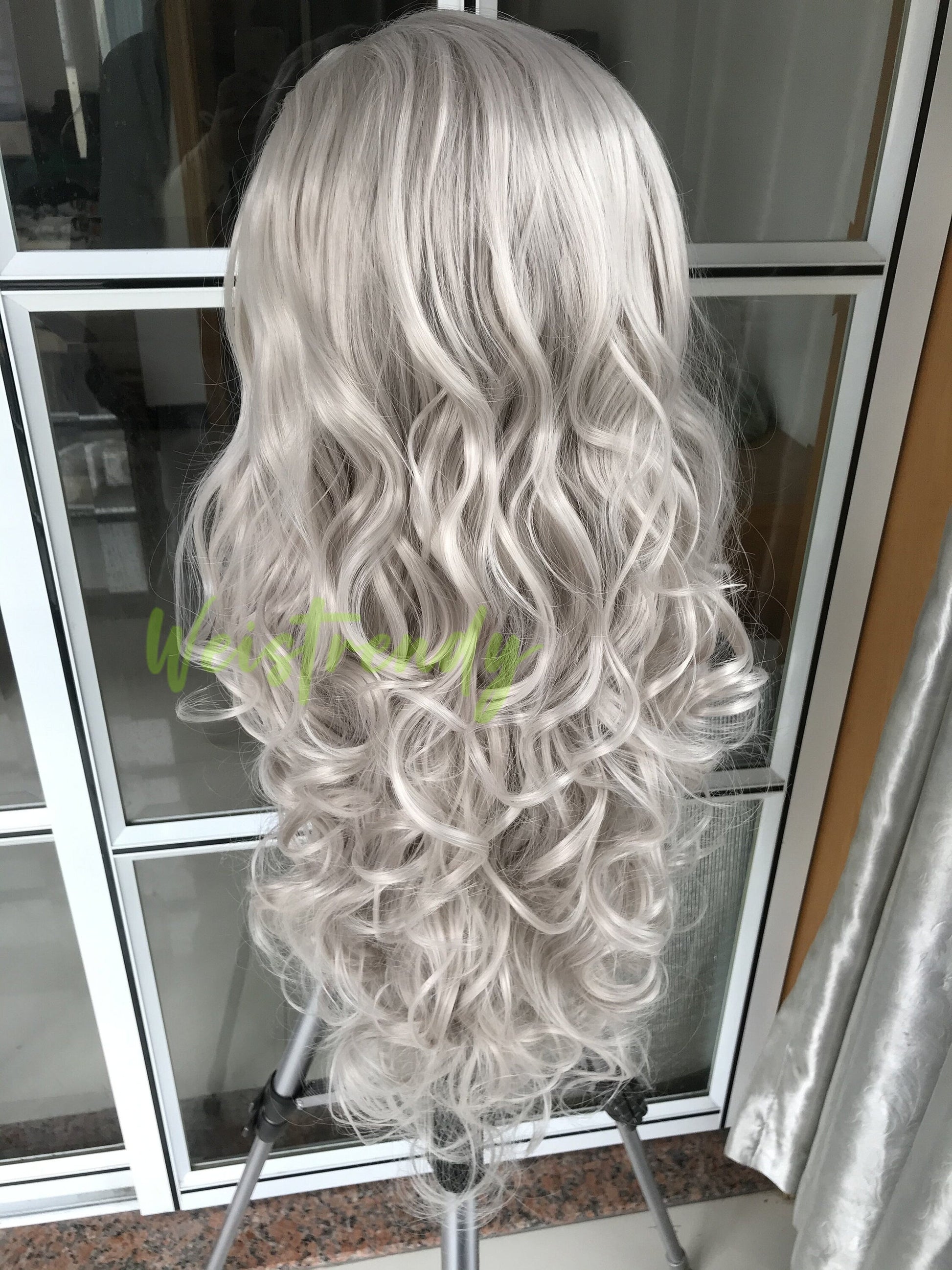 Ash Blonde Long Curls Waves Hair Synthetic Swiss Lace Frontal Wig Heat Safe Multi Part