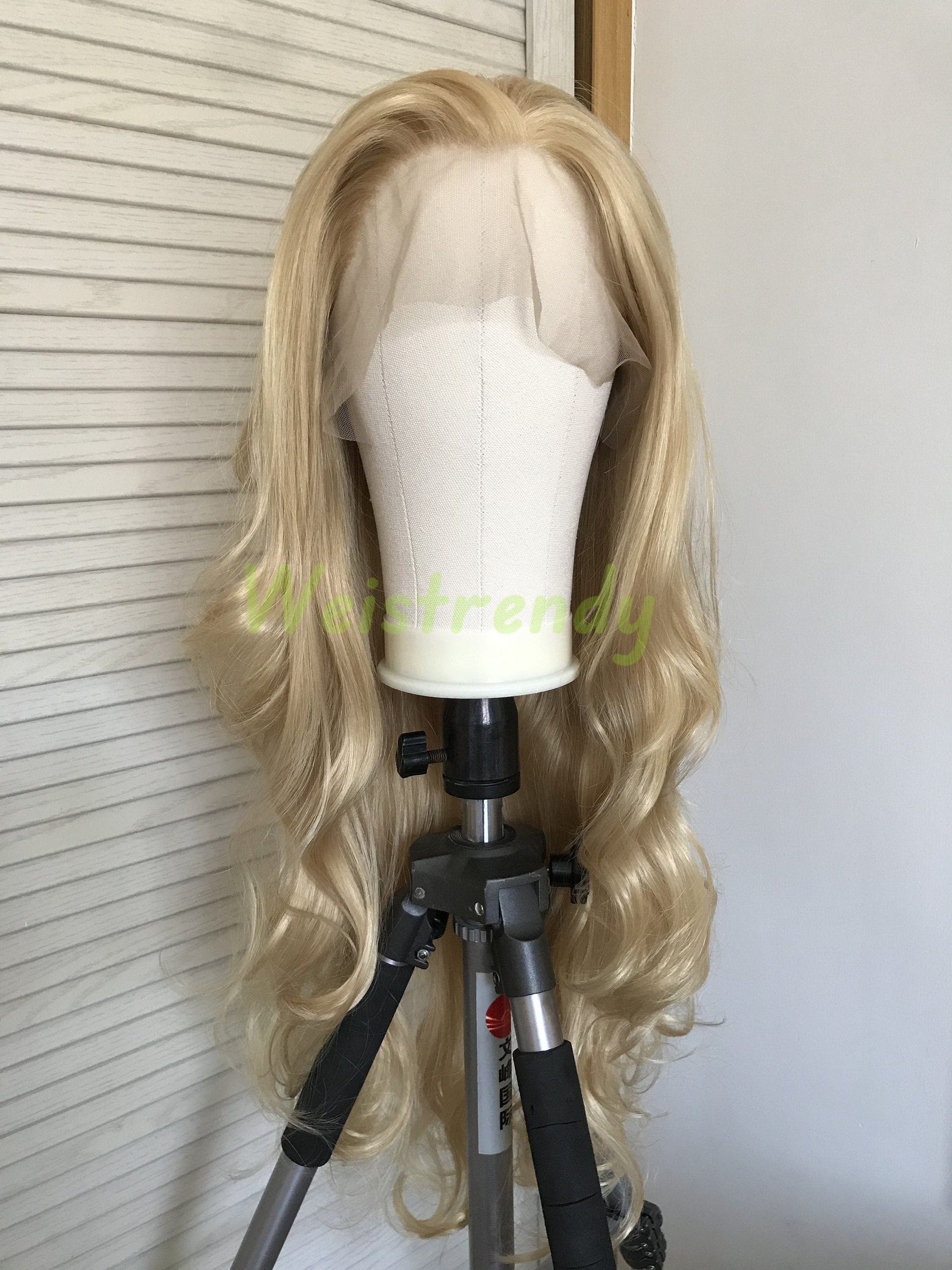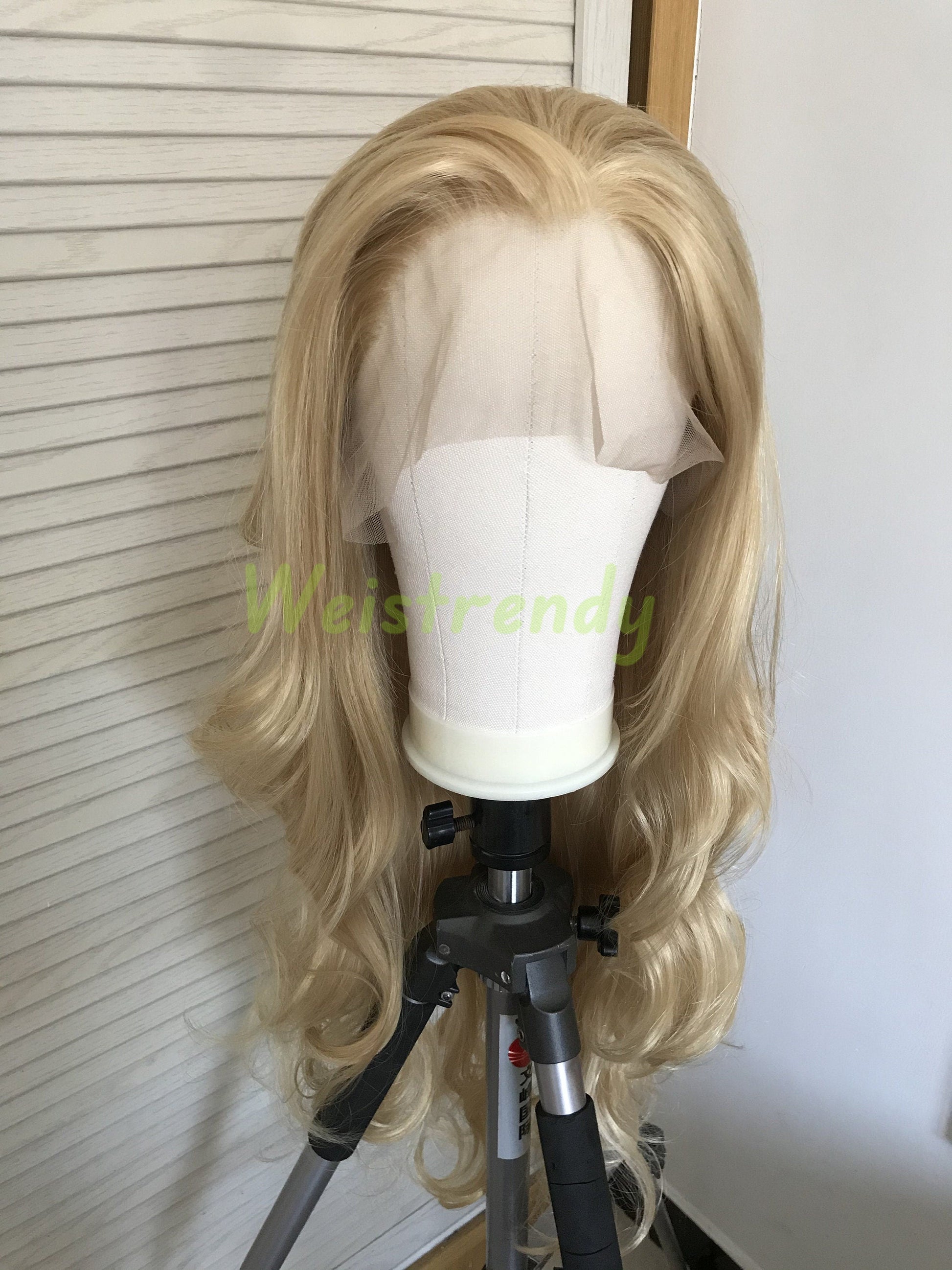 Blonde Long Curls Wavy Hair Premium Synthetic Lace Frontal Wig Heat Safe Realistic