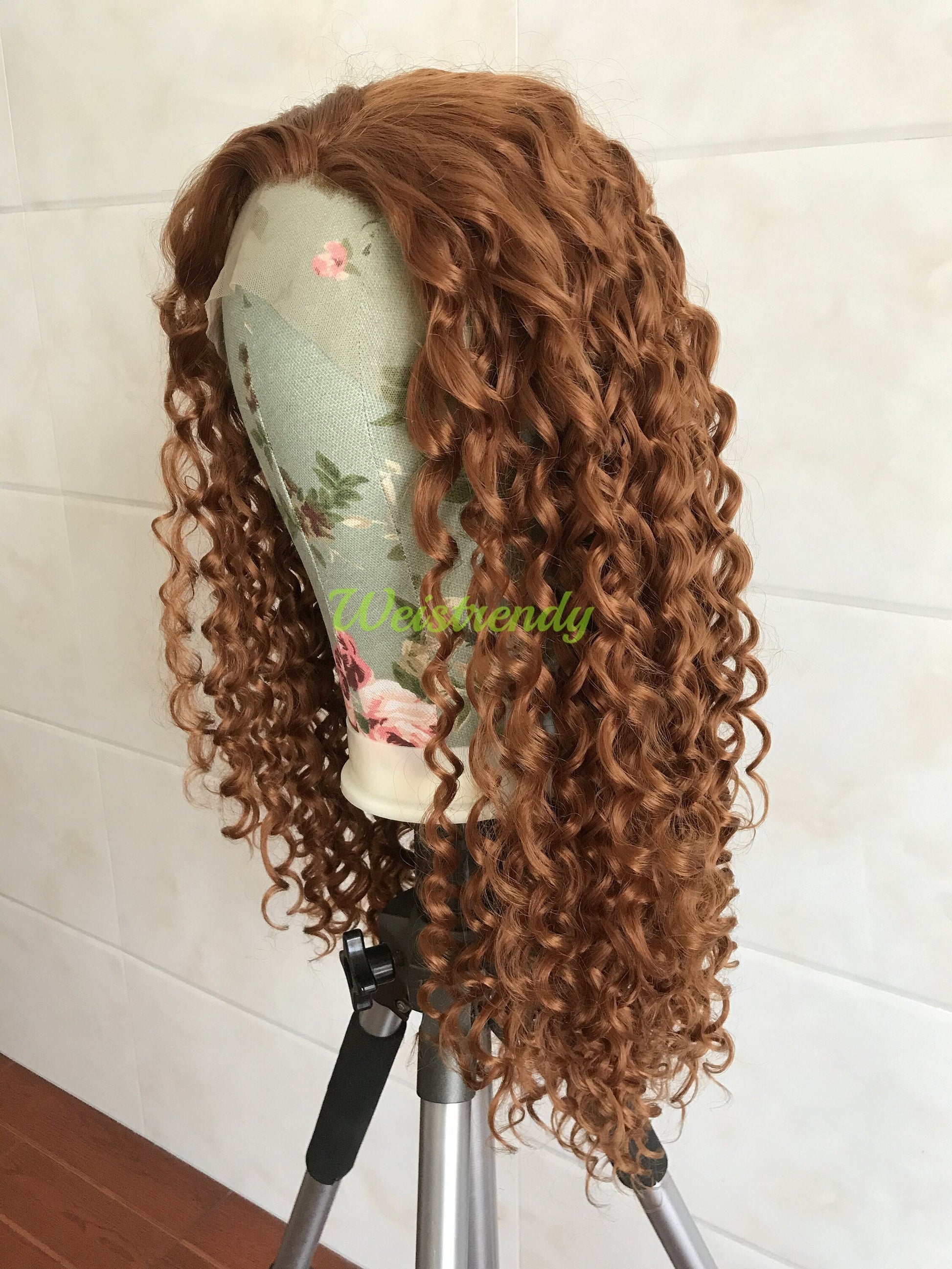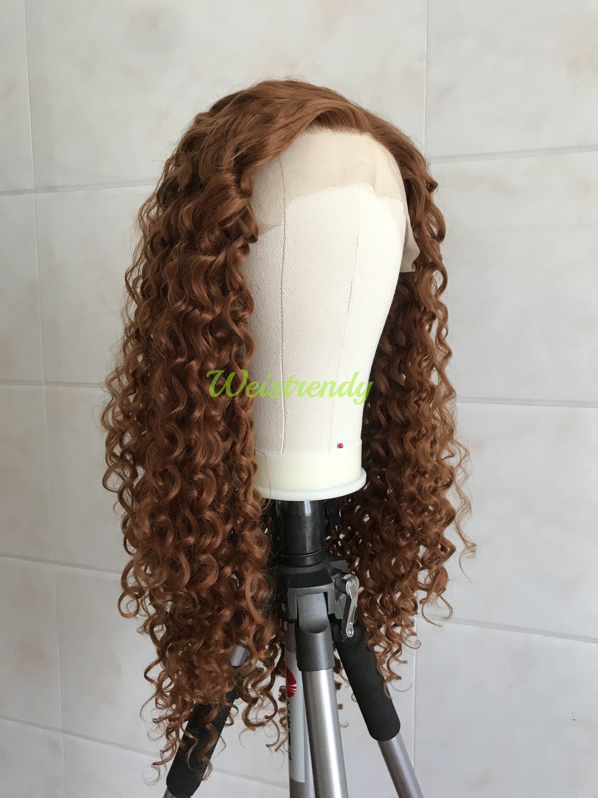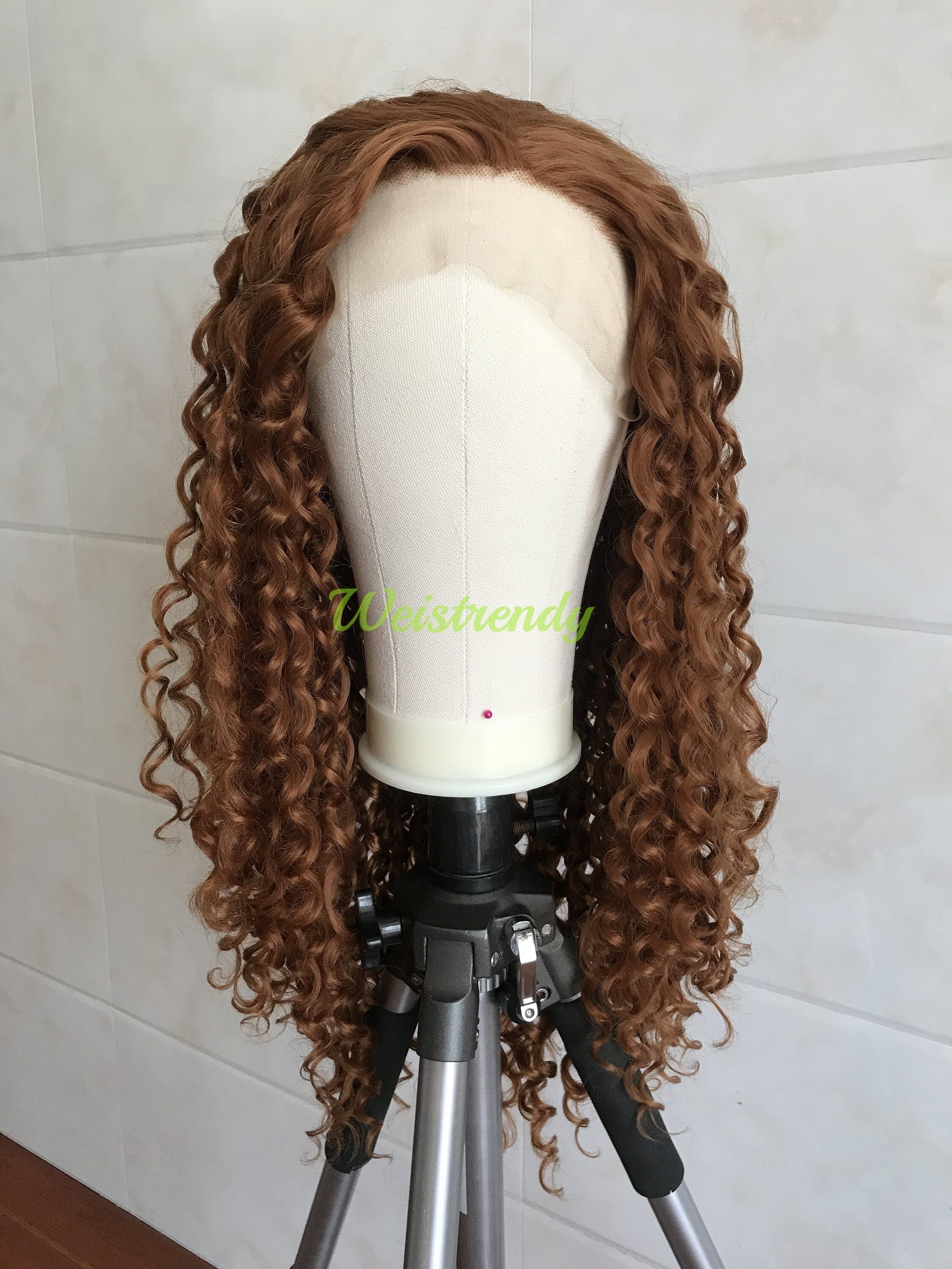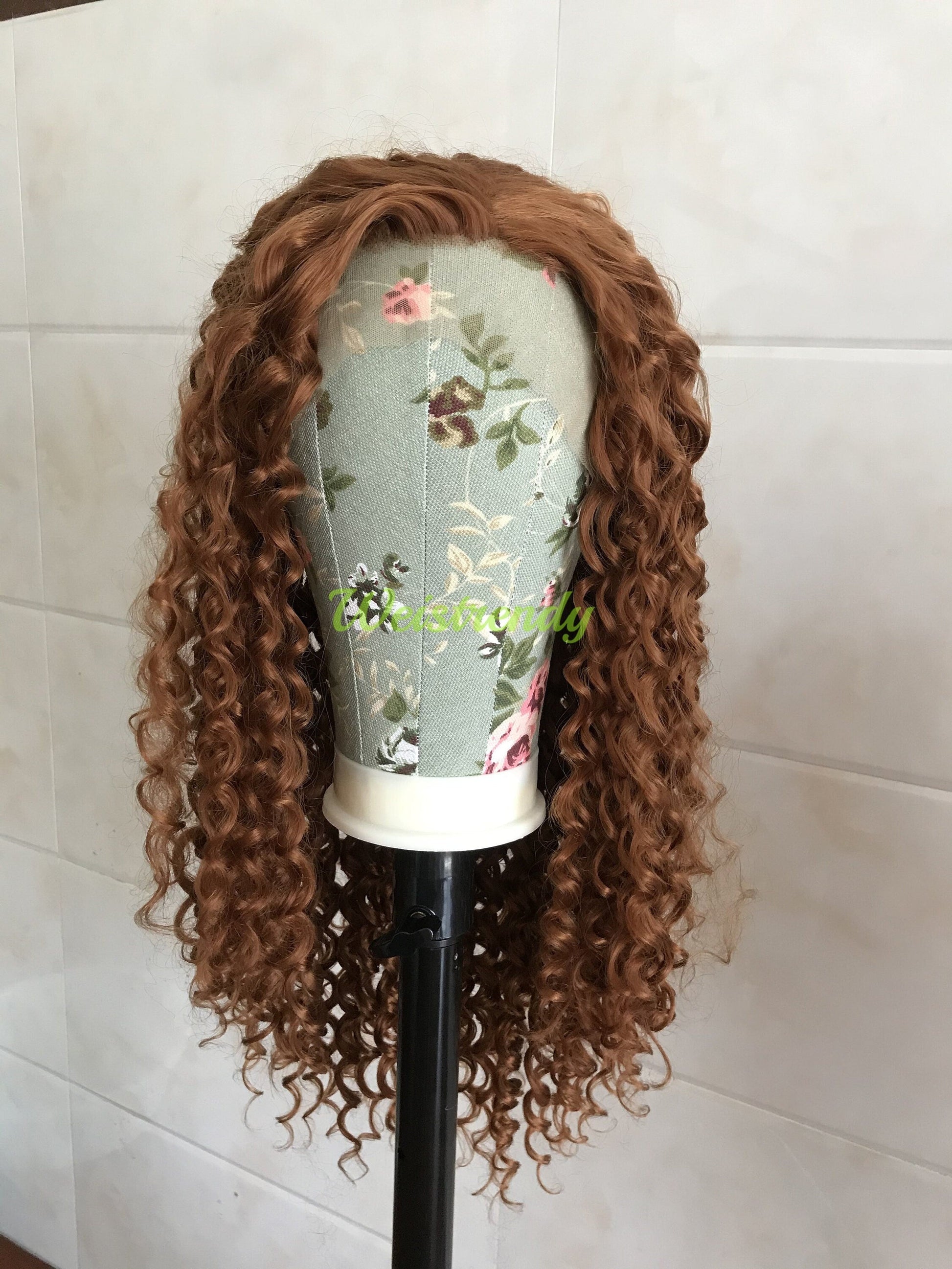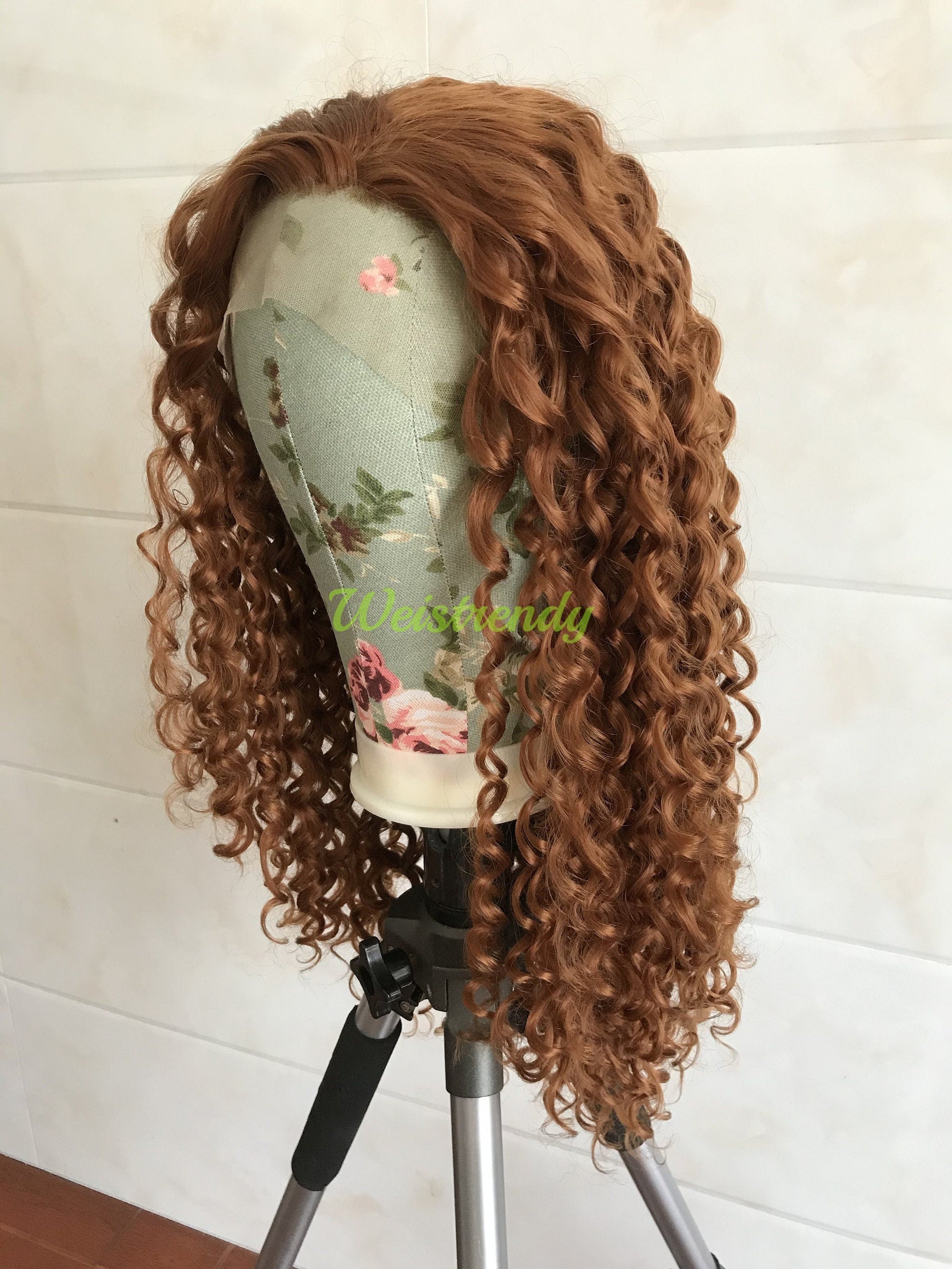 Copper Brown Long Afro Curls Wigs Premium Synthetic Fibre Heat Safe Glueless Lace Frontal Wig