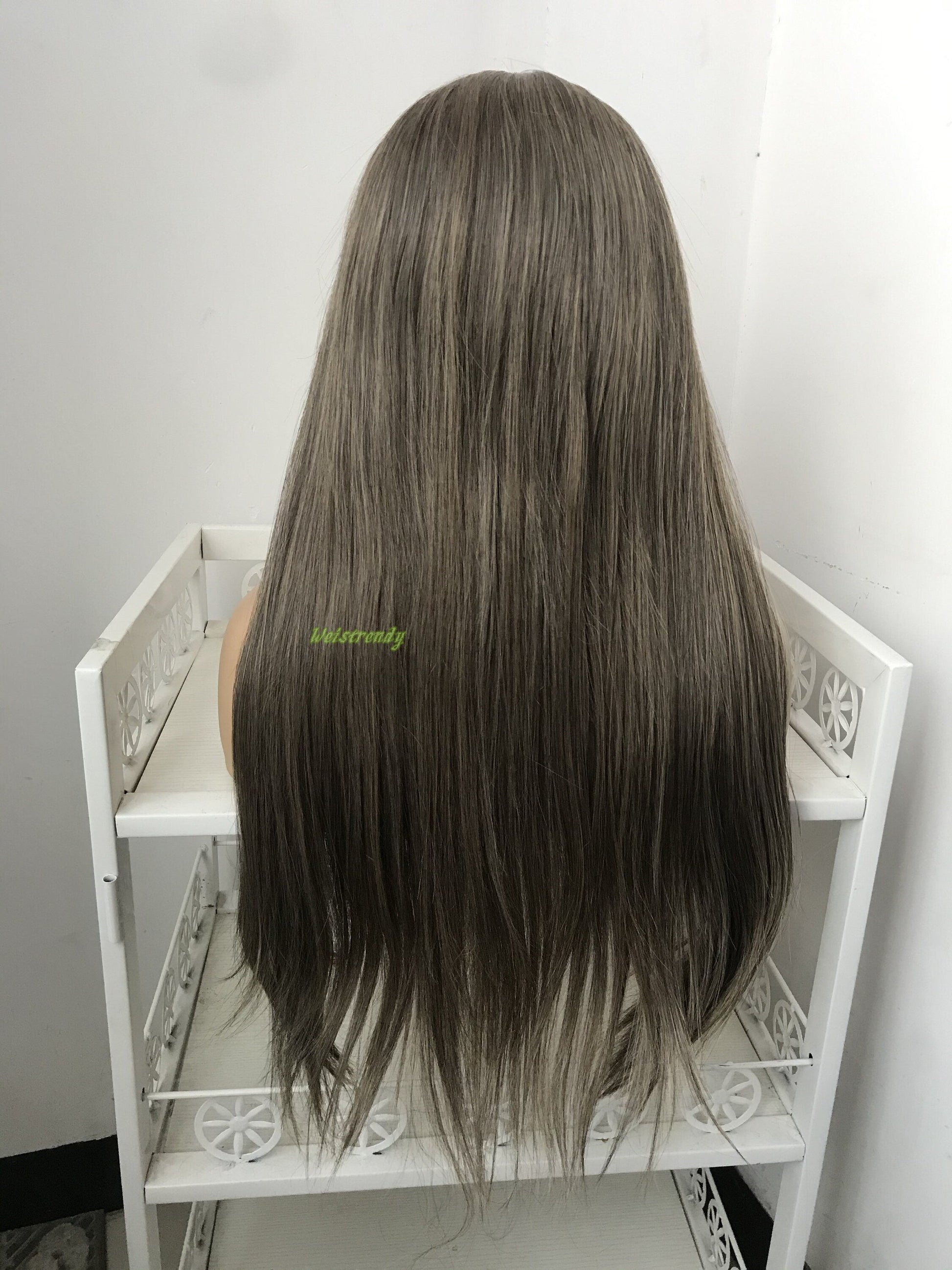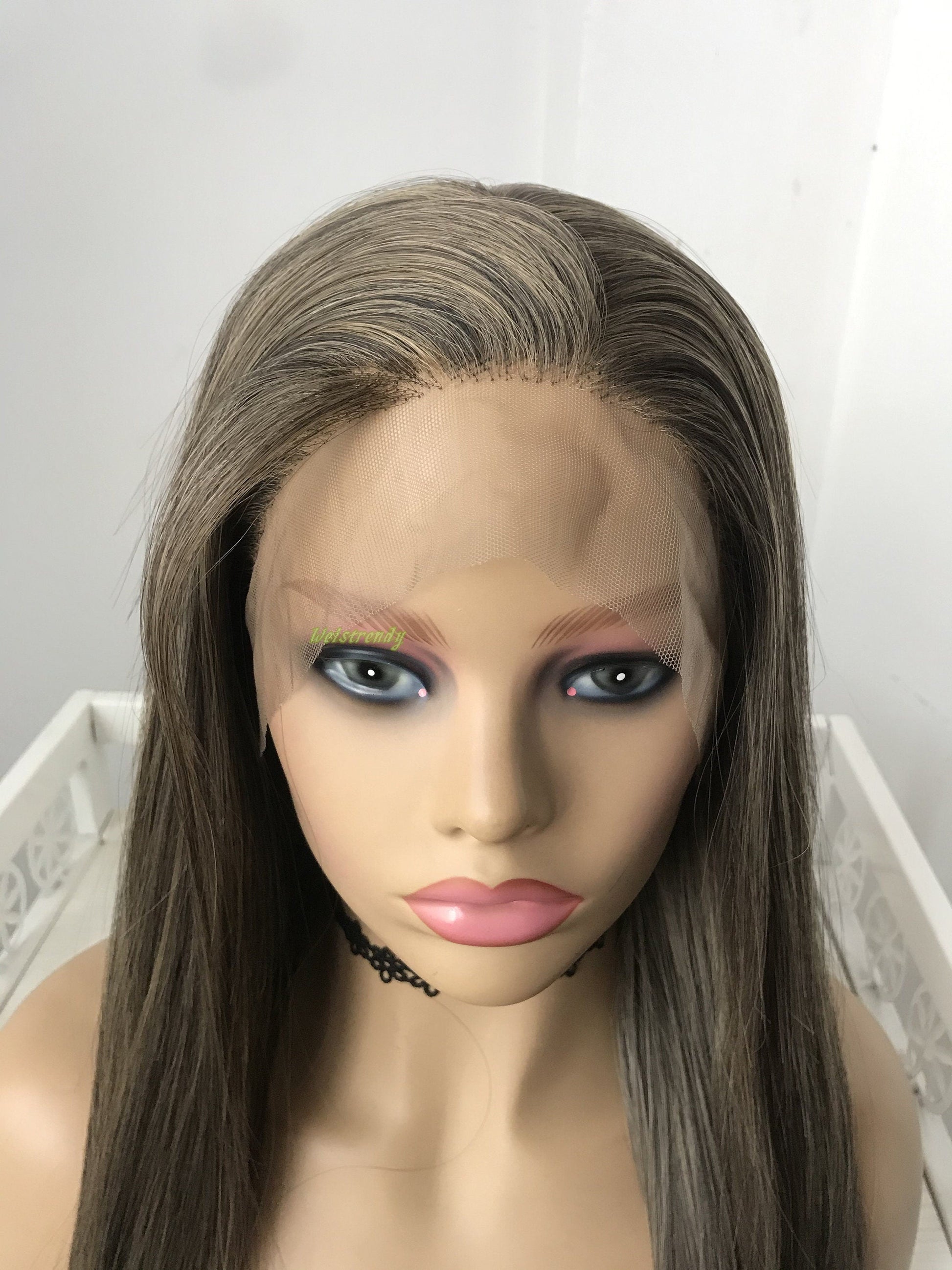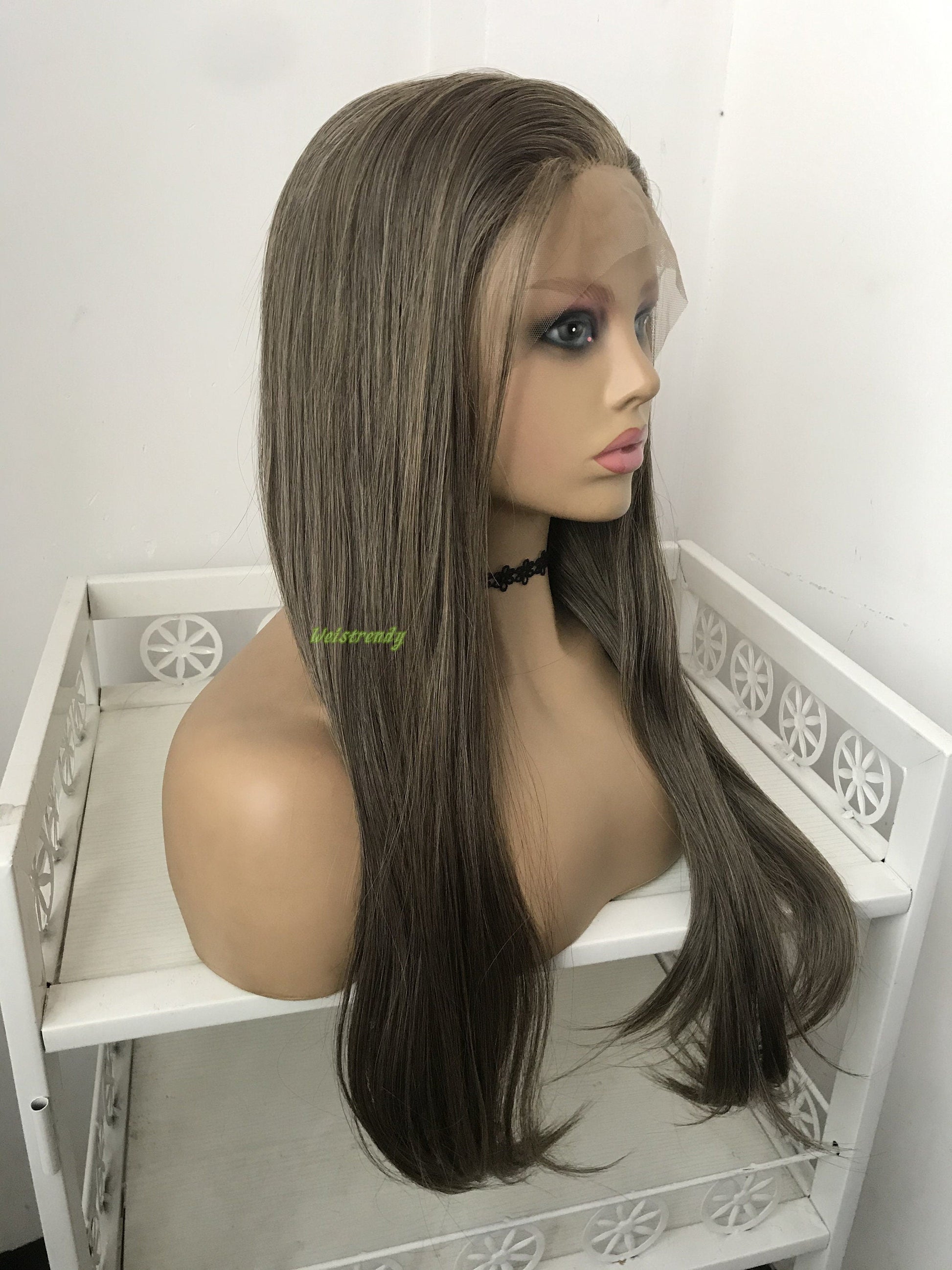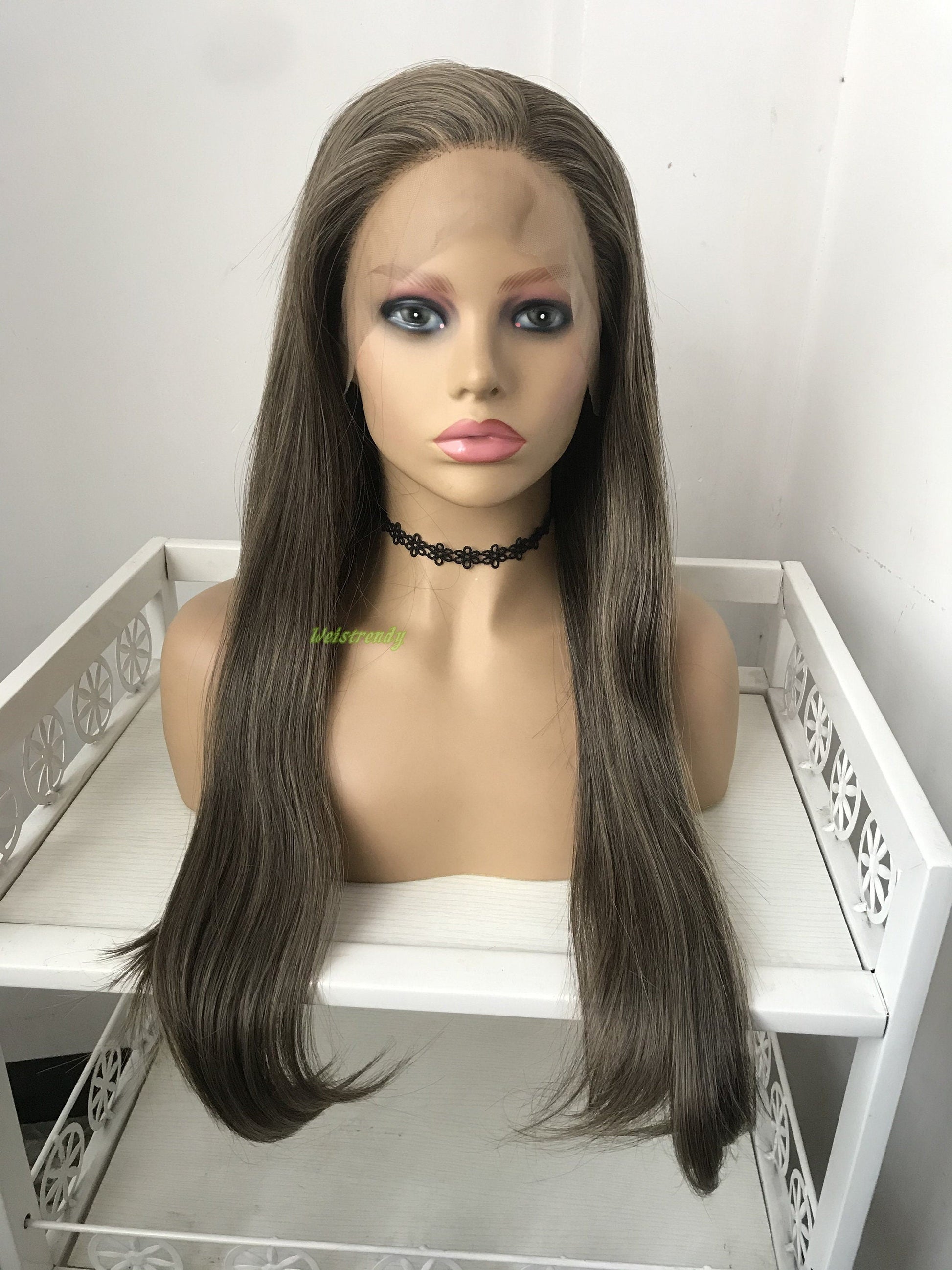 Dark Brunette Blend Long Straight Hair Premium Synthetic Lace Frontal Wig Heat Friendly