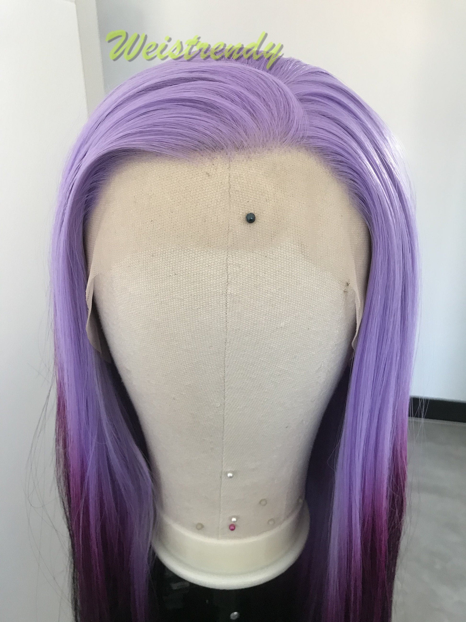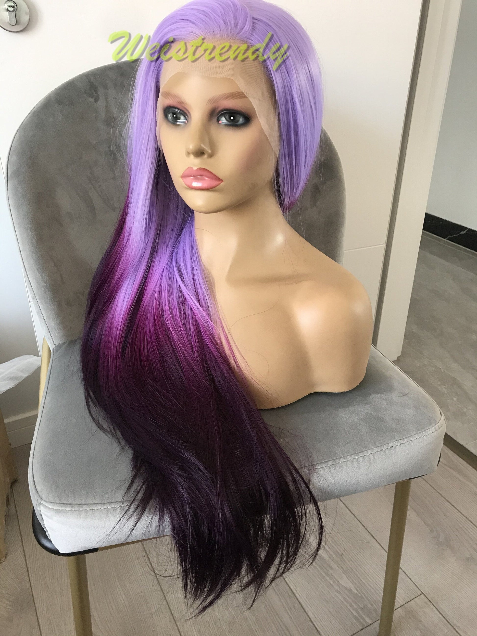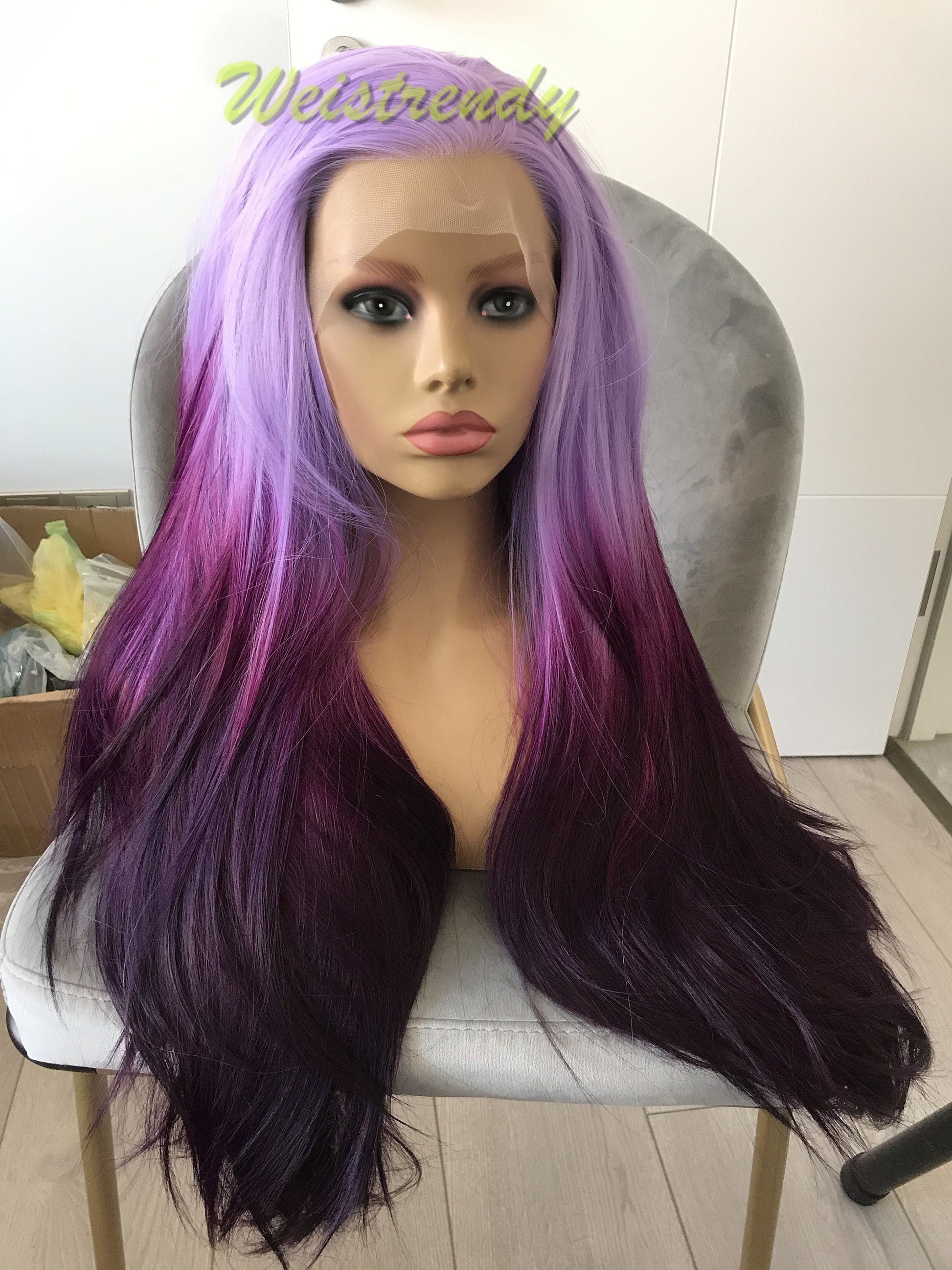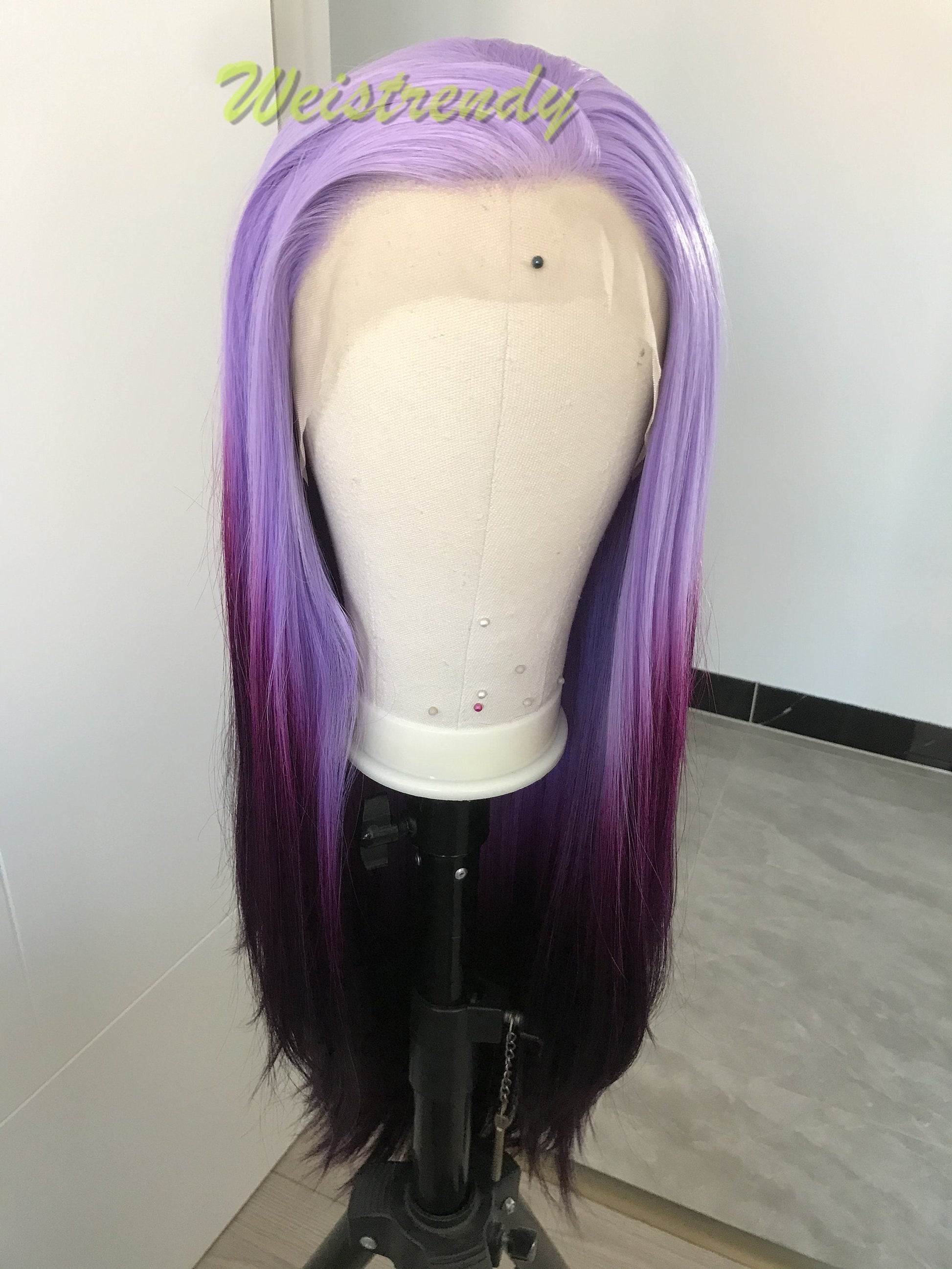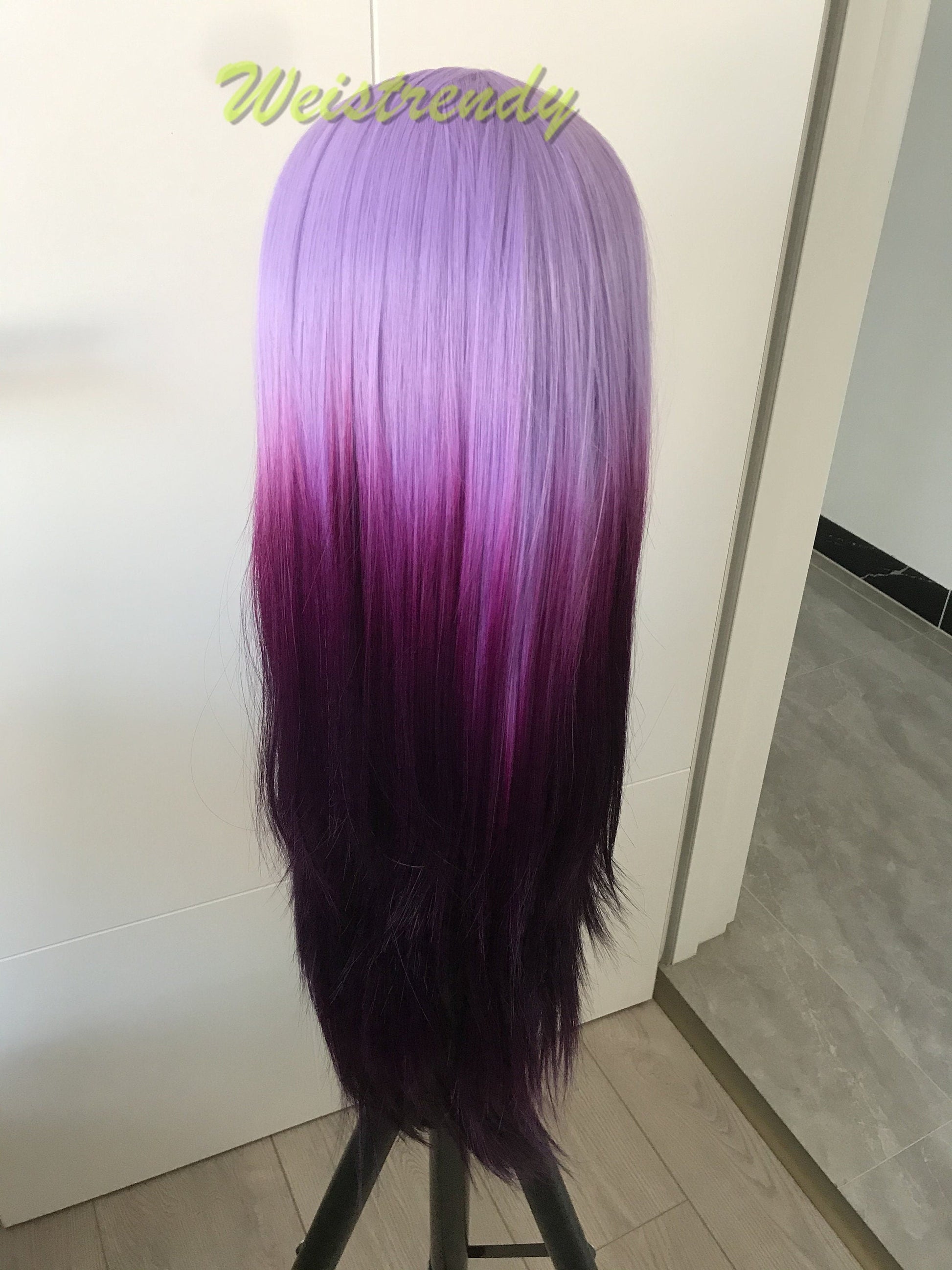 Inspired by Morning Glory Lilac into Dark purple Ombre Wigs Long Straight hairstyle wigs Synthetic Swiss Lace frontal Wigs Heat Safe