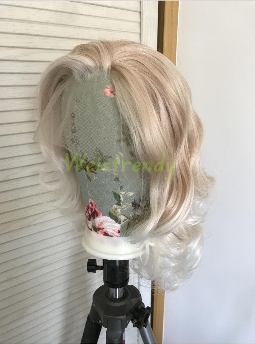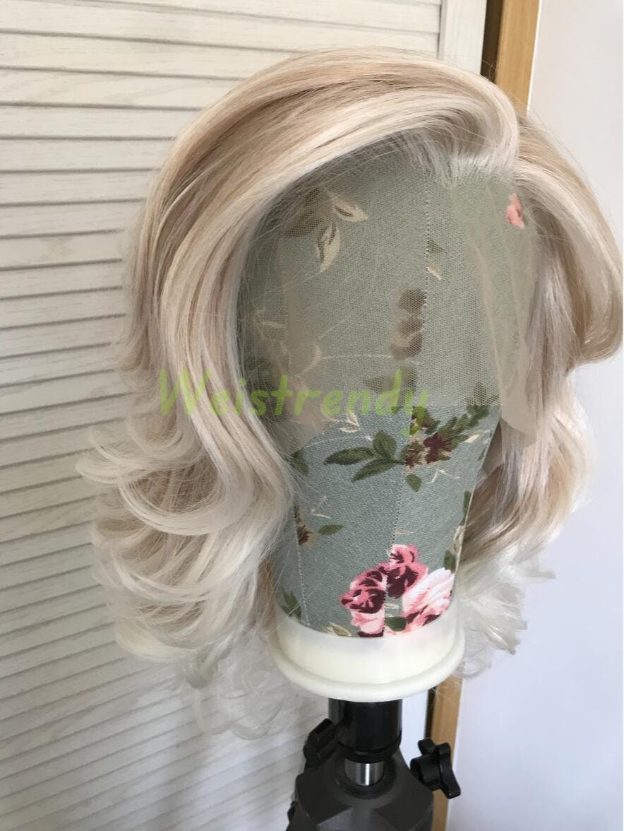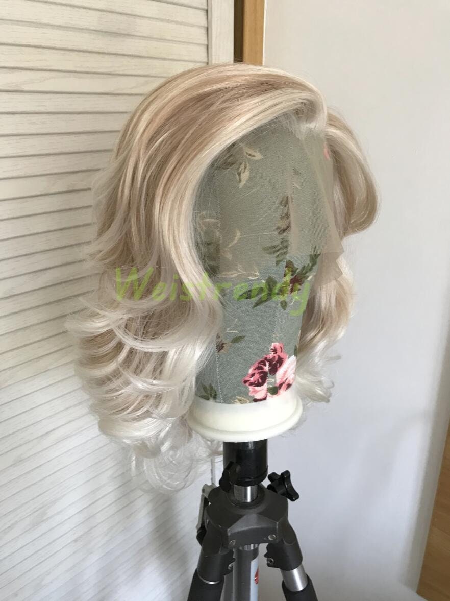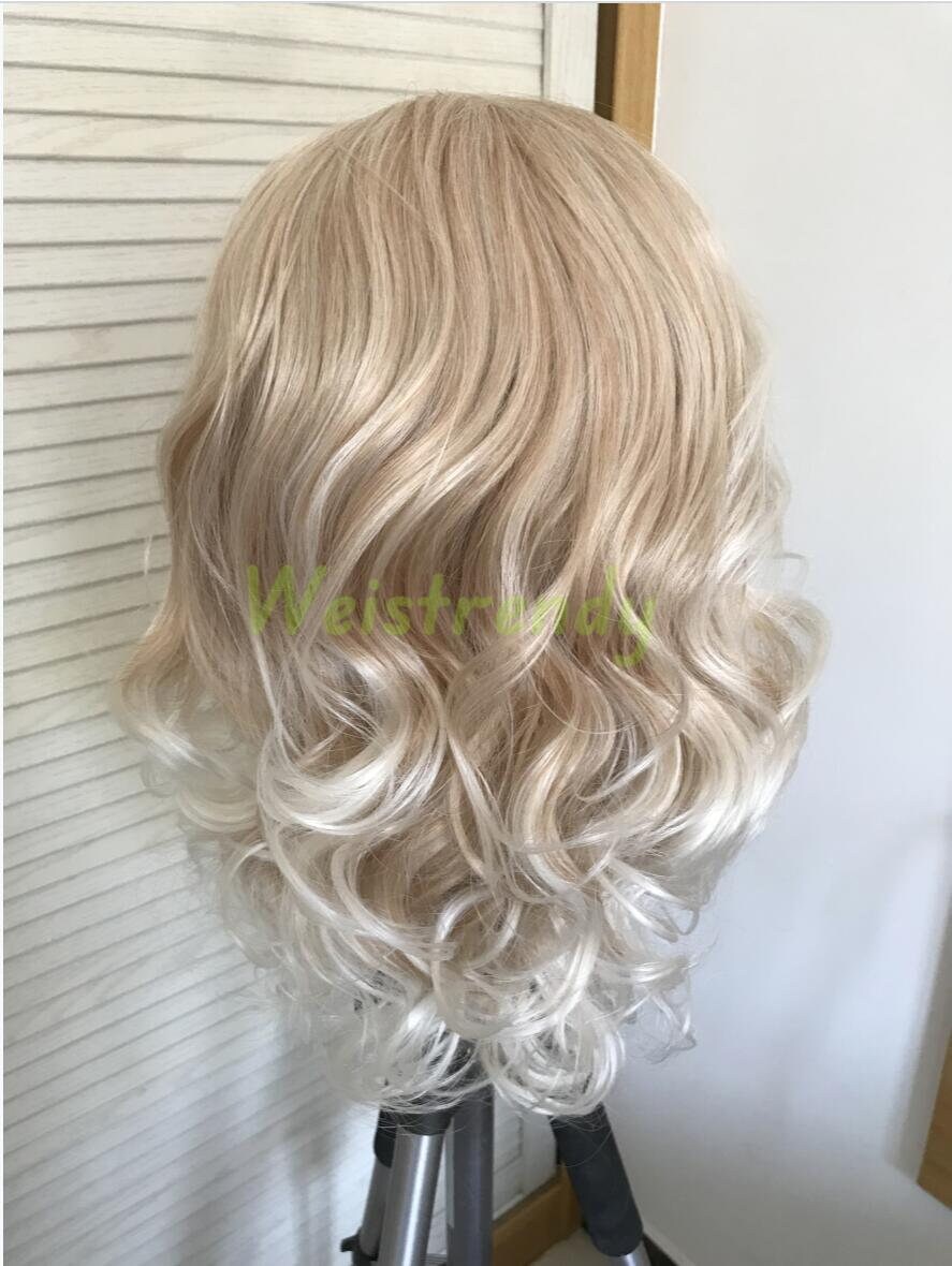 Mixed Blonde Ombre White Blonde Medium Length Curls Wavy Hair with White Frame | Premium Synthetic Lace Front Wig Free Part Heat Safe