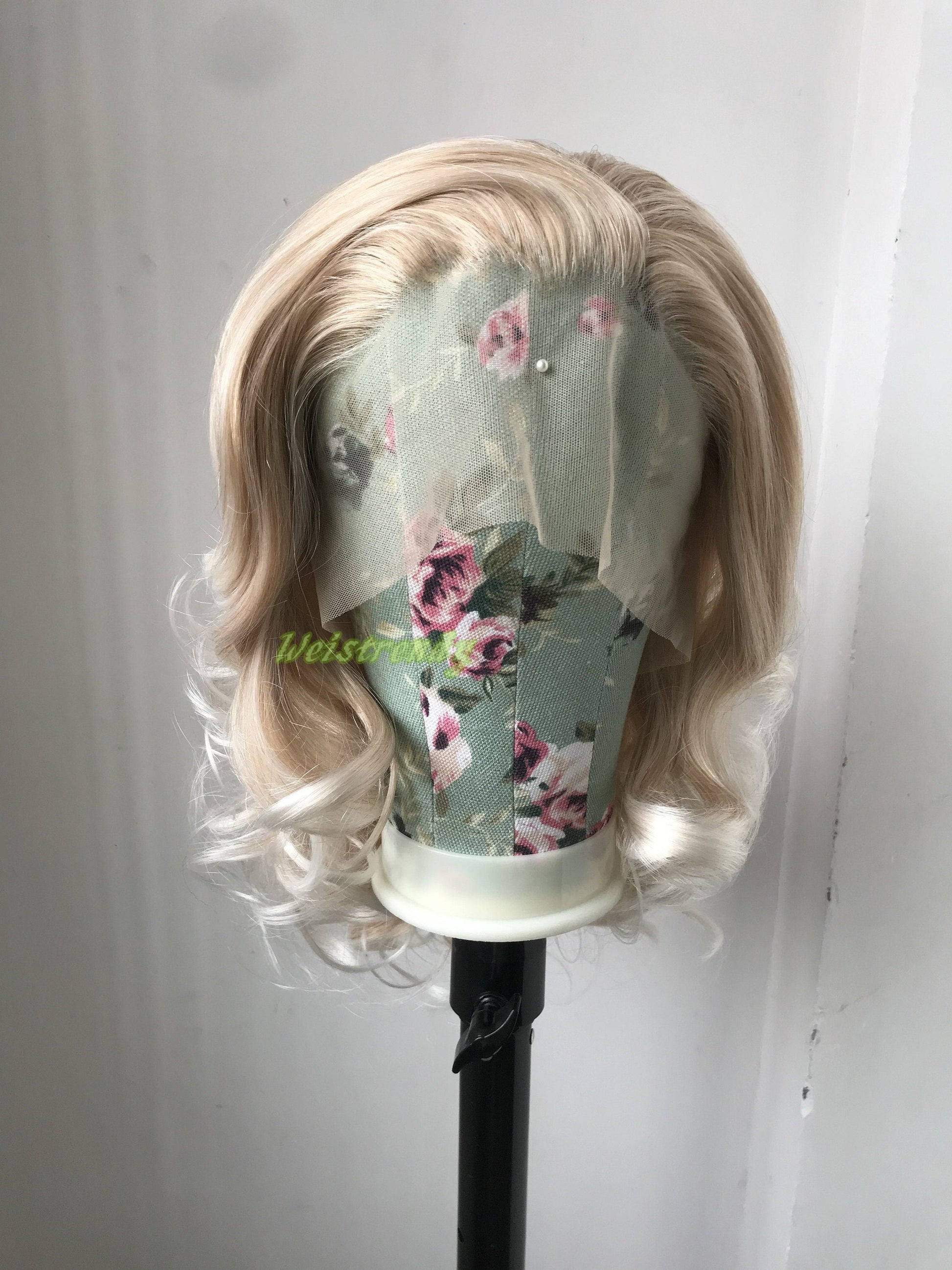 Mixed Blonde Ombre White Medium Length Waves Hair Synthetic Soft Swiss Lace Front Wig Free Part Heat Friendly