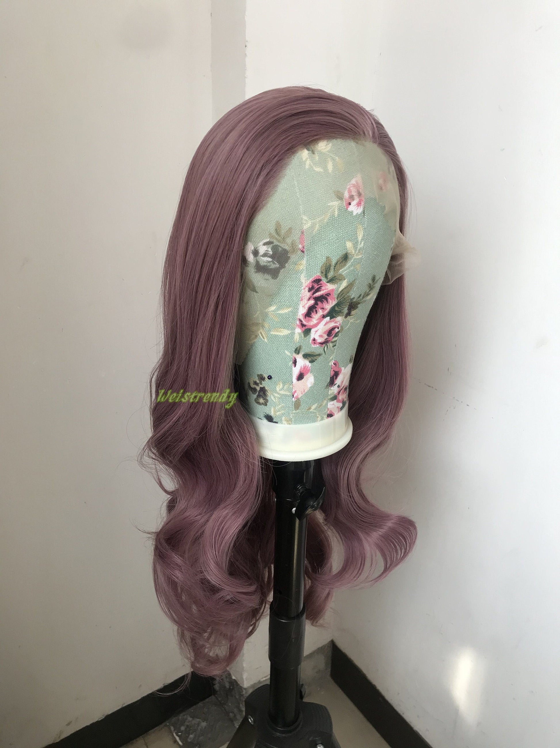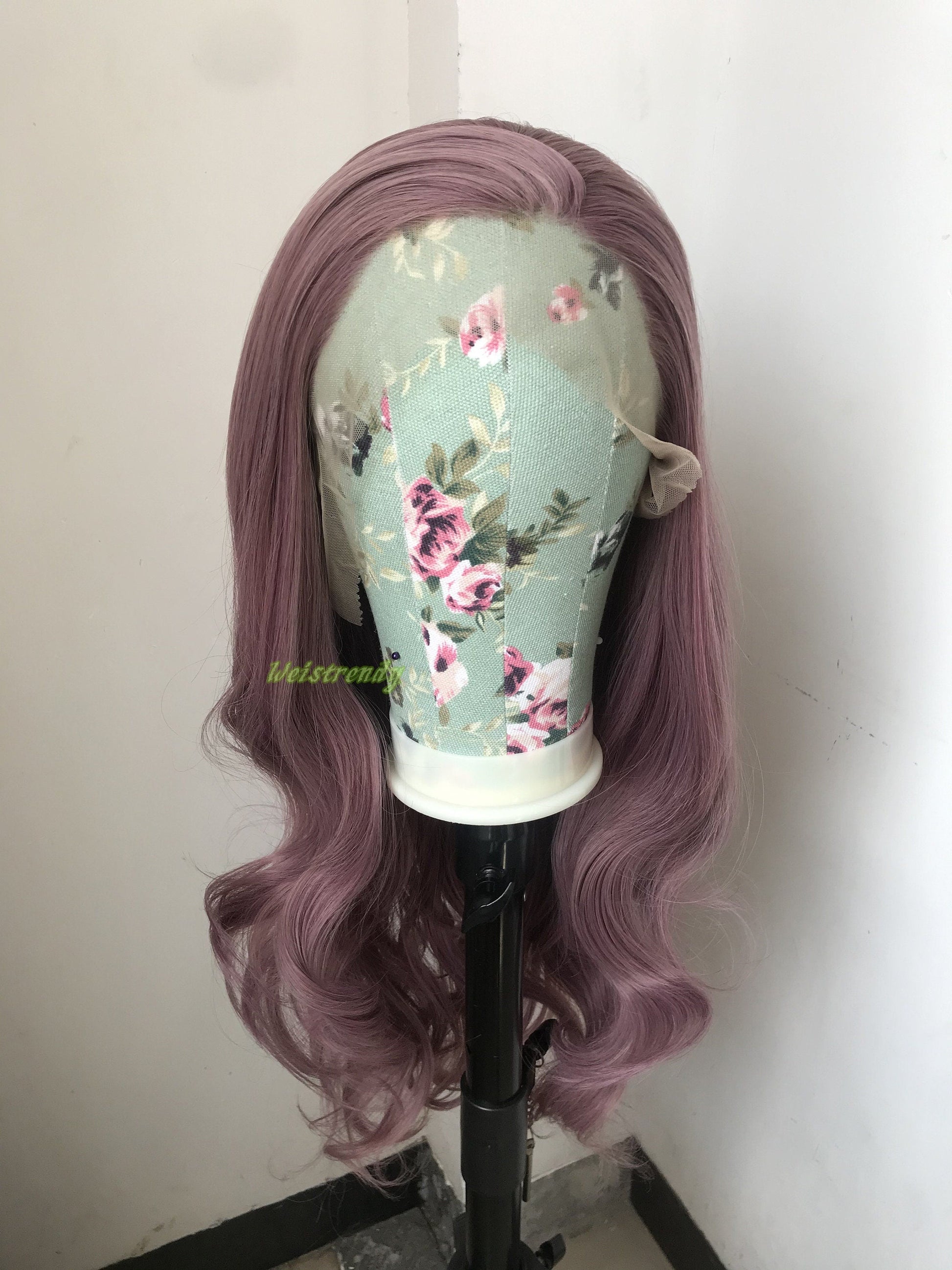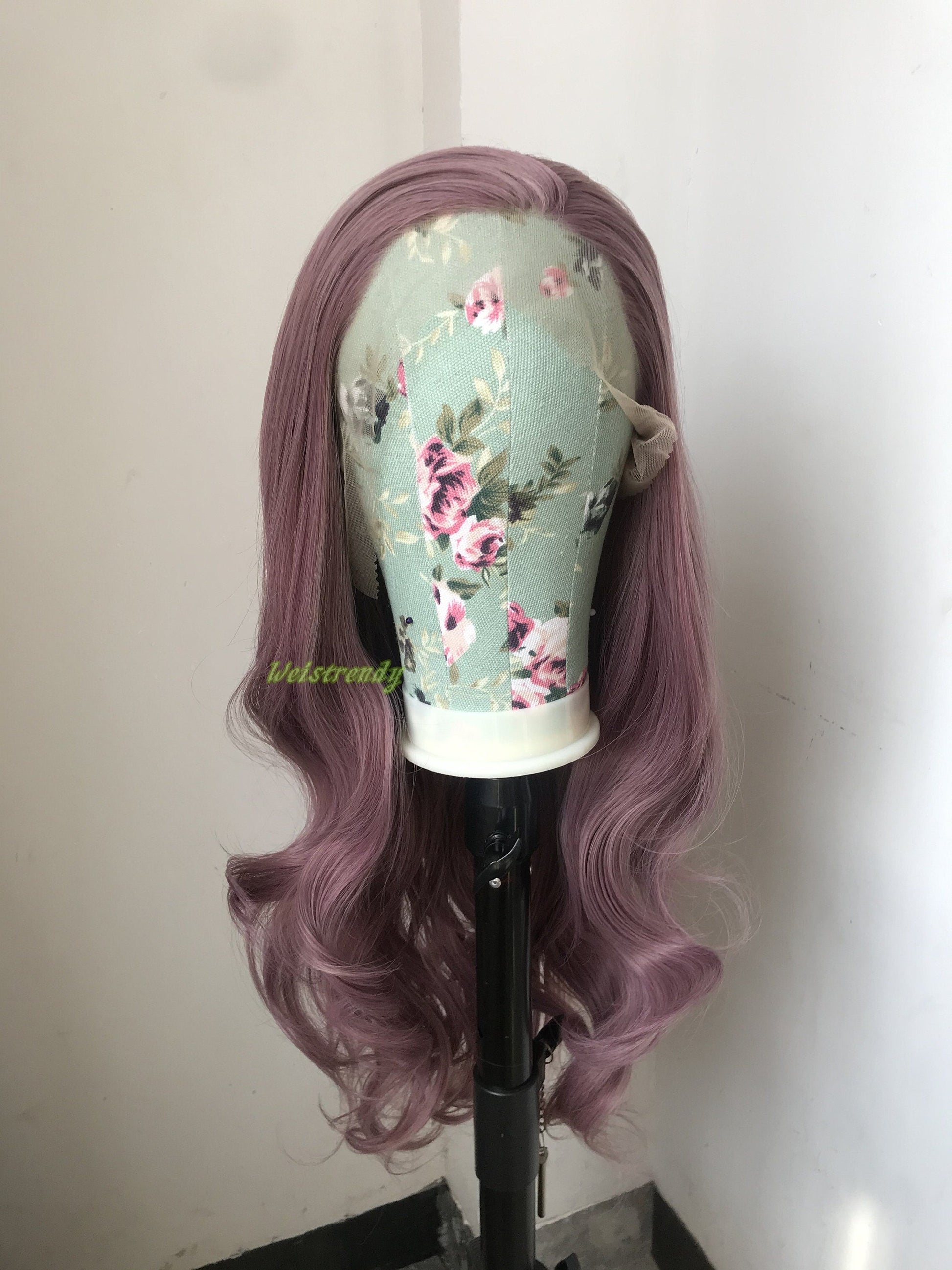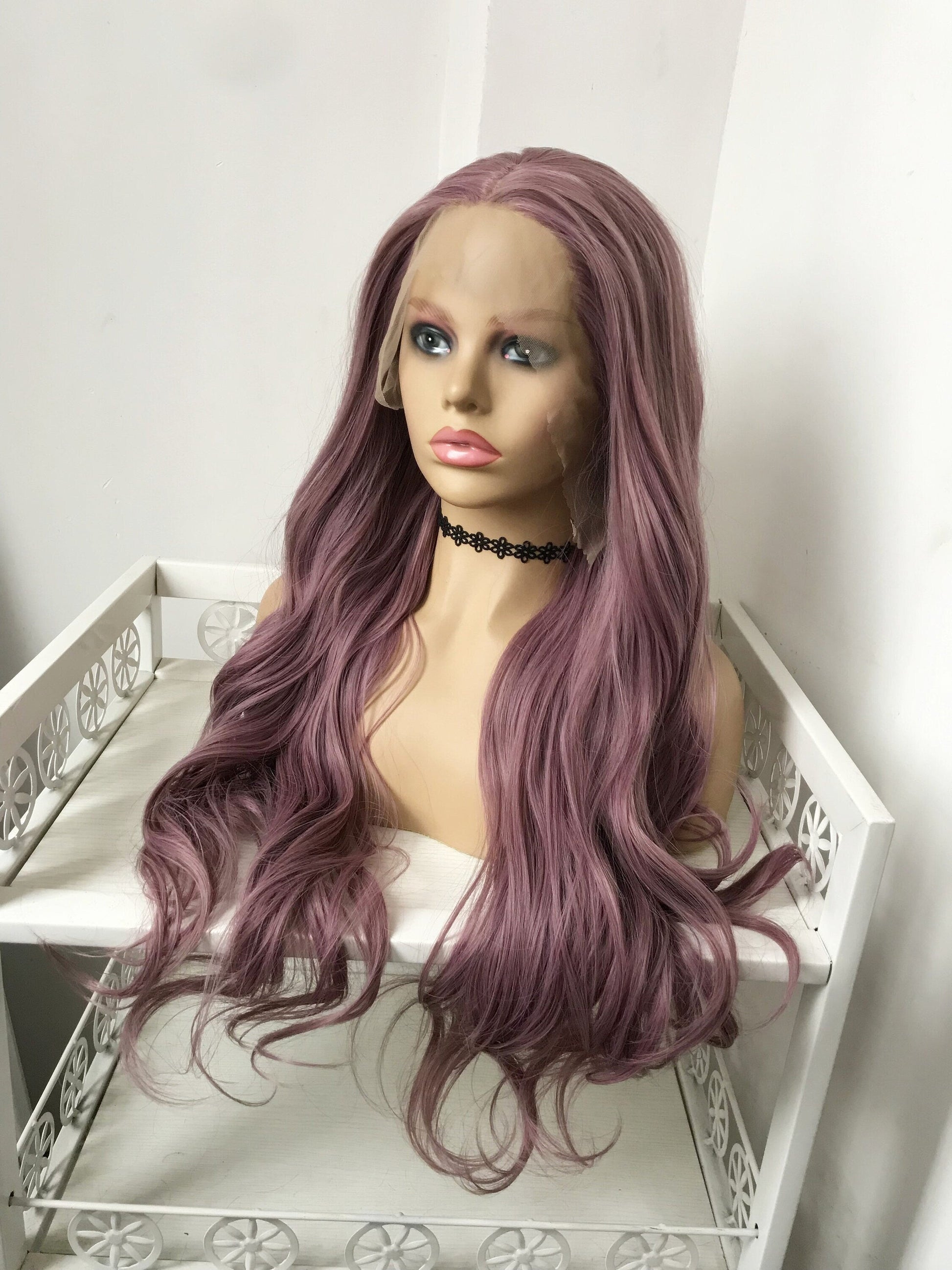 Mixed Blonde Purple Long Natural Wavy Hair Premium Synthetic Lace Frontal Wig Heat Friendly