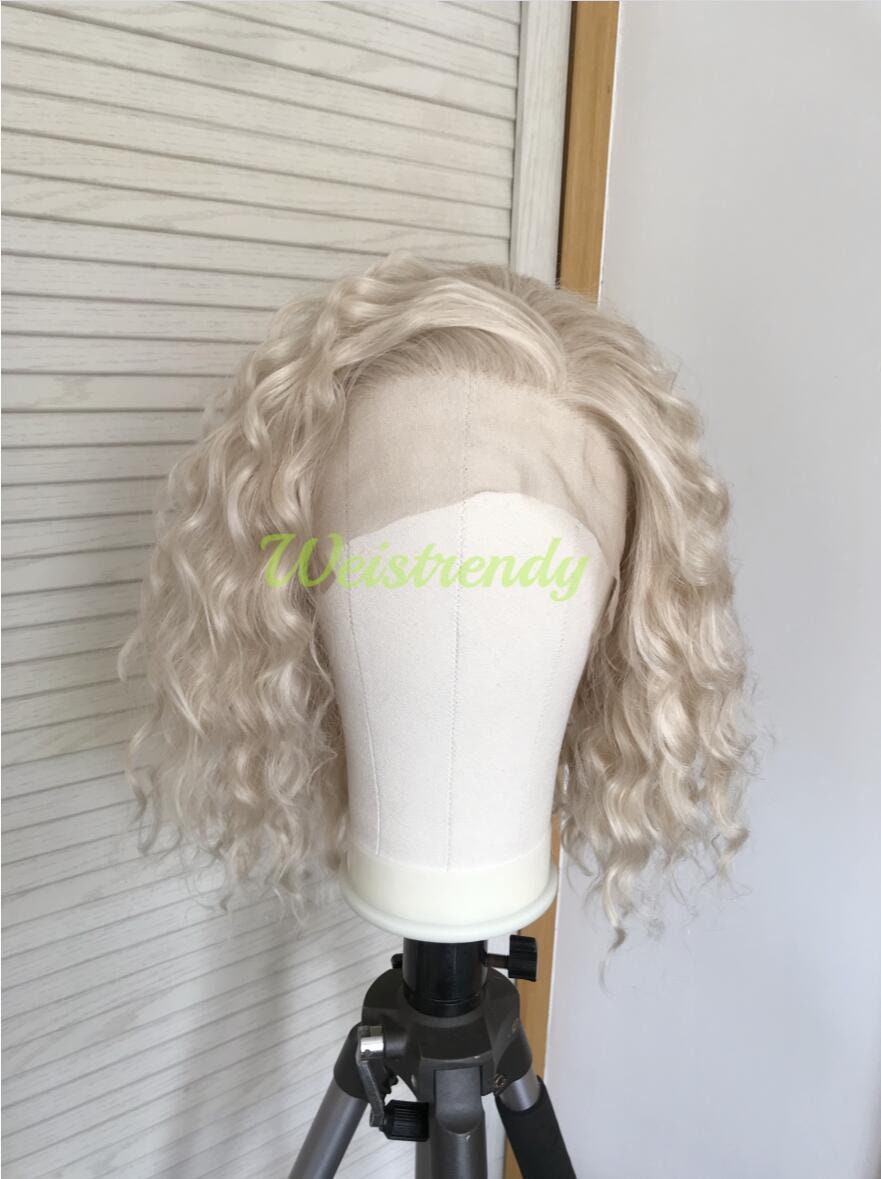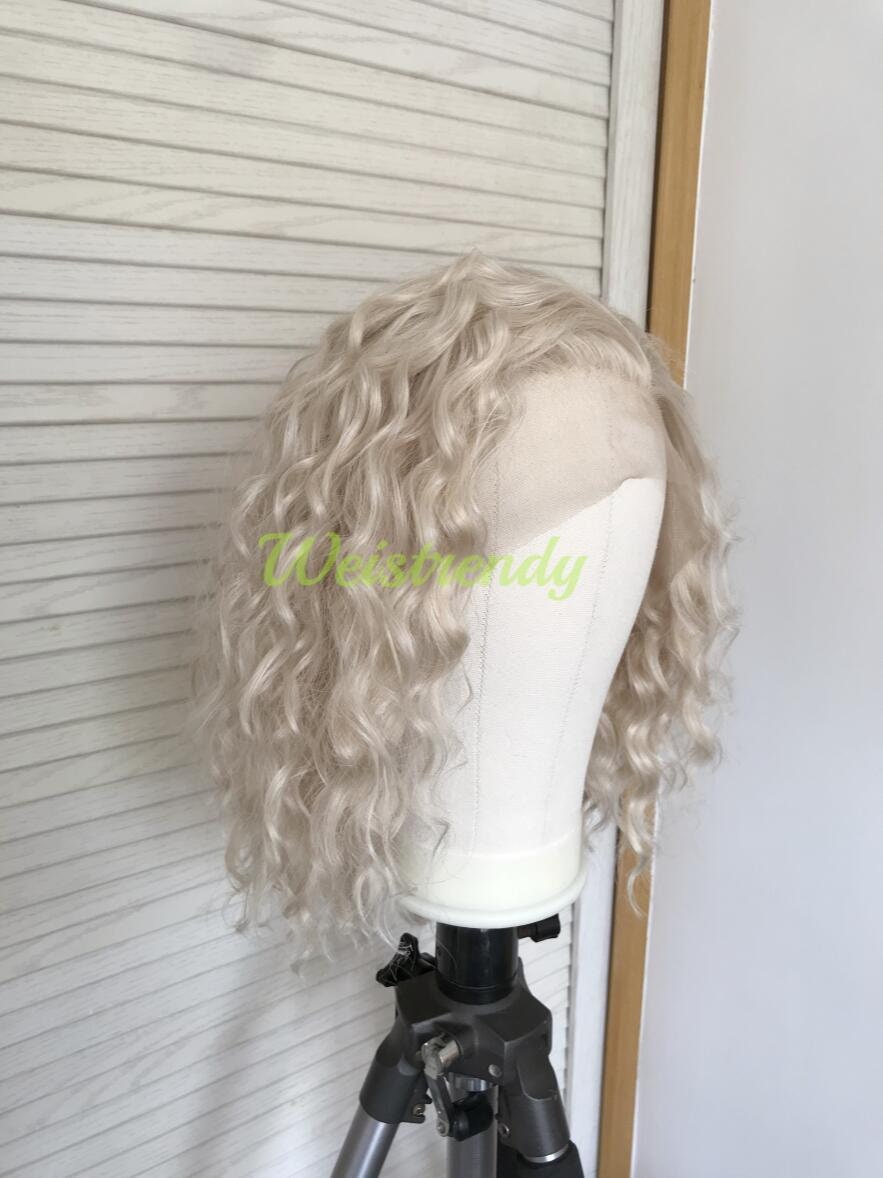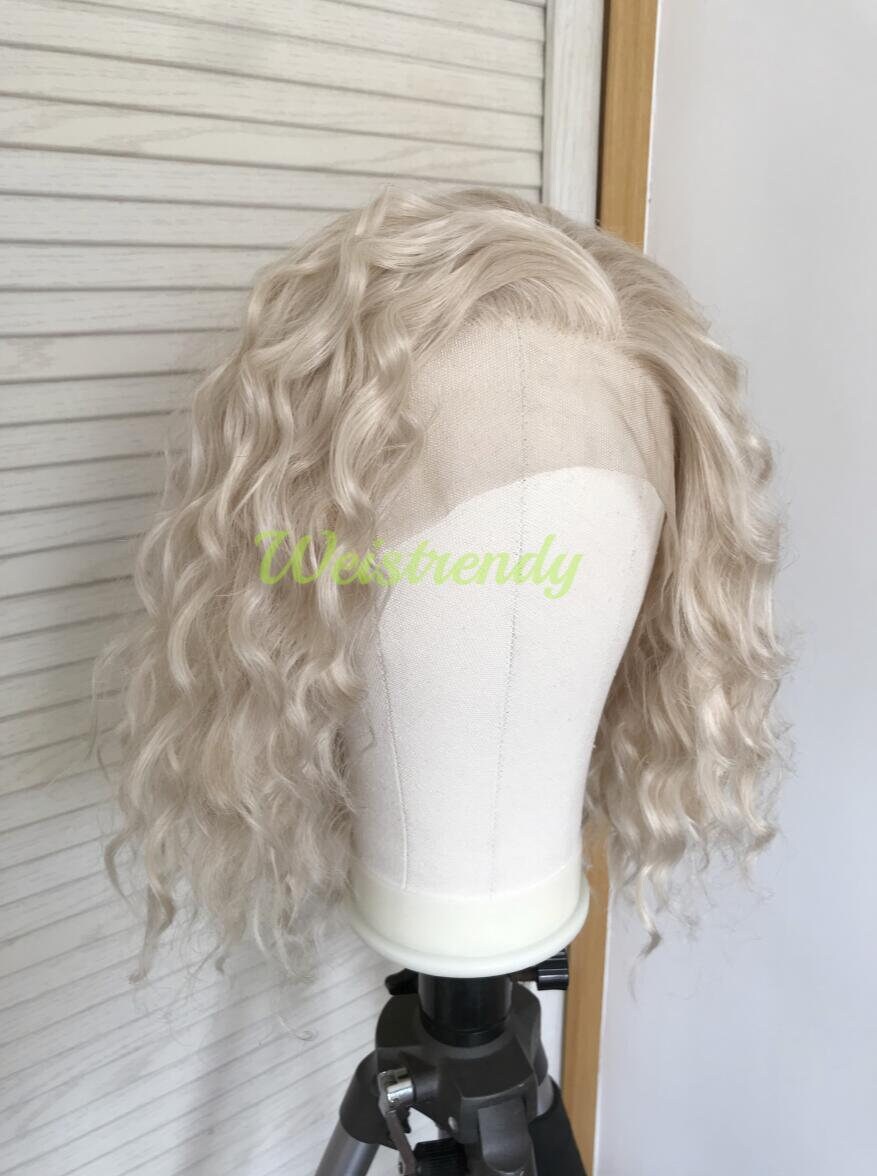 Mixed Blonde Short Spiral Curls Wavy Hair Synthetic Lace Frontal Wig Side Parting