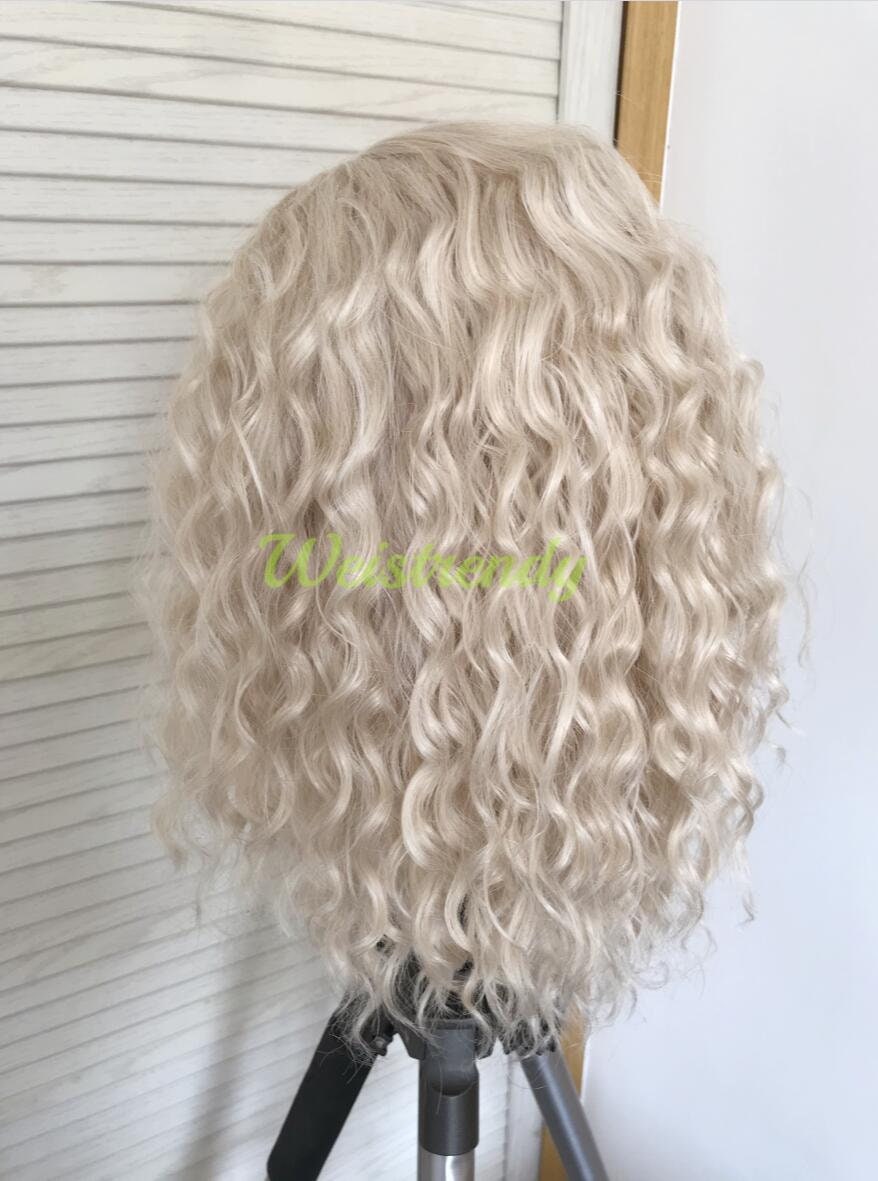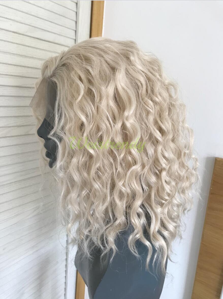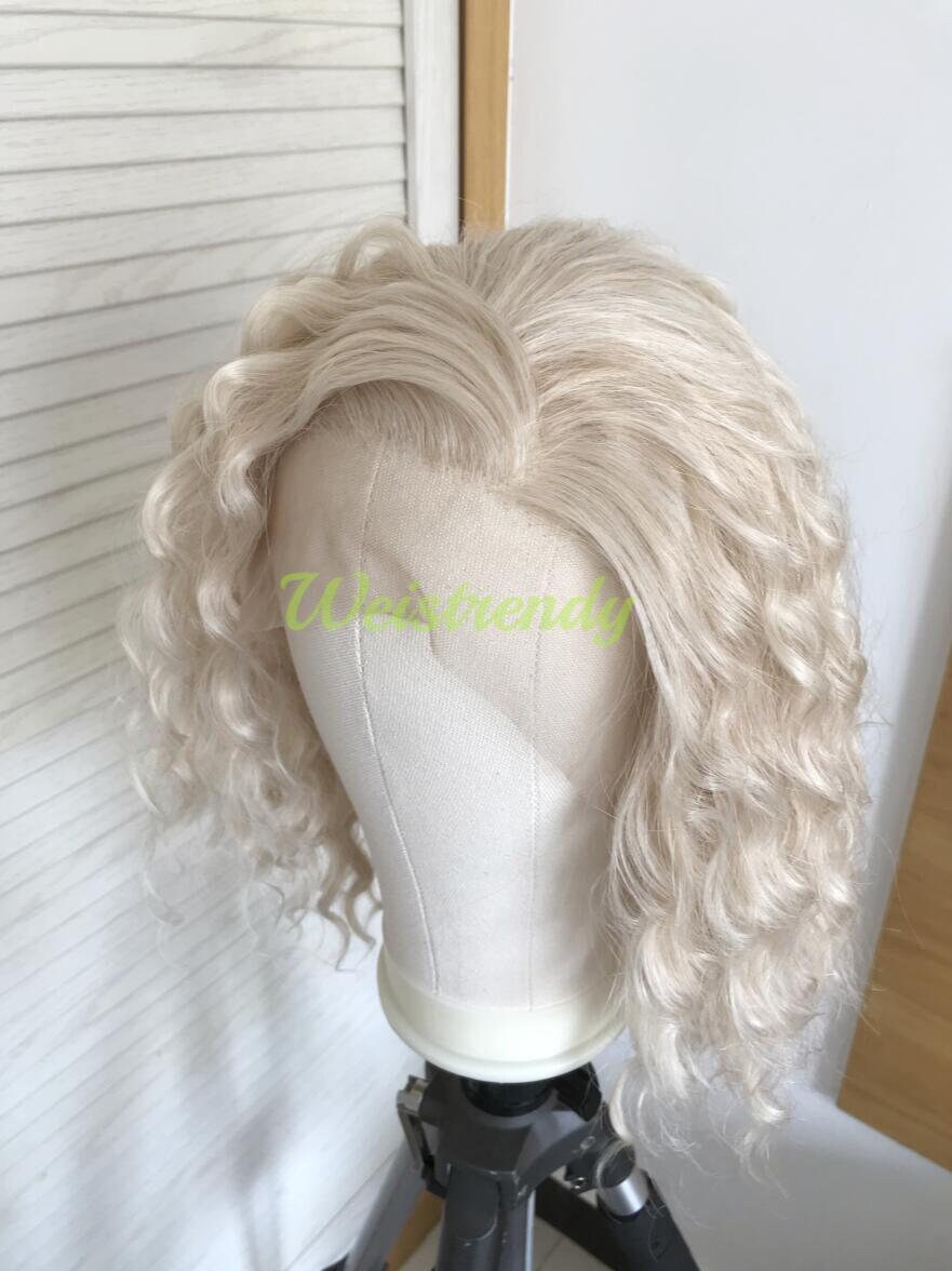 Mixed Blonde Short Spiral Curls Wavy Hair Synthetic Lace Frontal Wig Side Parting