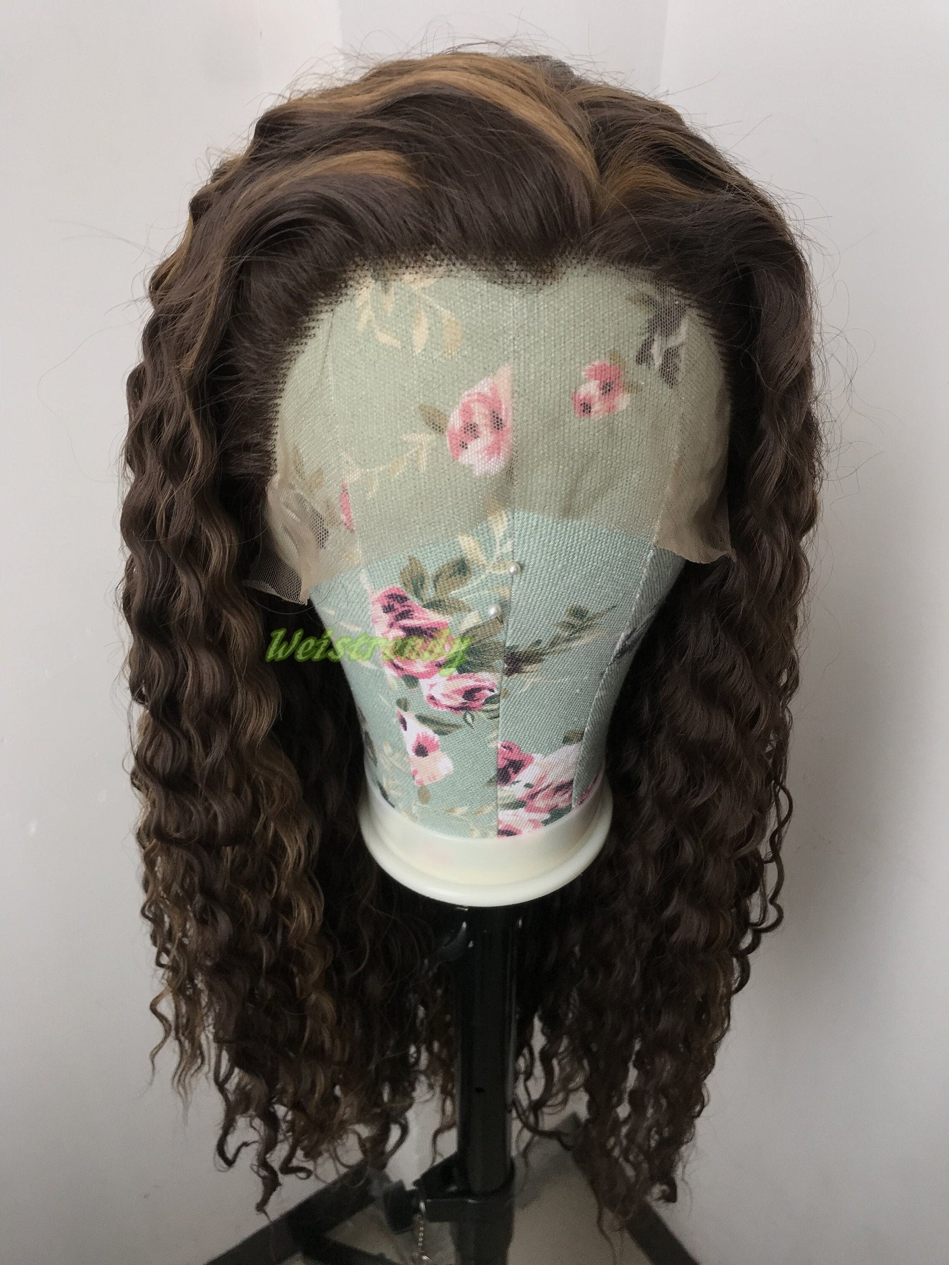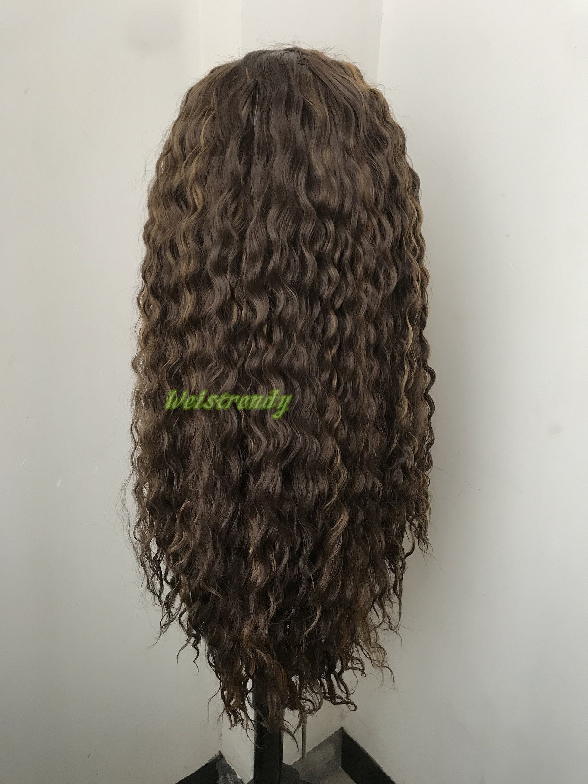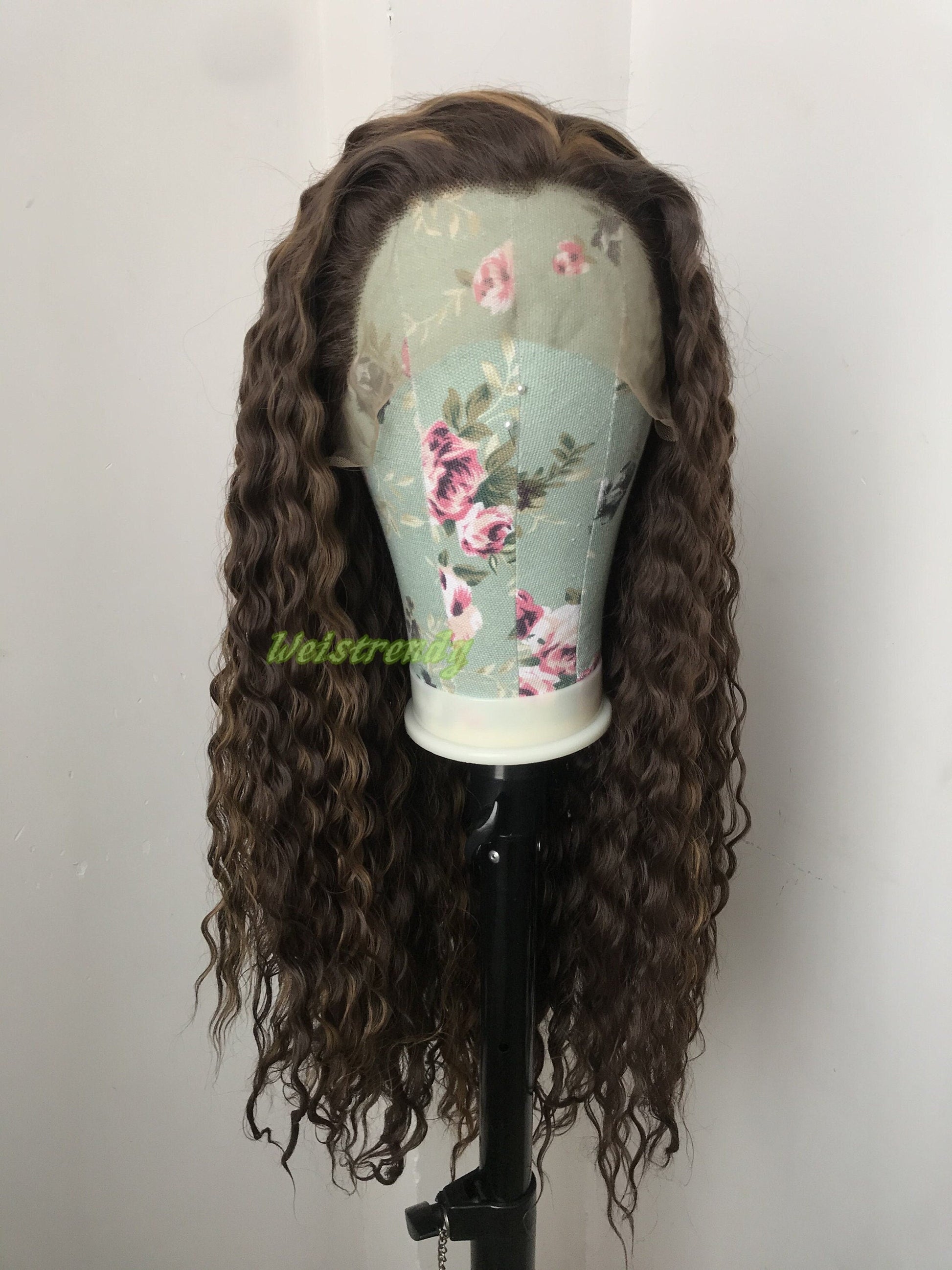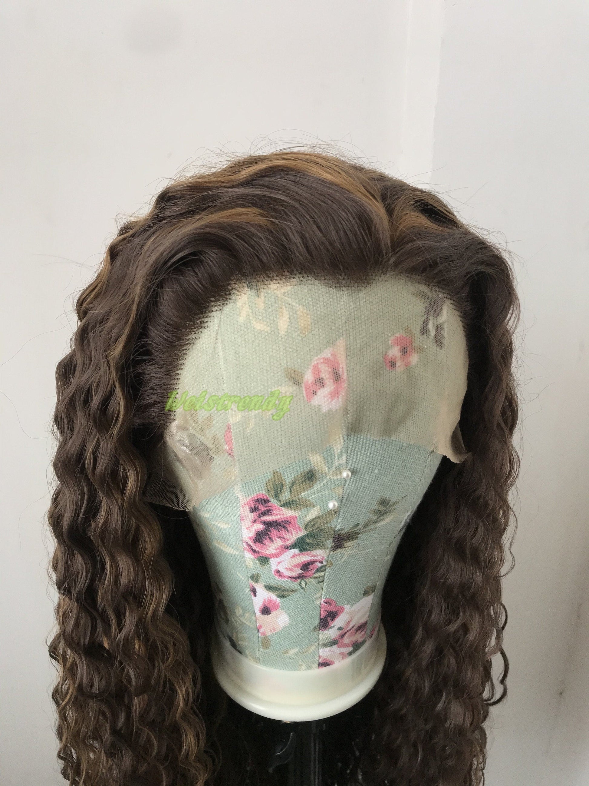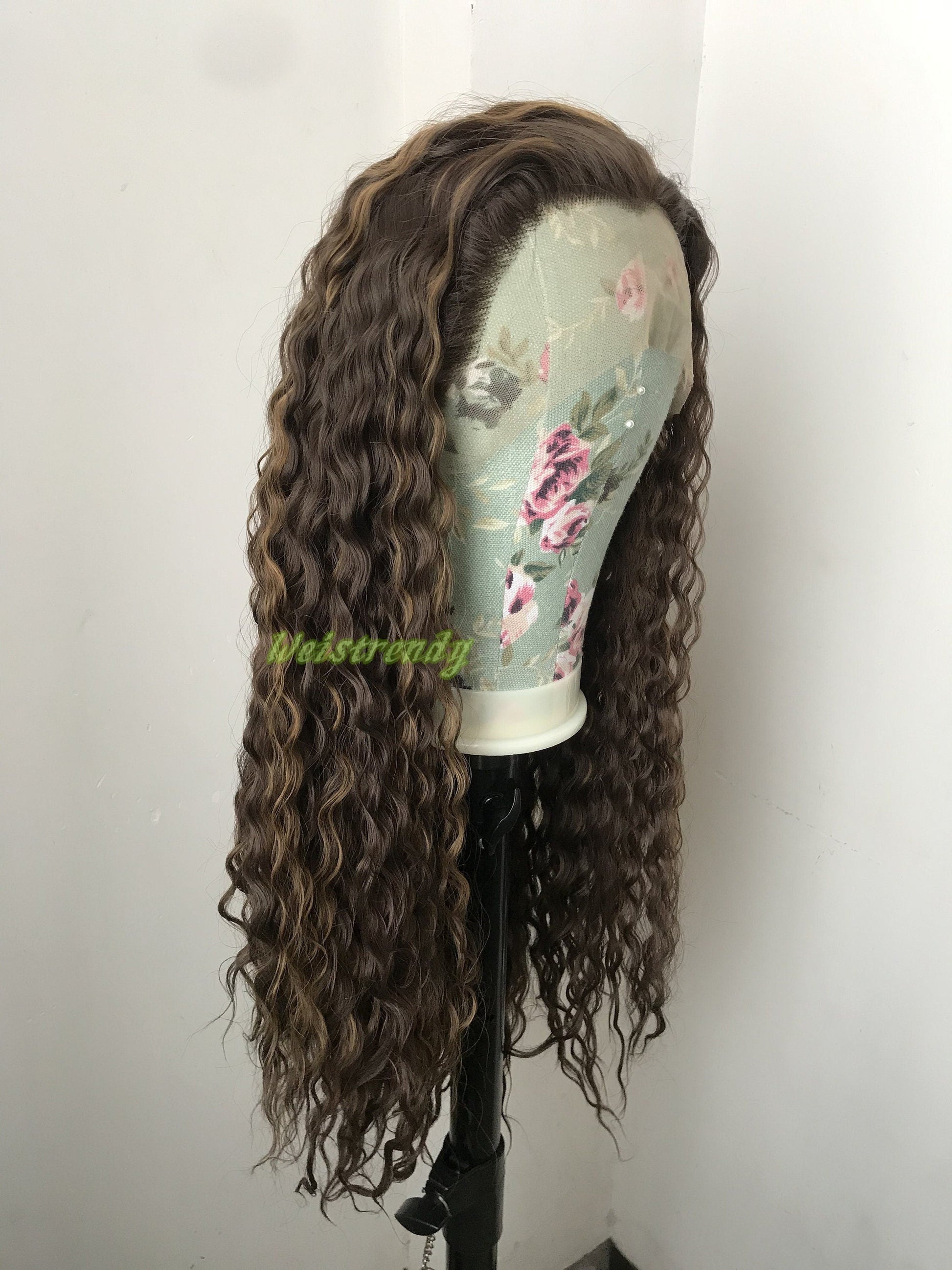 Mixed Brown Light Brown Highlights Long waves Hair Premium Synthetic Fibre Heat Safe Lace Frontal Wig