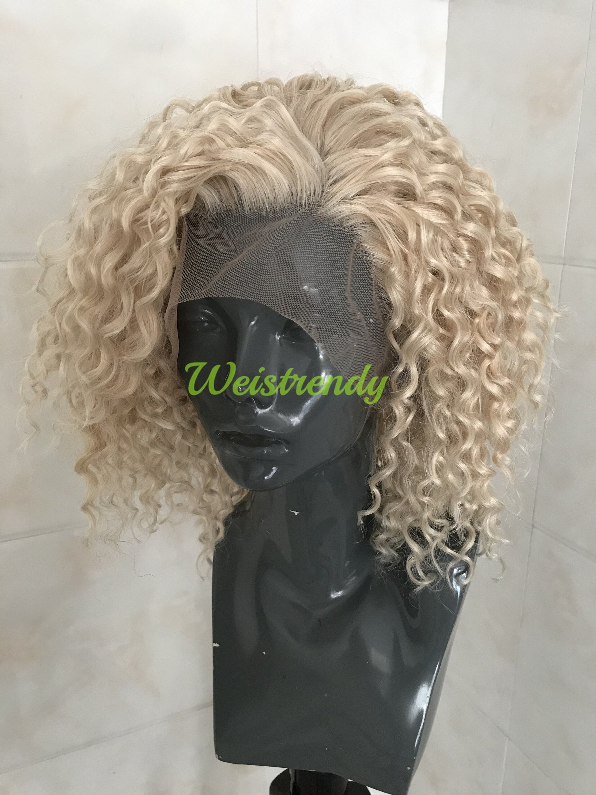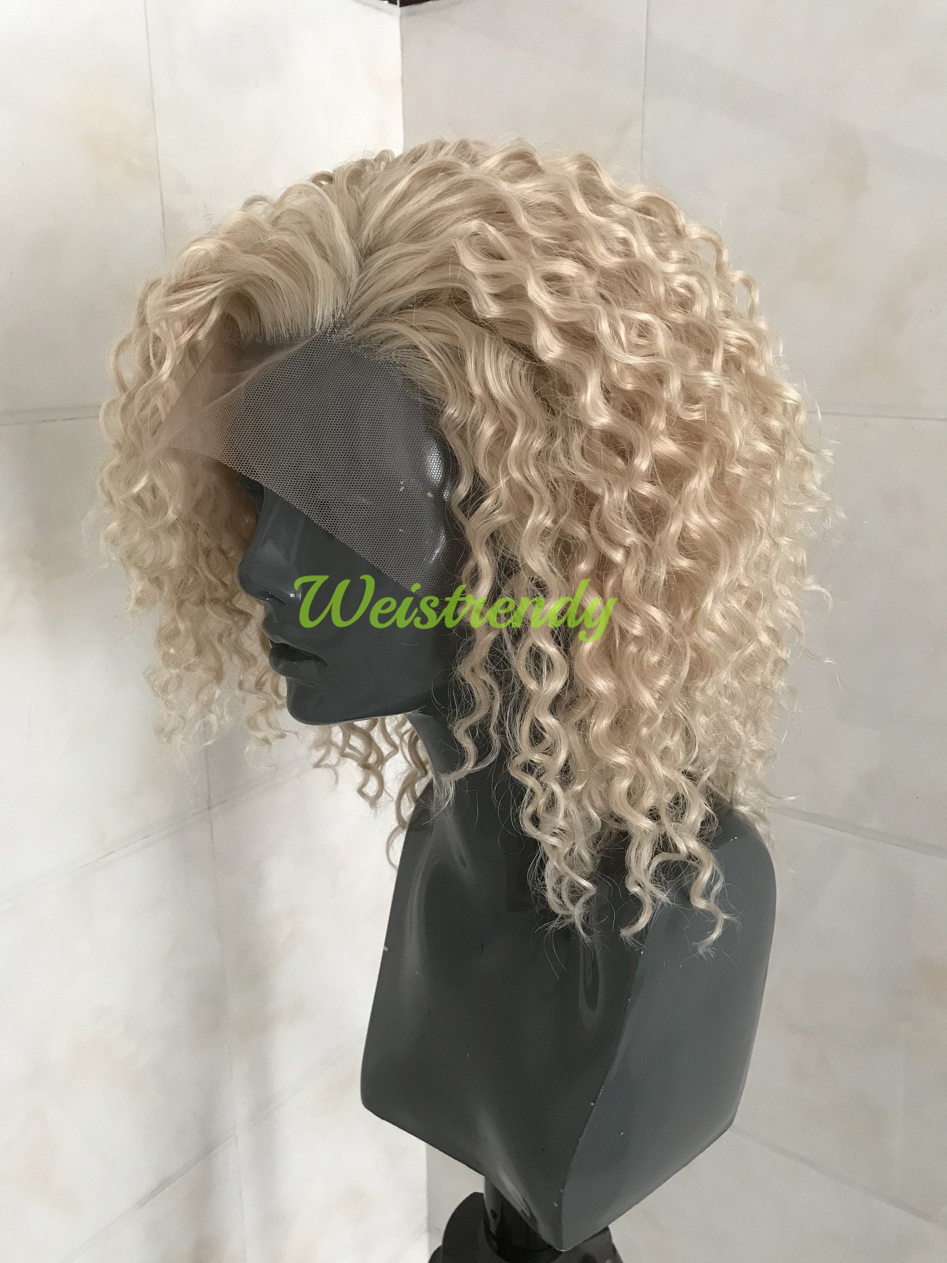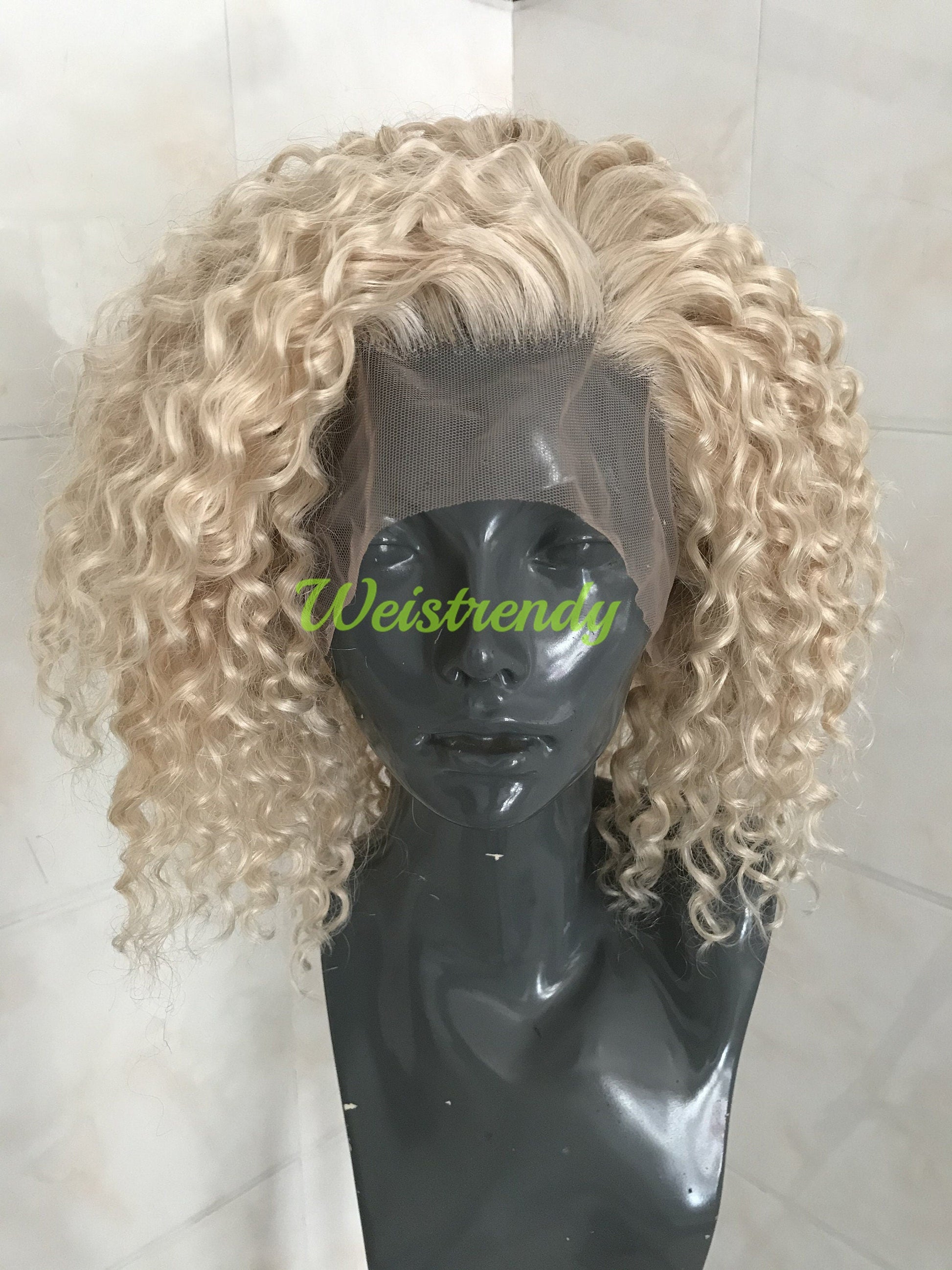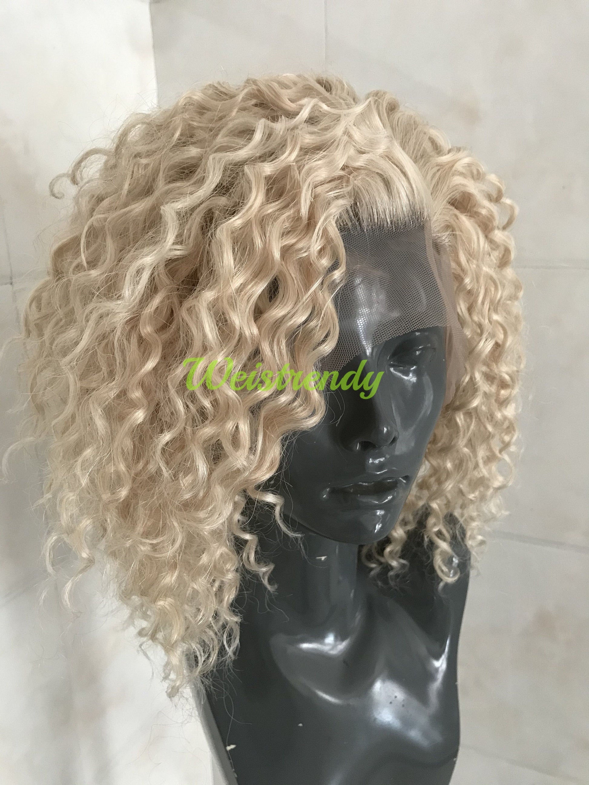 Mixed Platinum Blonde Short Spiral Curly Hair Wigs Synthetic Lace Frontal Wig Side Parting