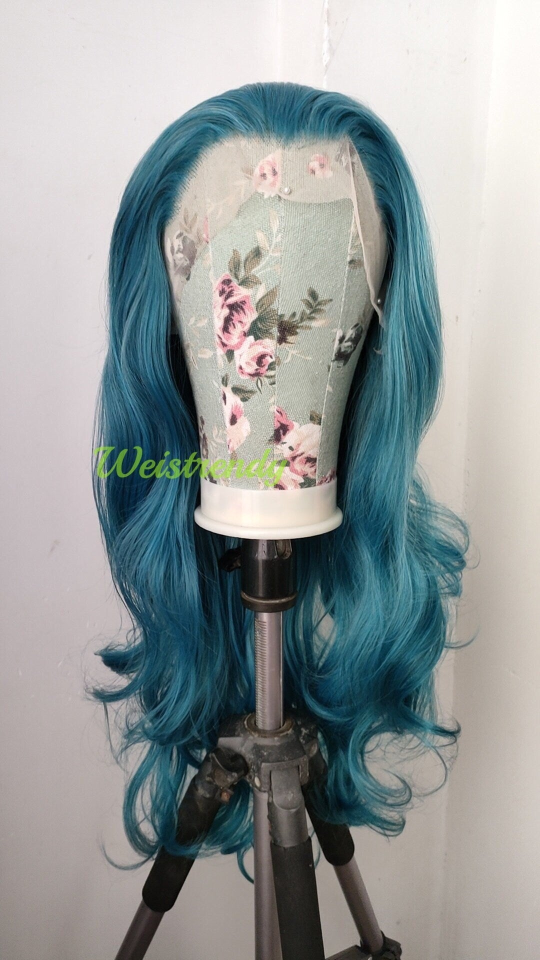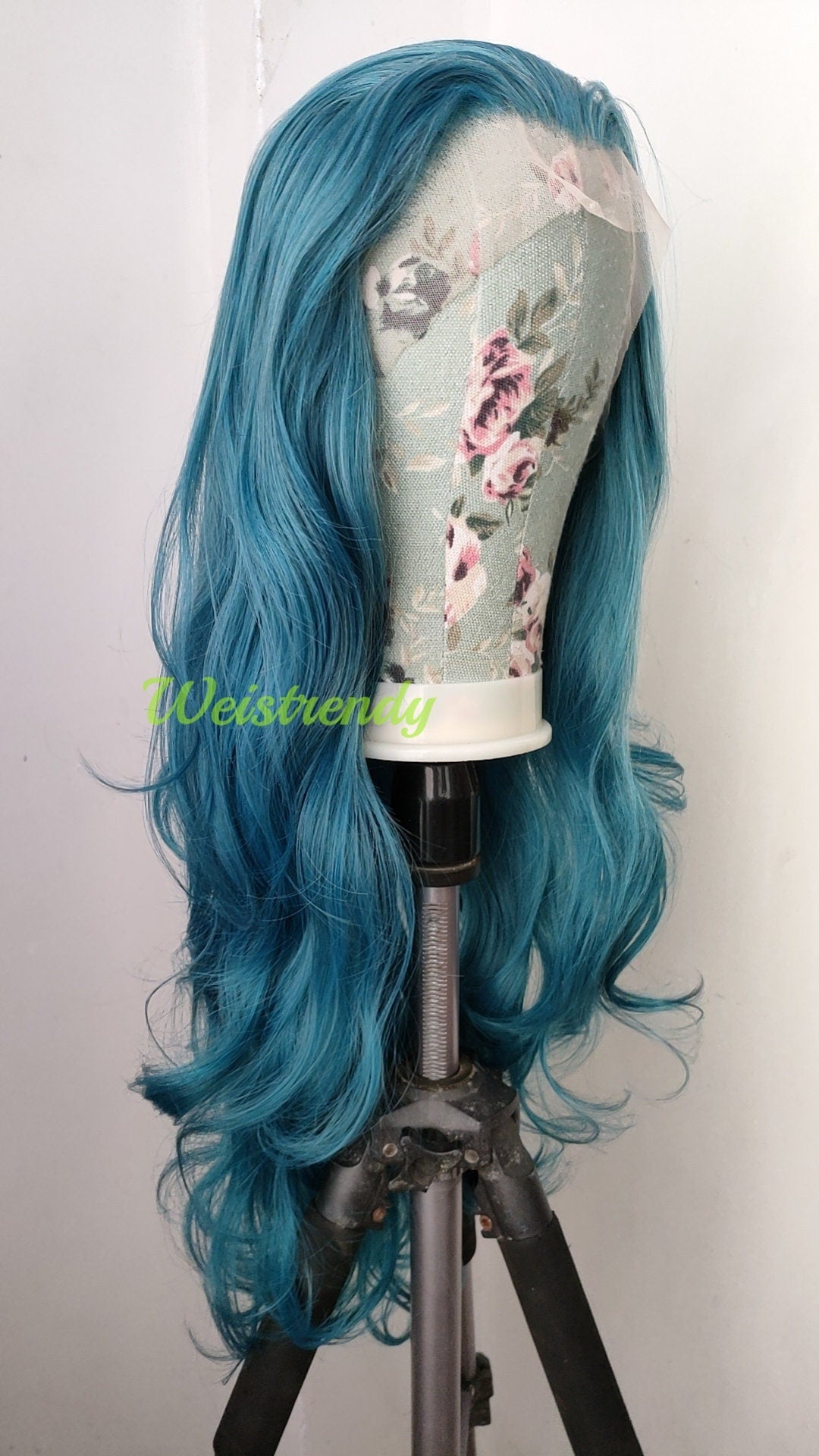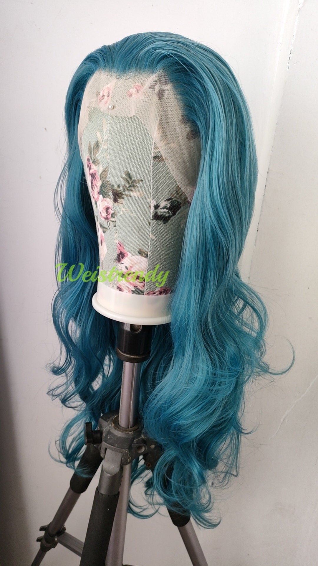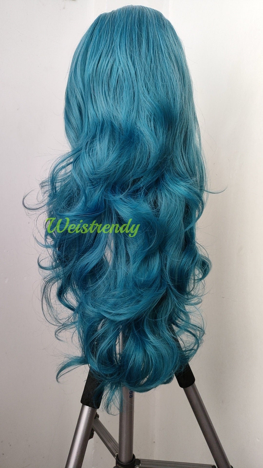 Ocean Blue Long Curls Wavy Hair Premium Synthetic Swiss Lace Frontal Wig Cosplay Costume Wigs