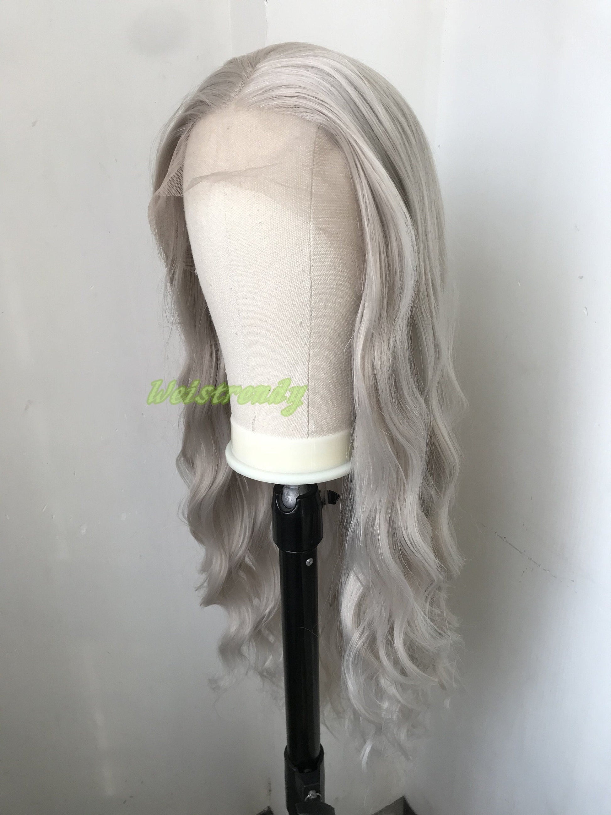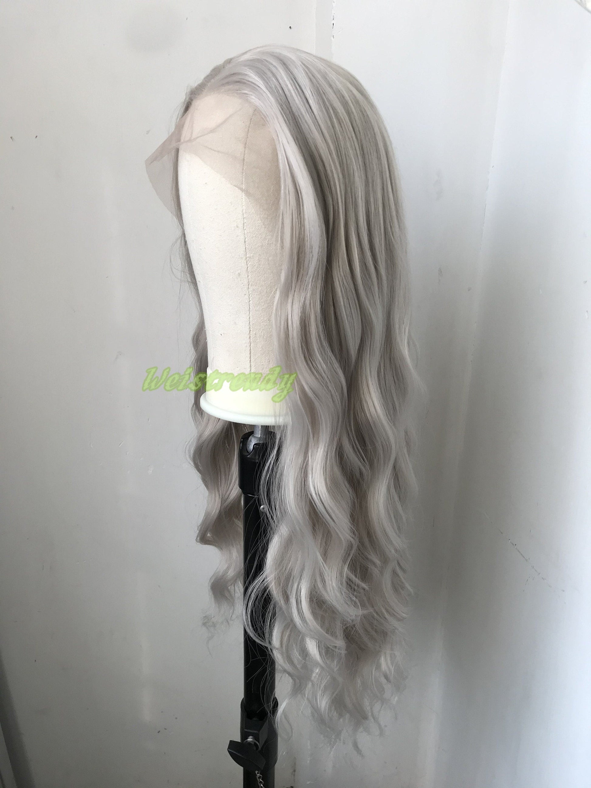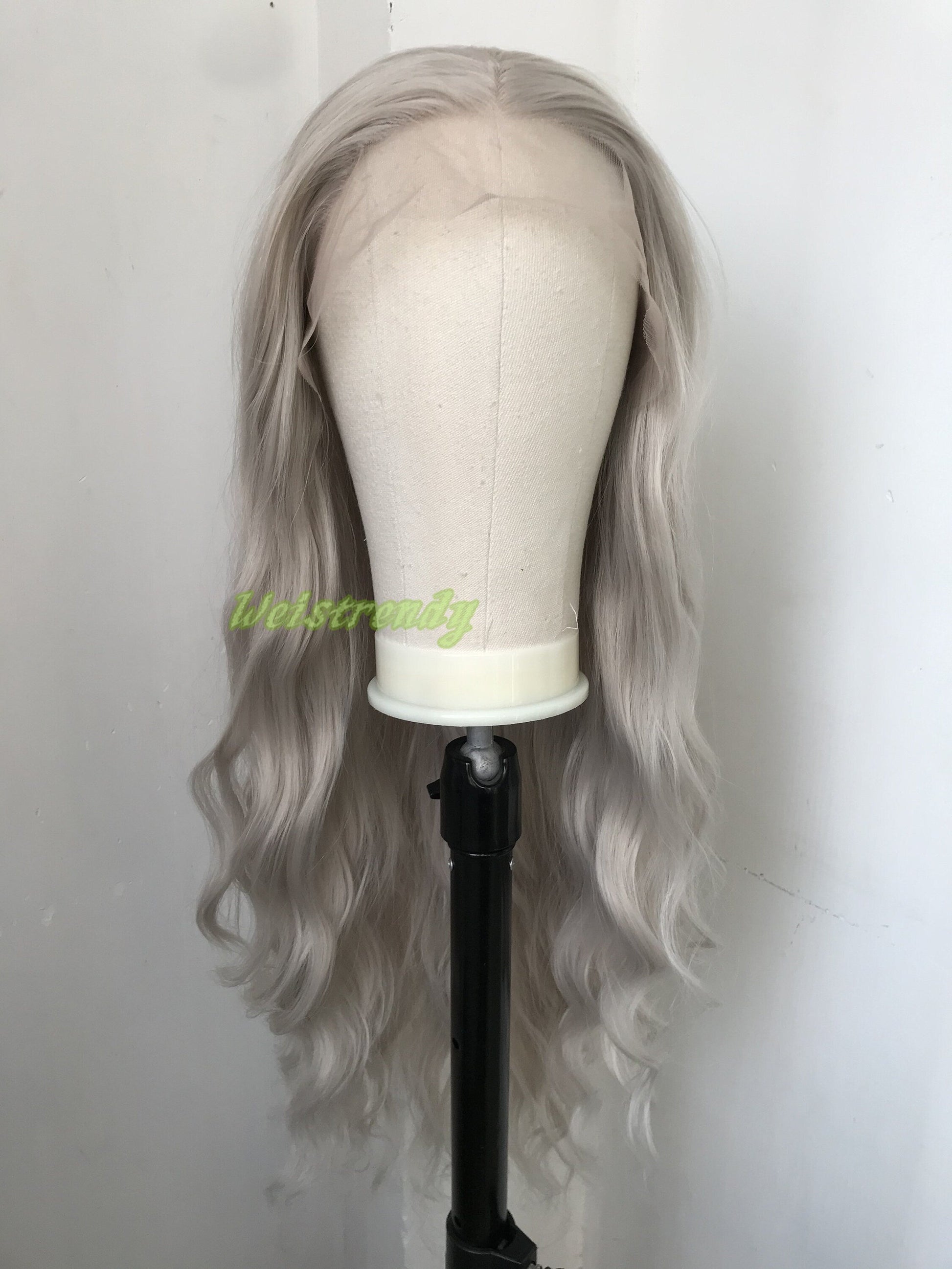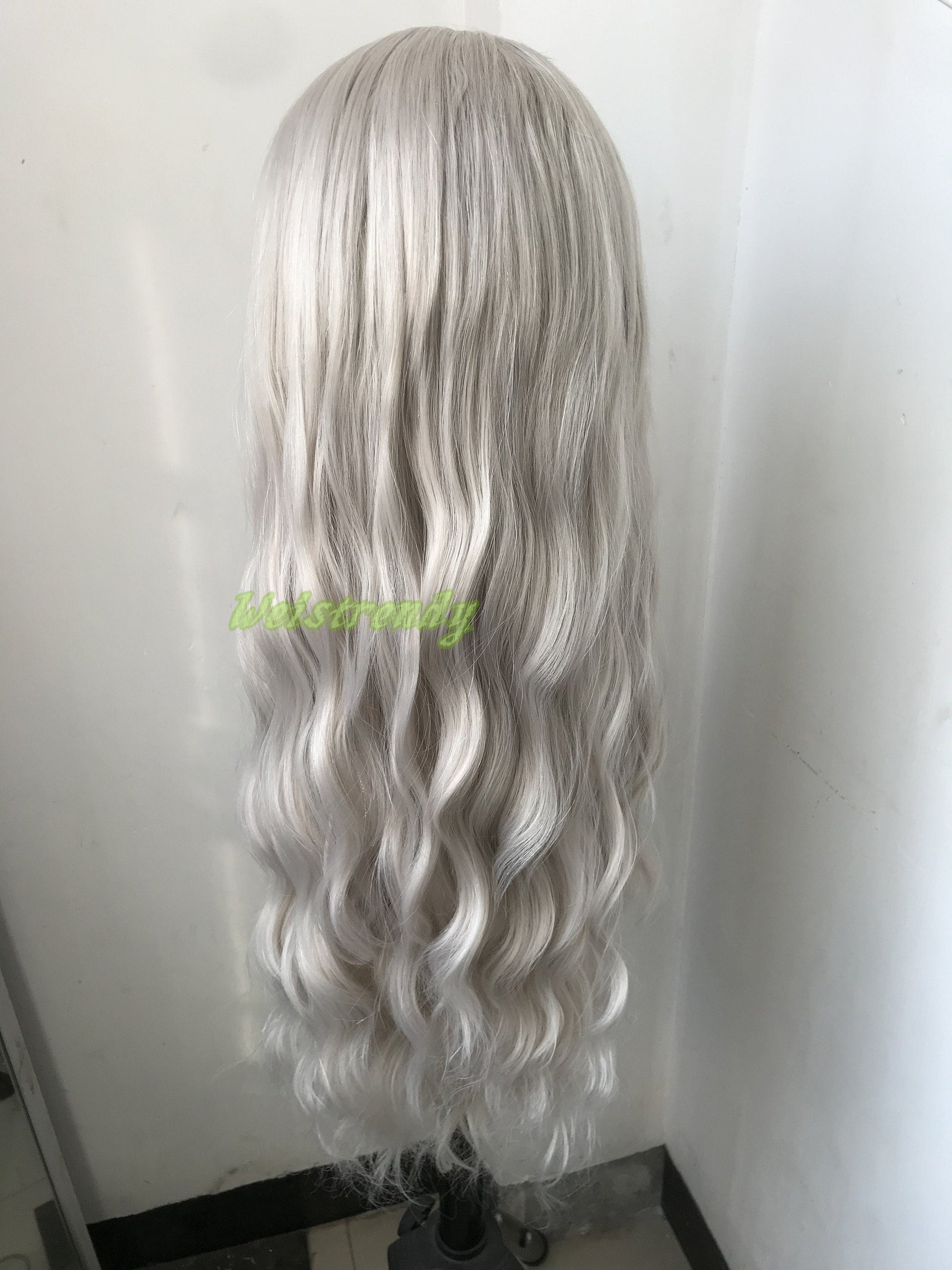 Pale Grey | Ash Blonde Long Water Waves Hair Synthetic Swiss Lace Frontal Wig Heat Safe Free Parting