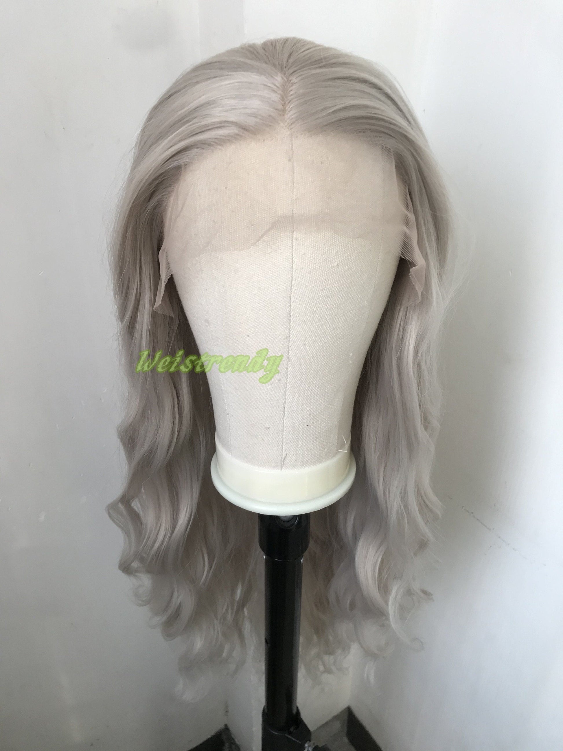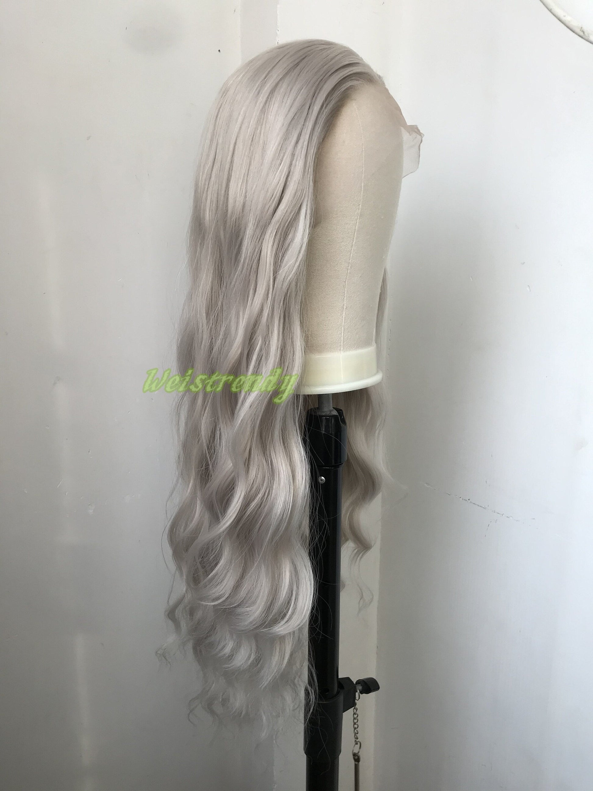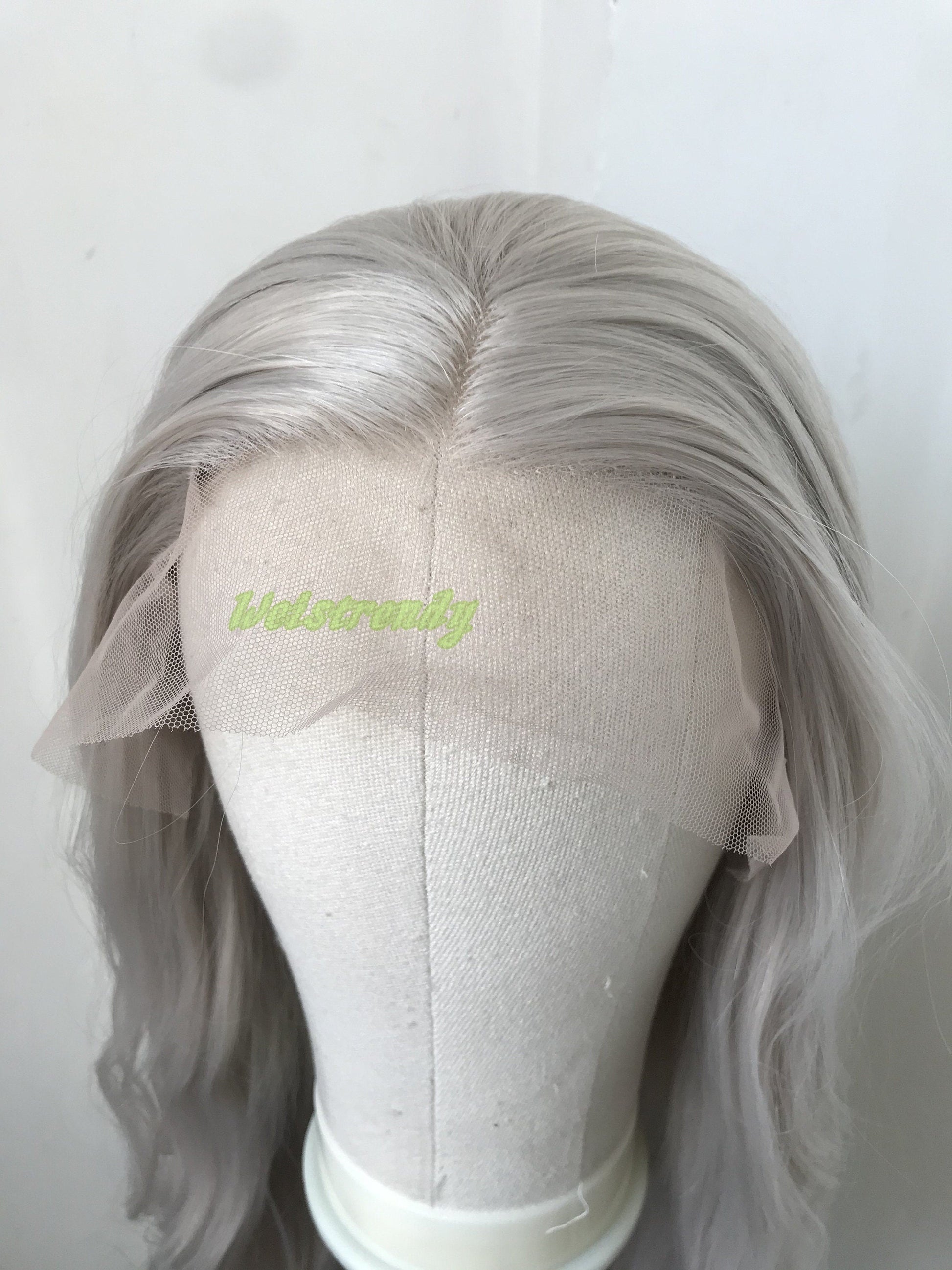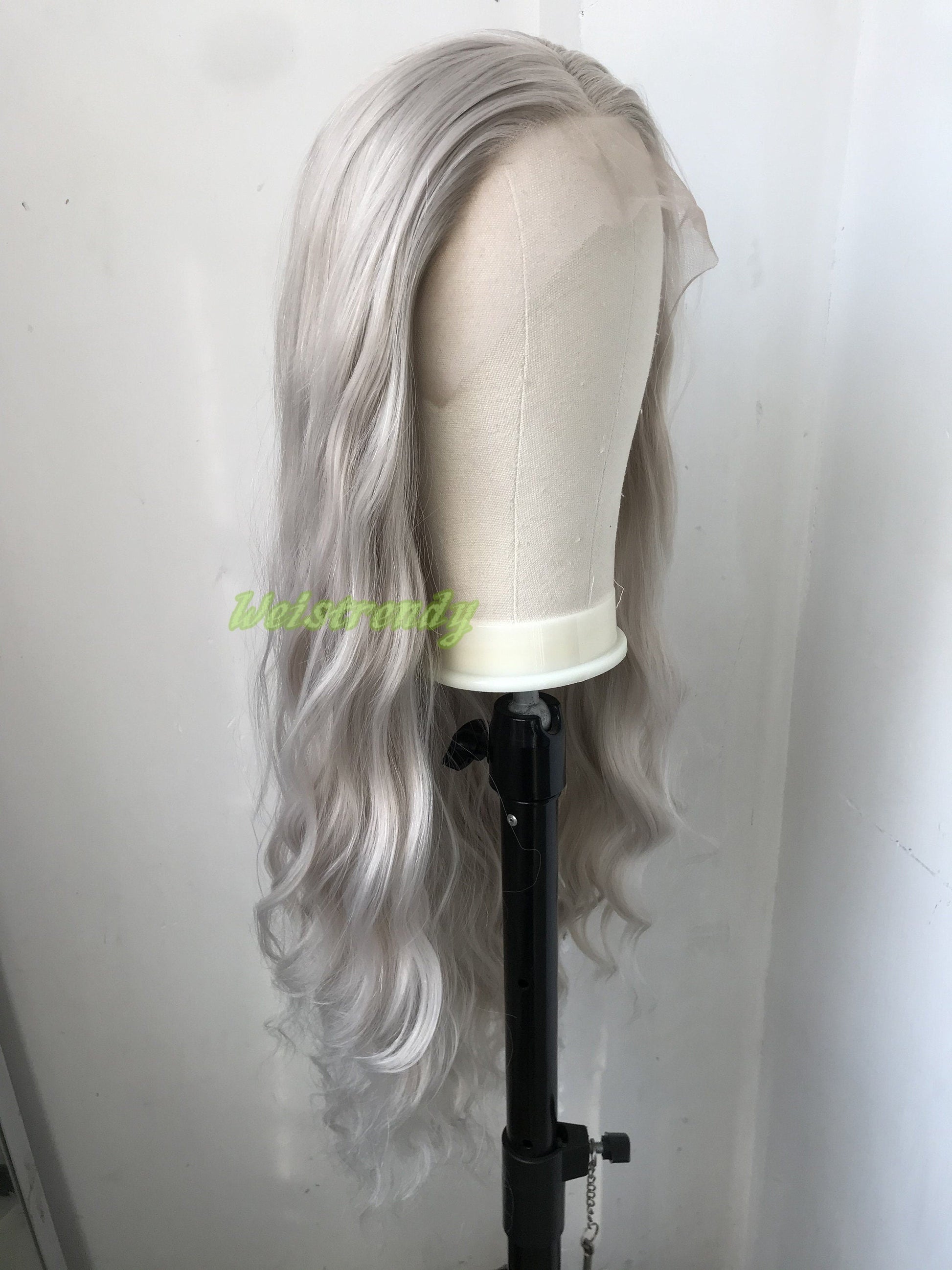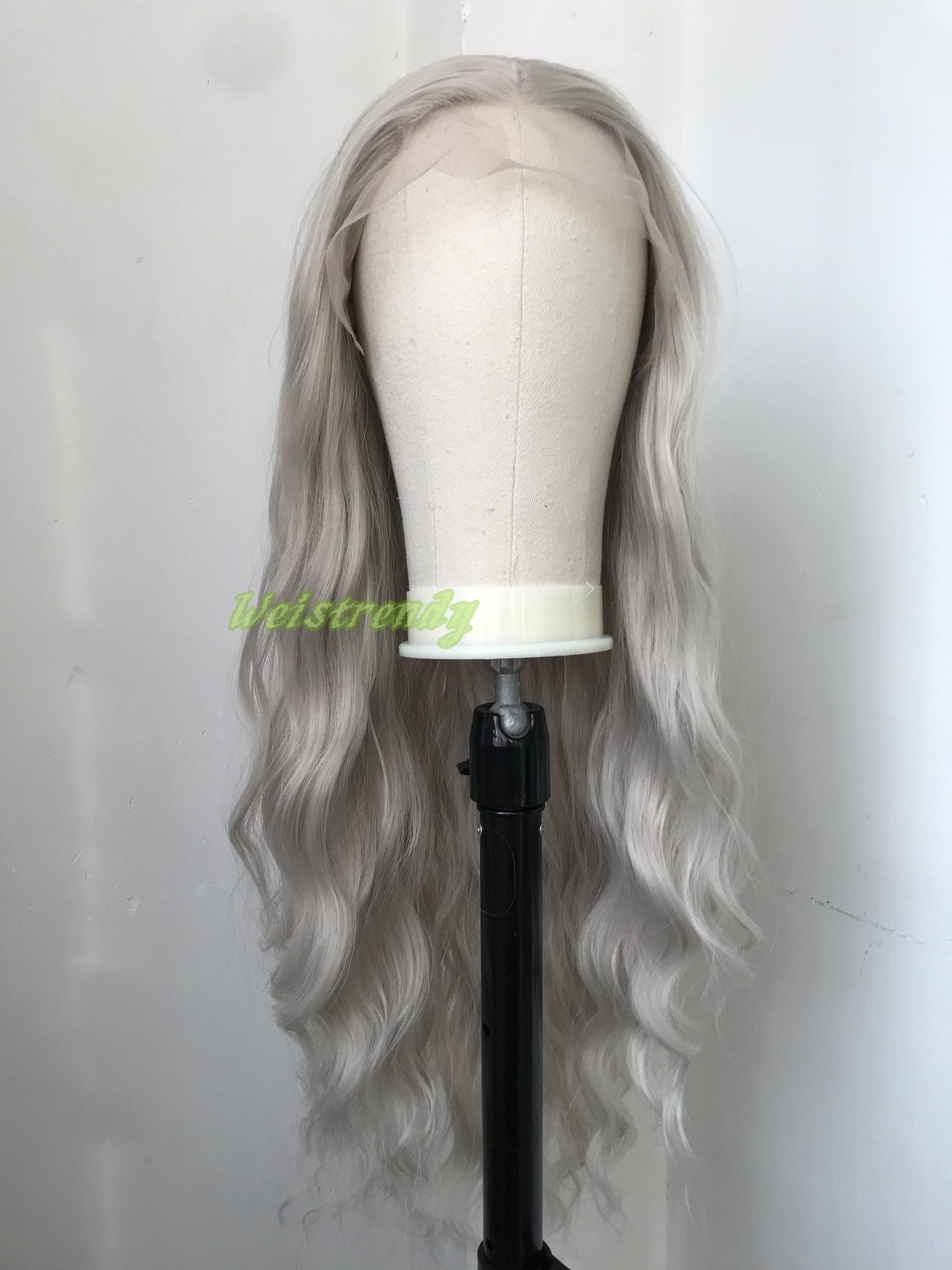 Pale Grey | Ash Blonde Long Water Waves Hair Synthetic Swiss Lace Frontal Wig Heat Safe Free Parting
