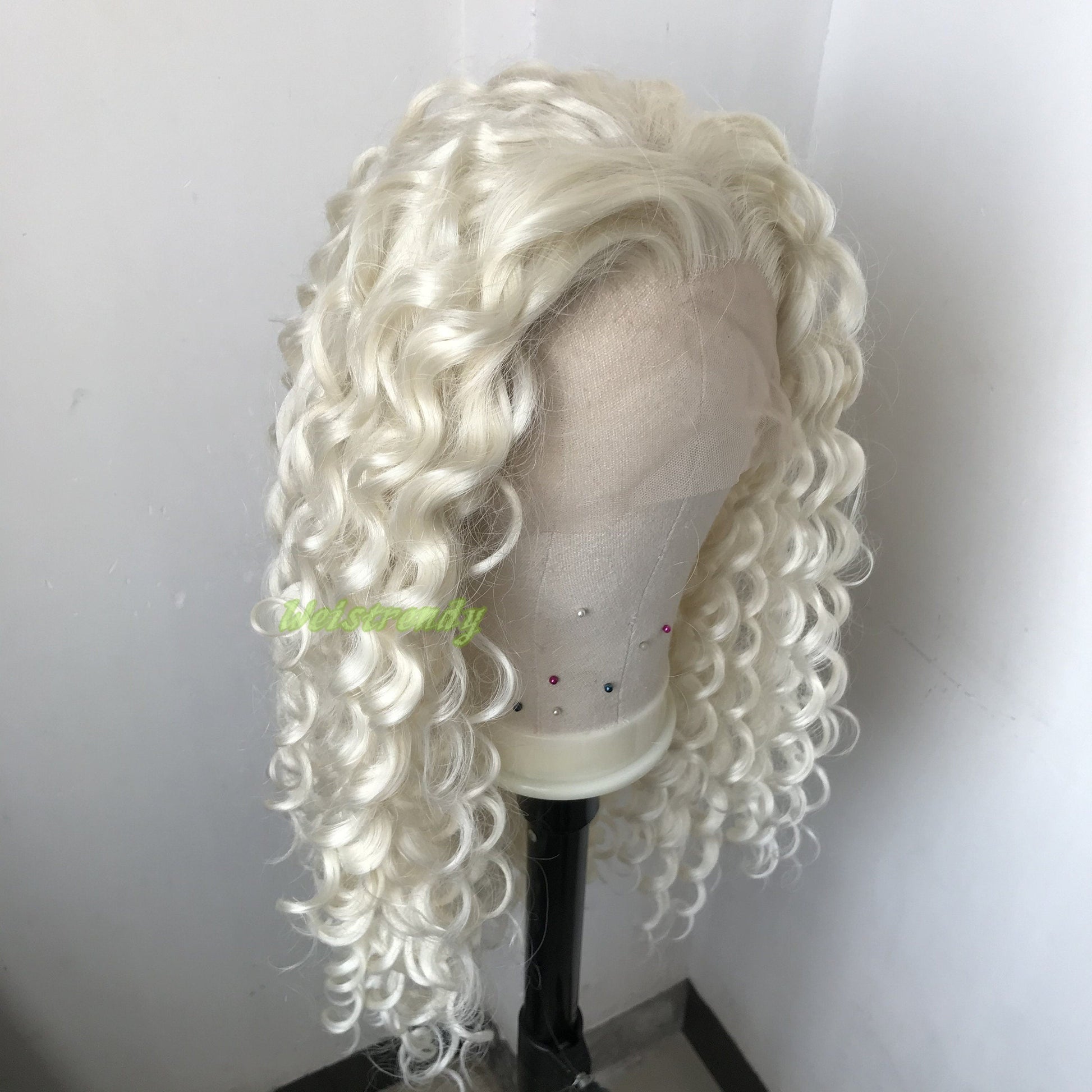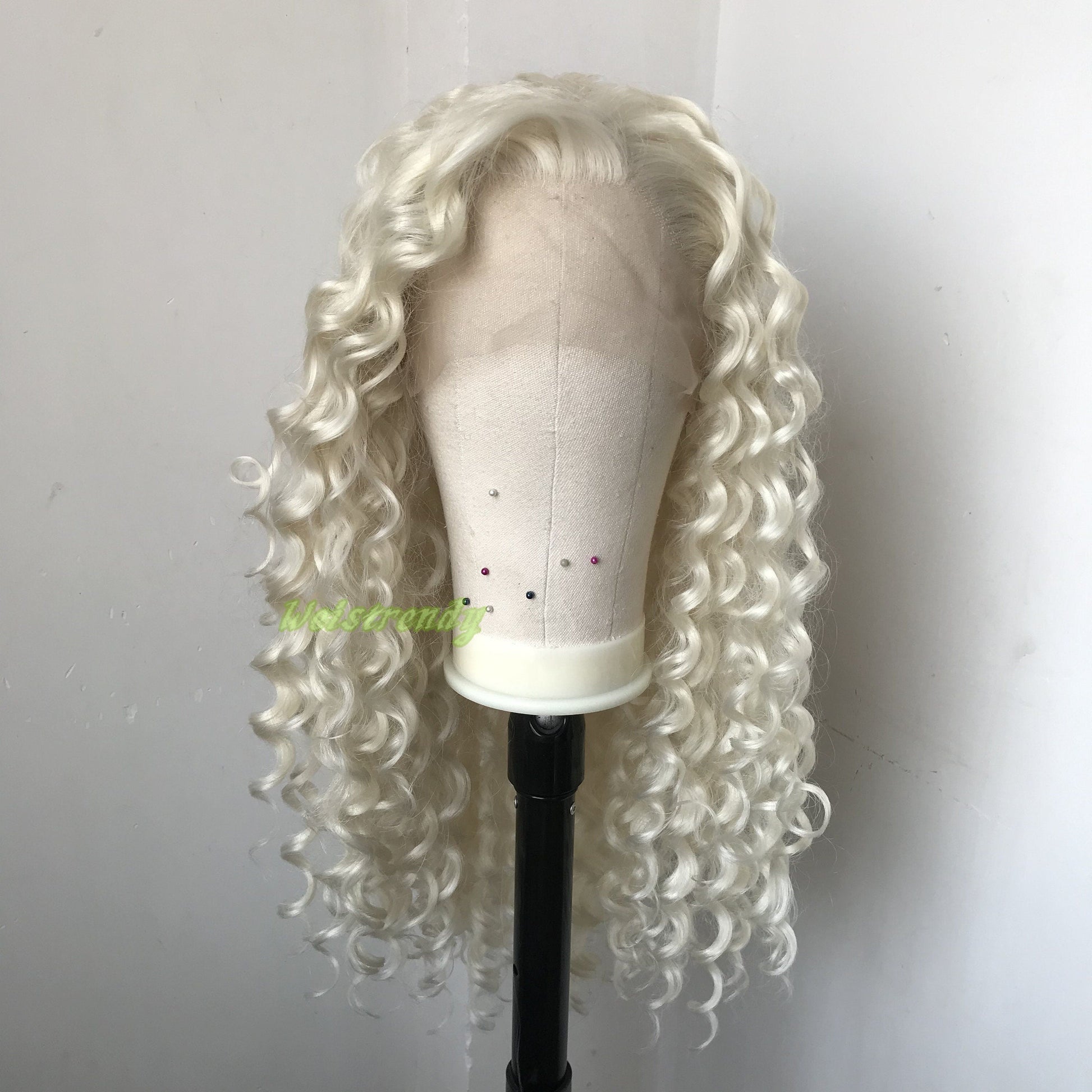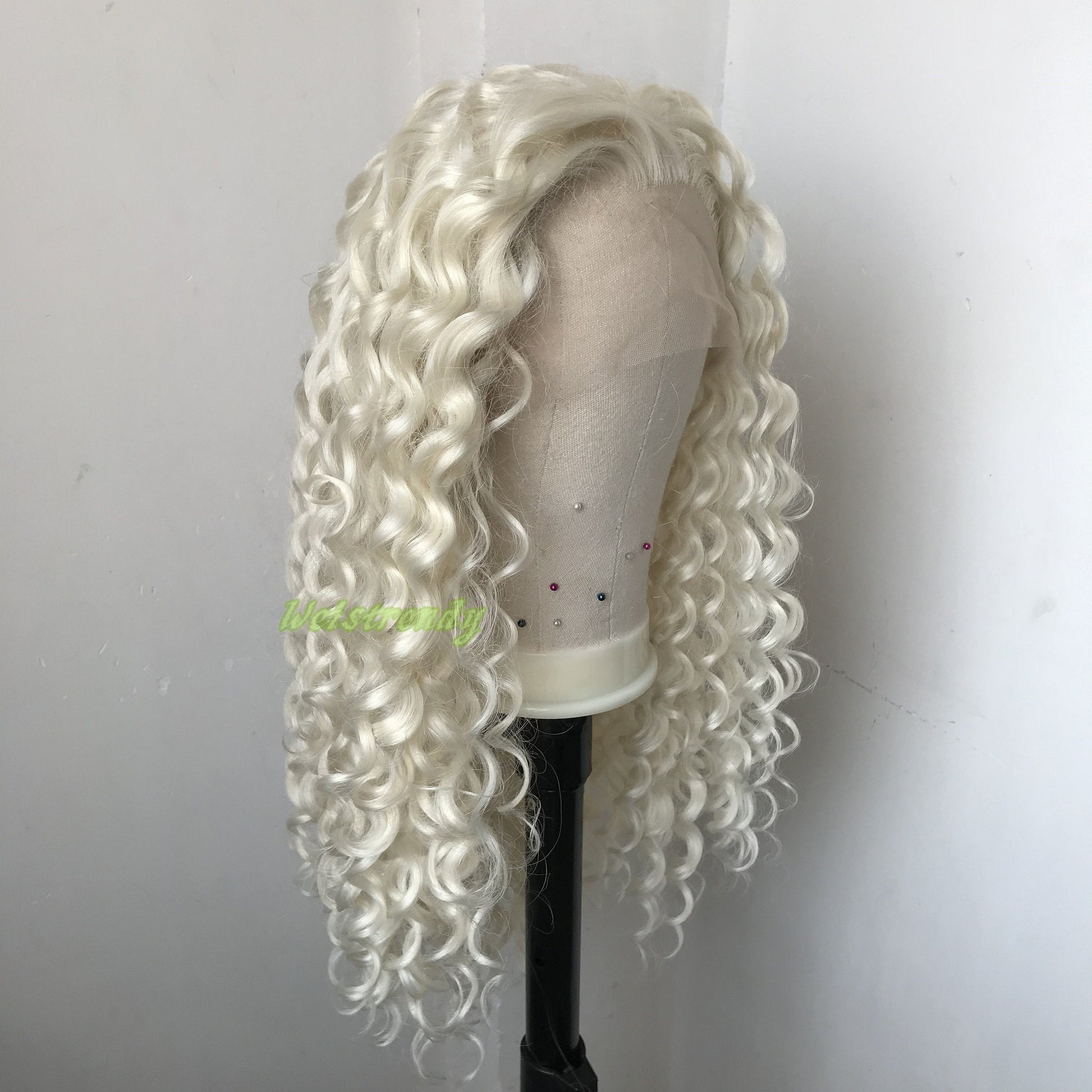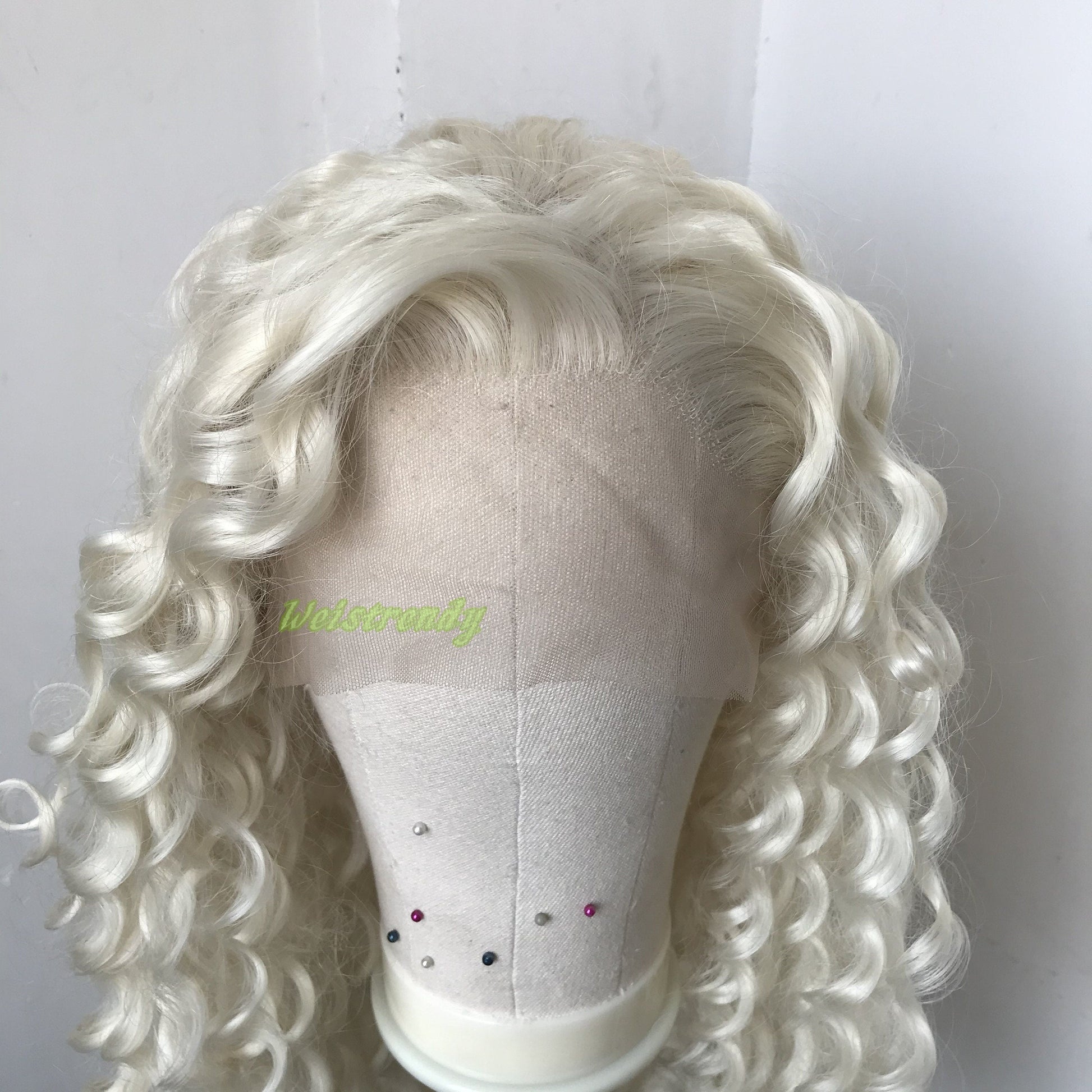 Platinum Blonde Long Ring Curls Multi Part Premium Synthetic Soft Swiss Lace Wig Heat Friendly