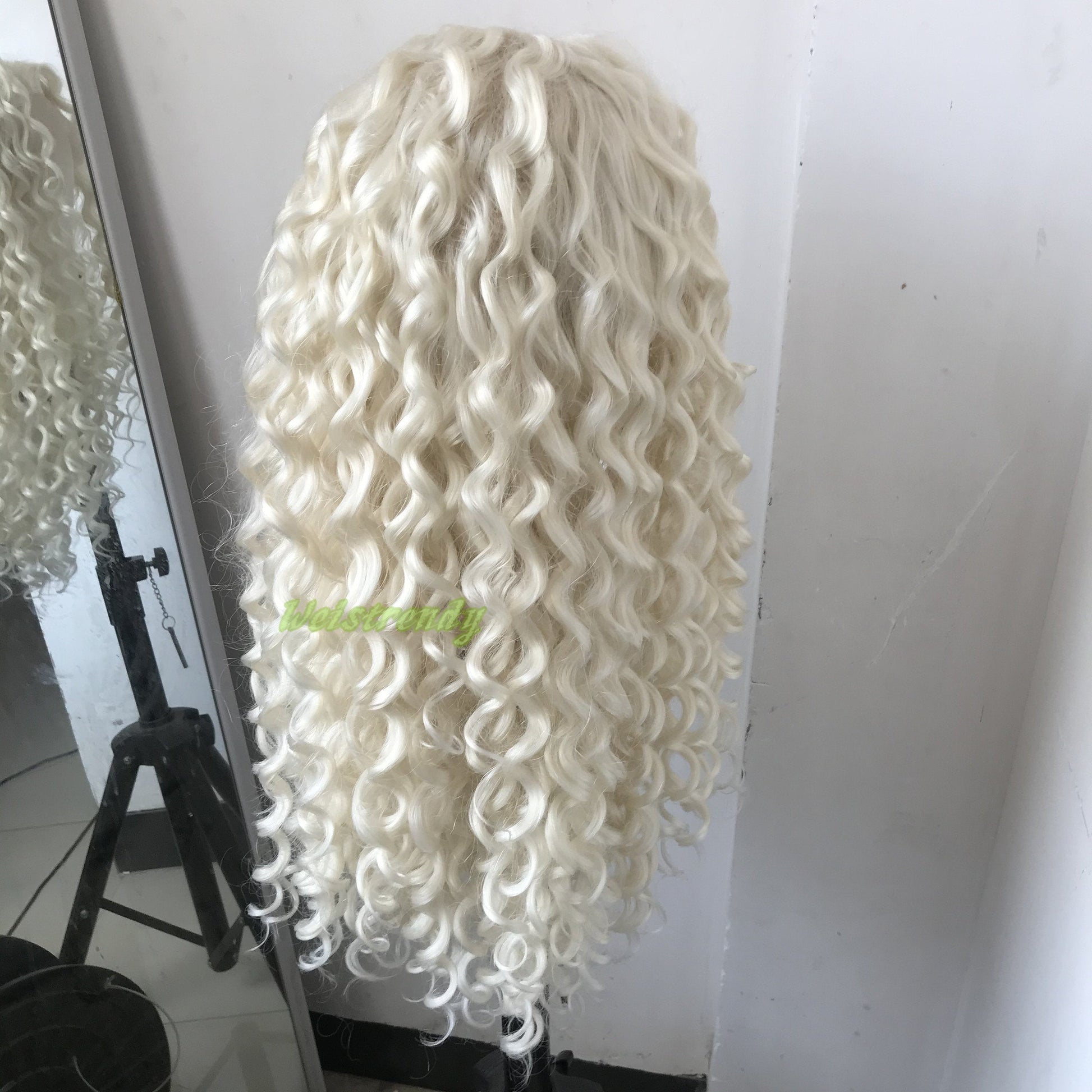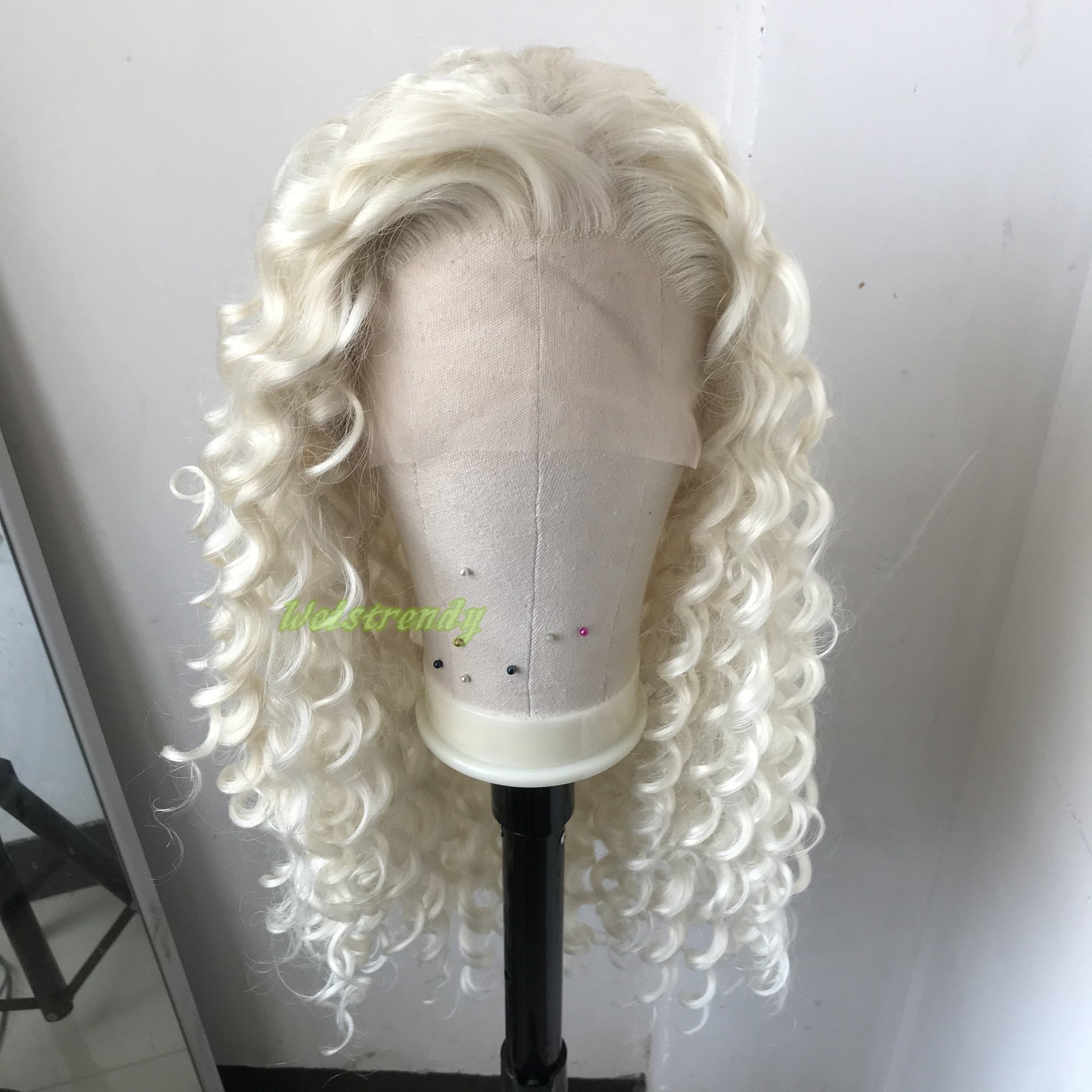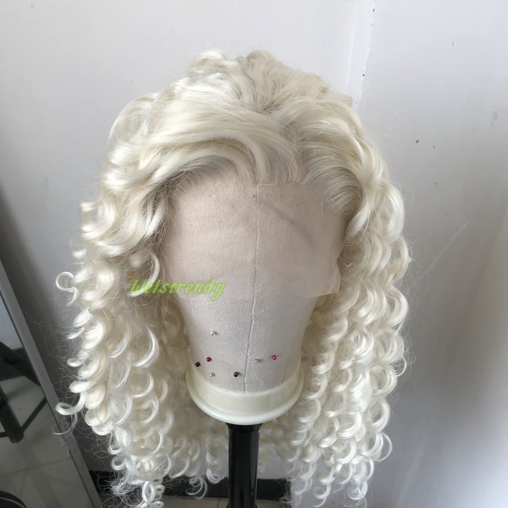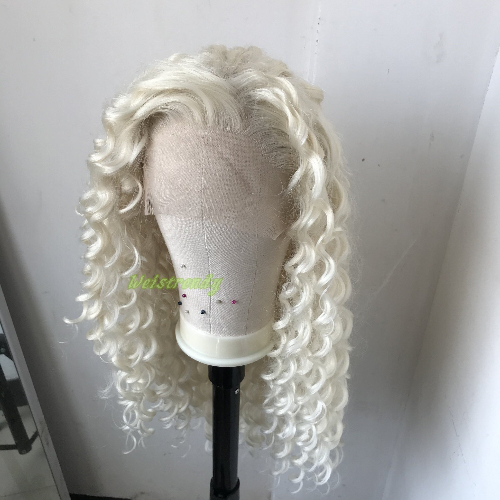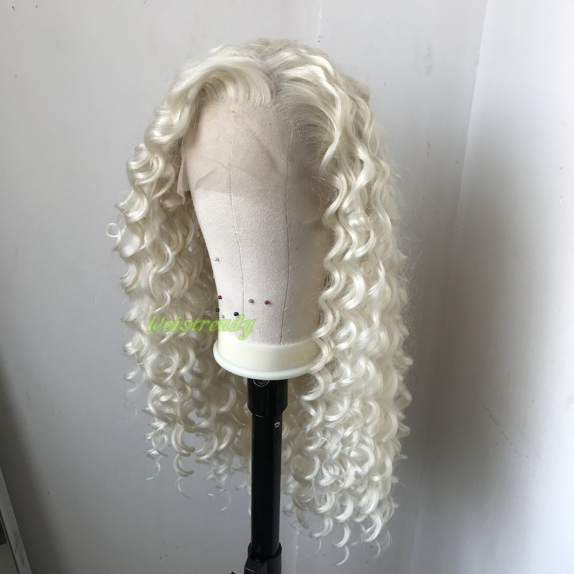 Platinum Blonde Long Ring Curls Multi Part Premium Synthetic Soft Swiss Lace Wig Heat Friendly